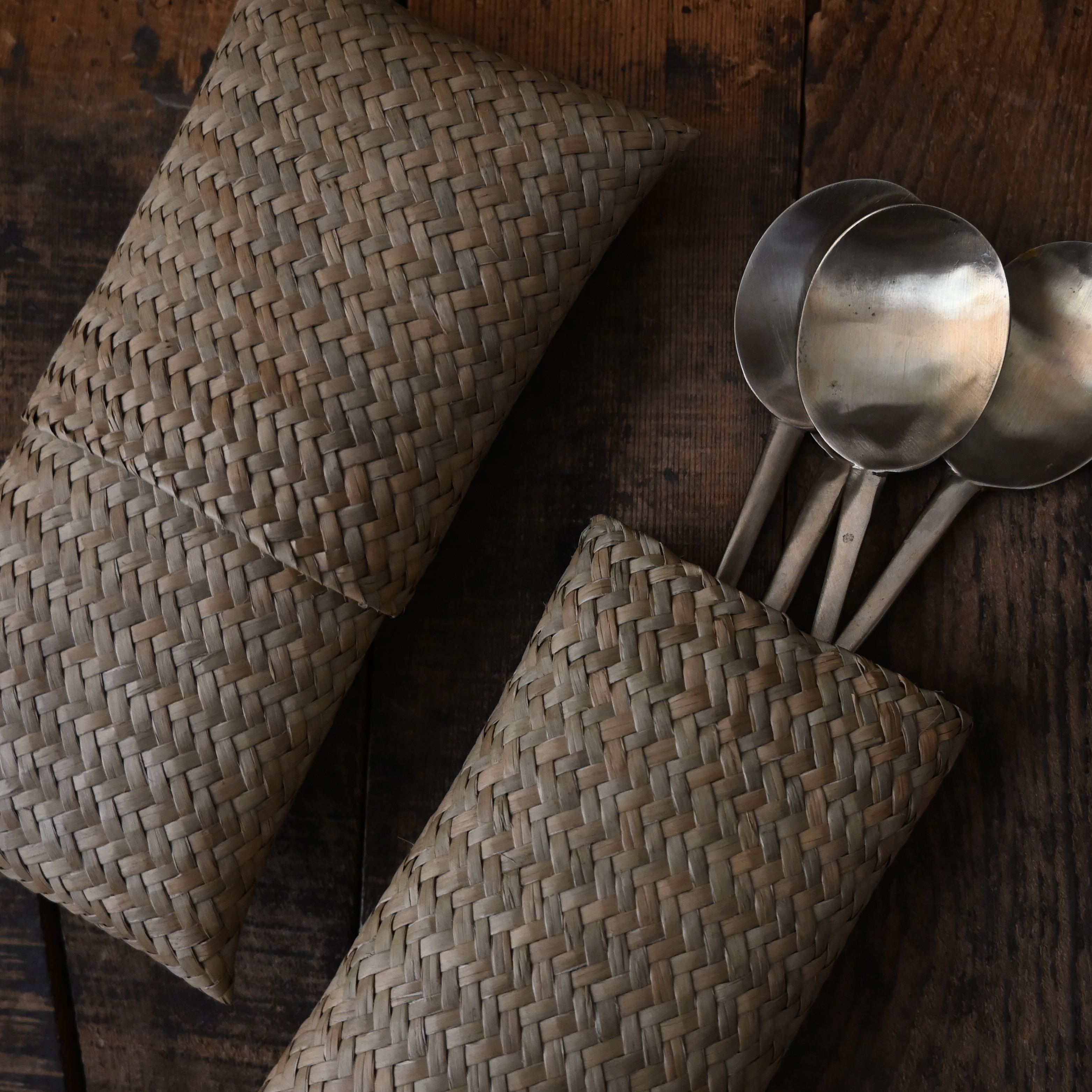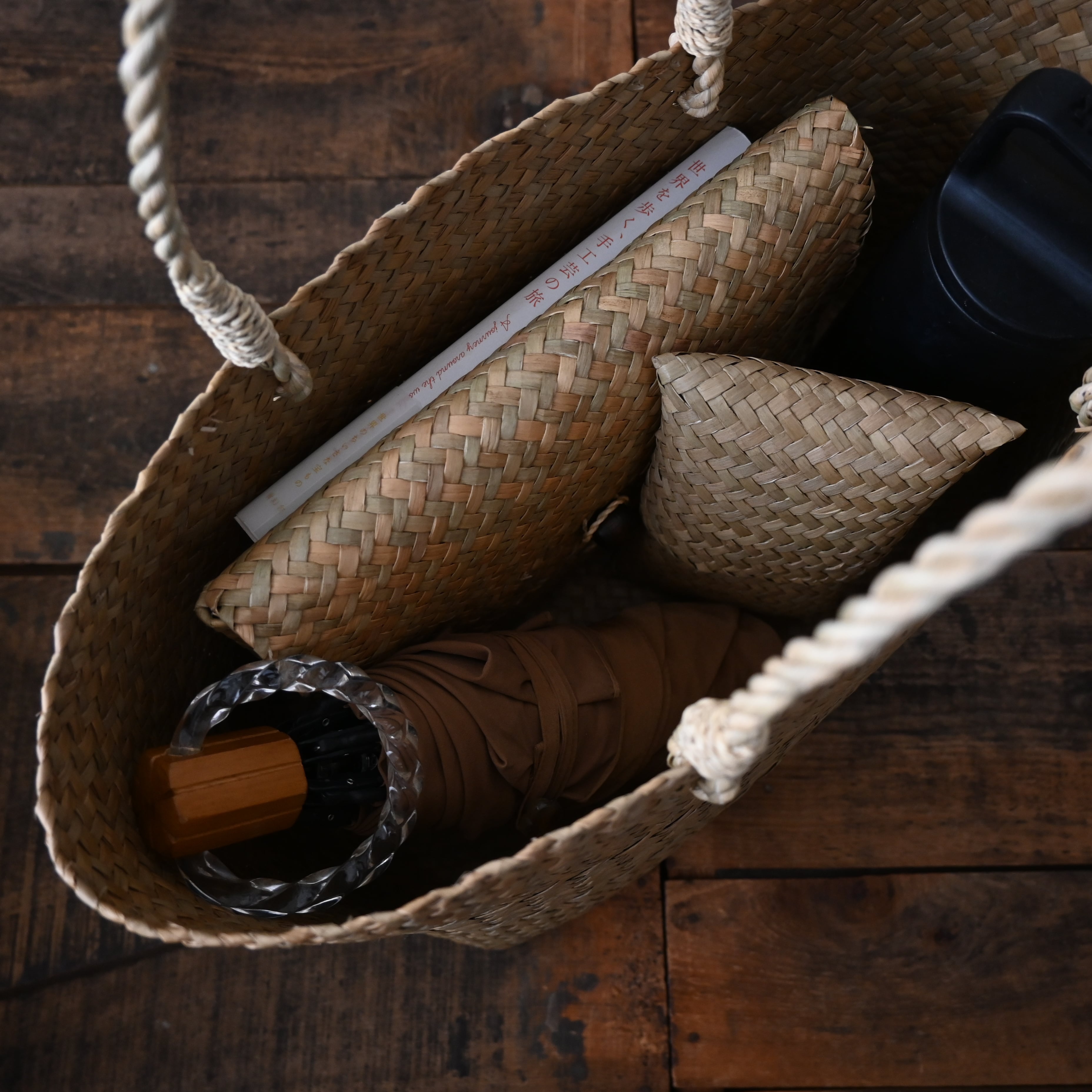 水草の茎の部分を乾燥させ、熟年の職人たちによってパーツを作り、時間をかけて丁寧に編まれています。編み目が細かいほど柔らかく しなやかなバスケットに。