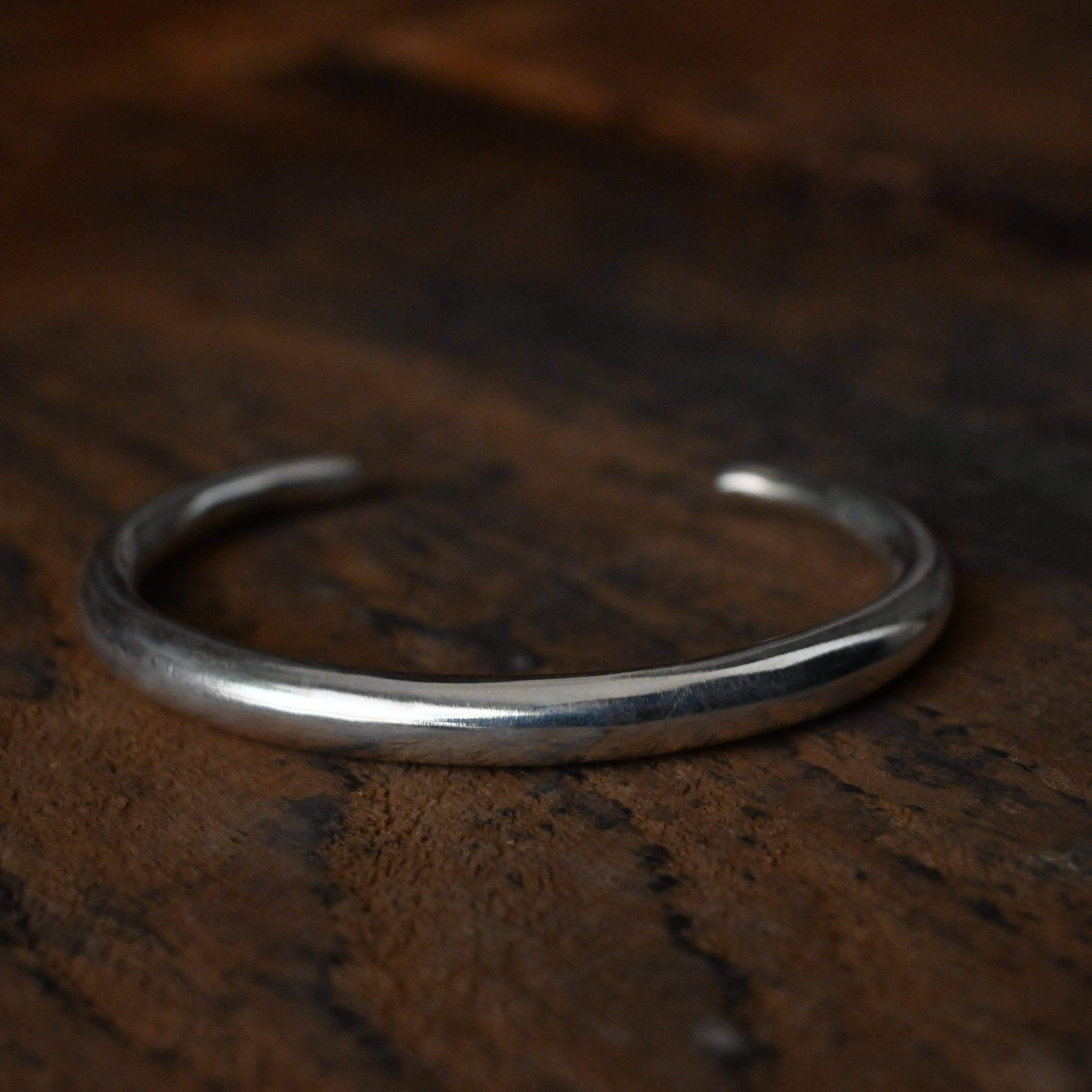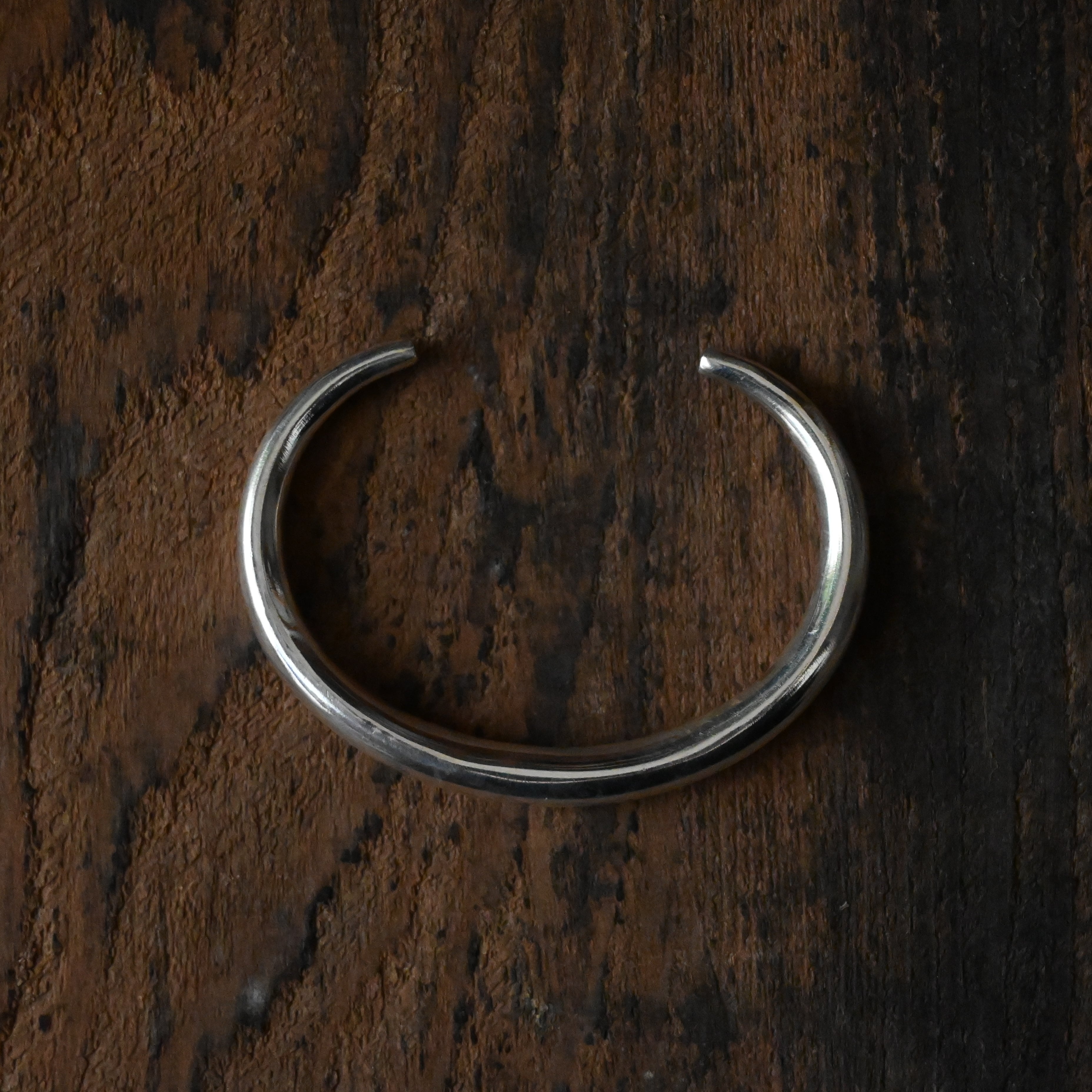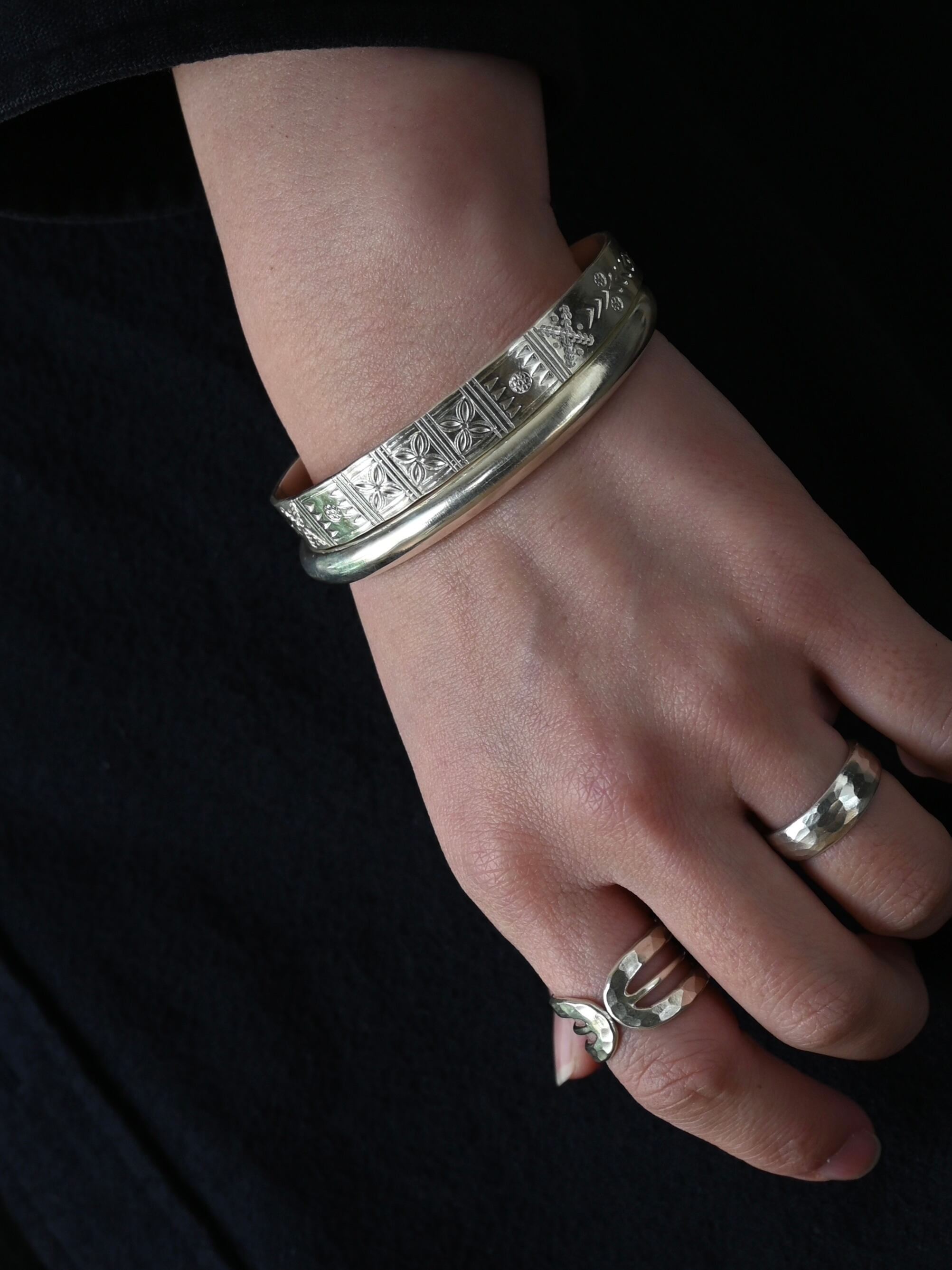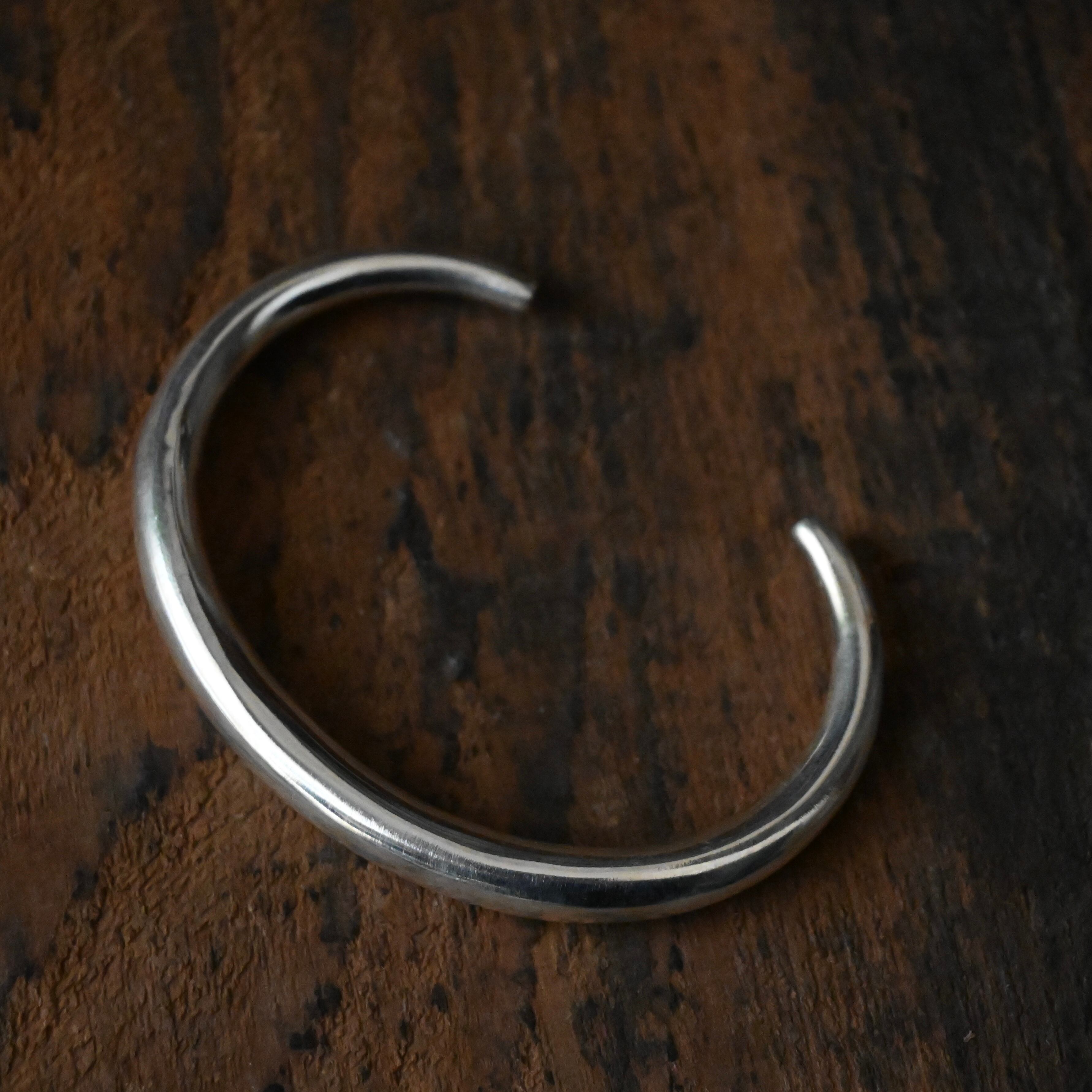 装飾を削ぎ落とし、曲線が美しいシンプルなバングルは、そんな潔さのなかに、手作業ならではのあたたかさと力強さを感じられます。