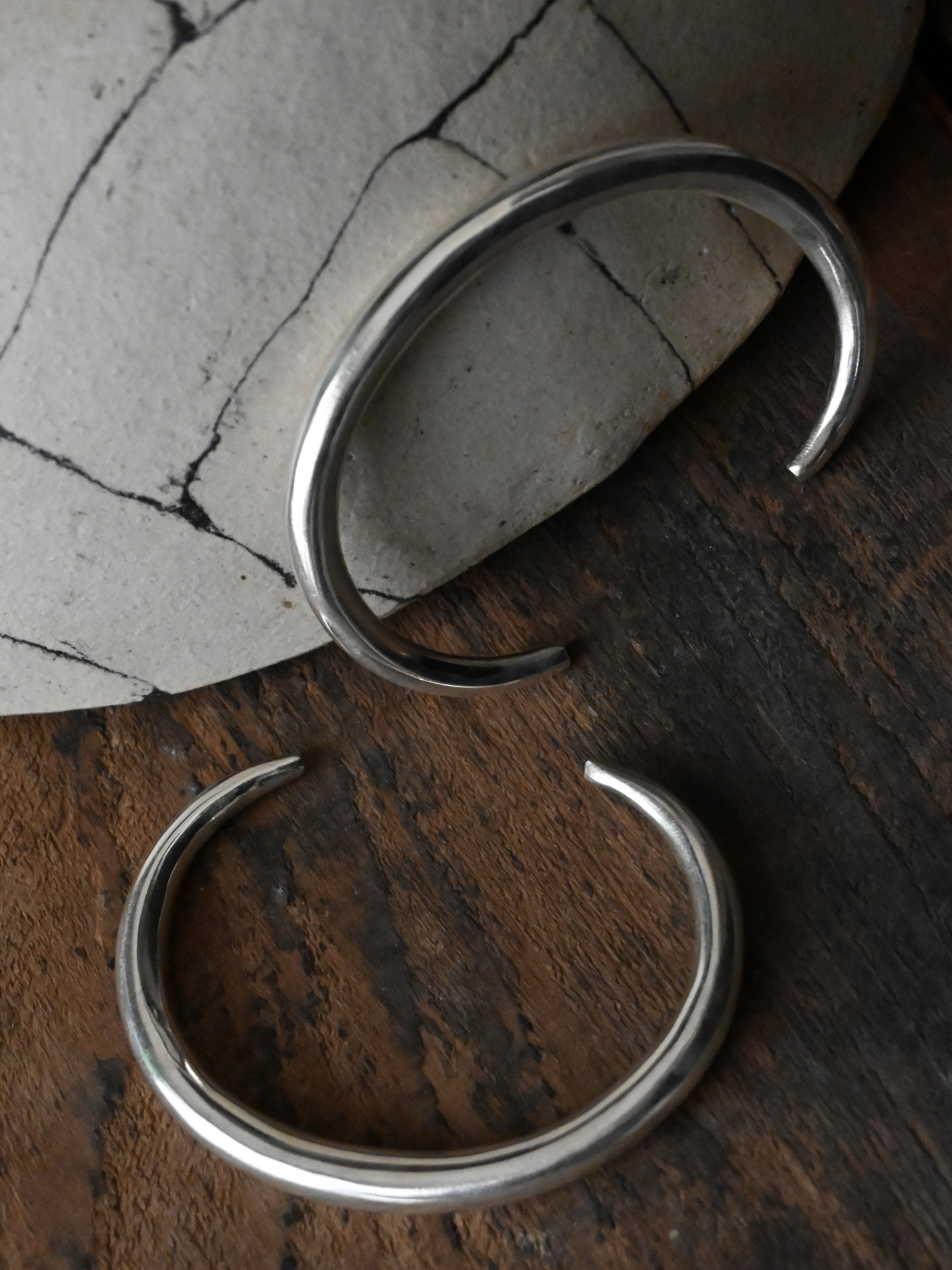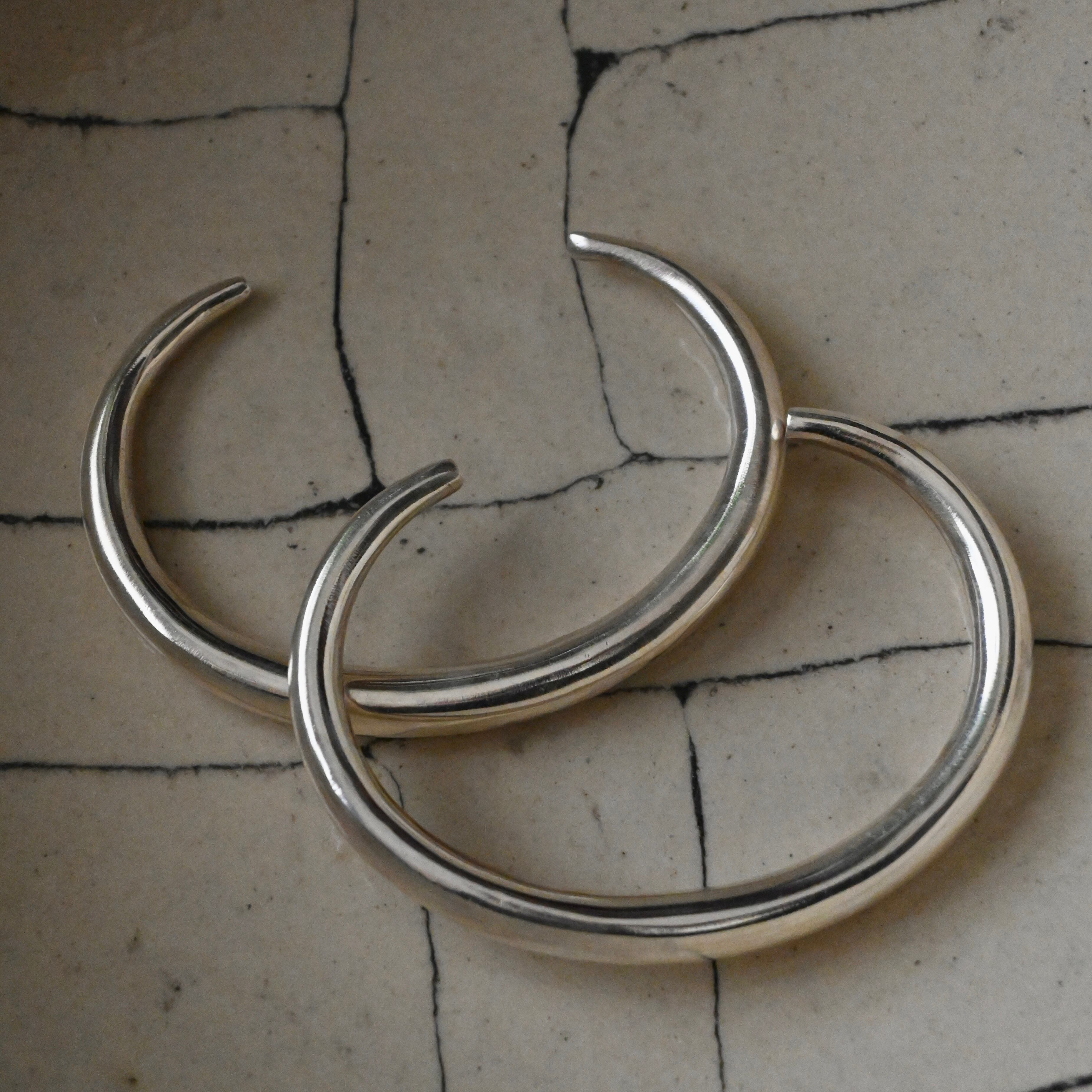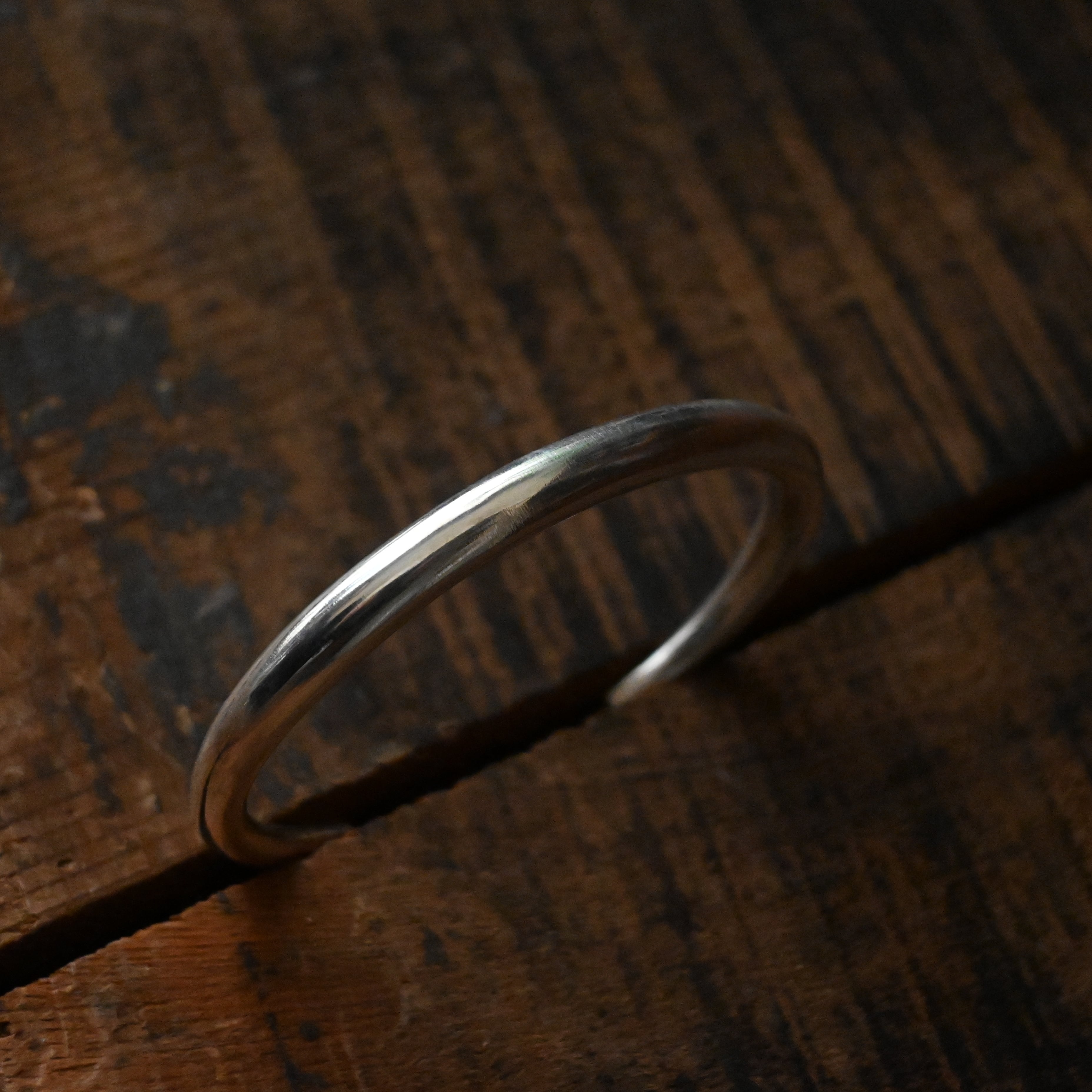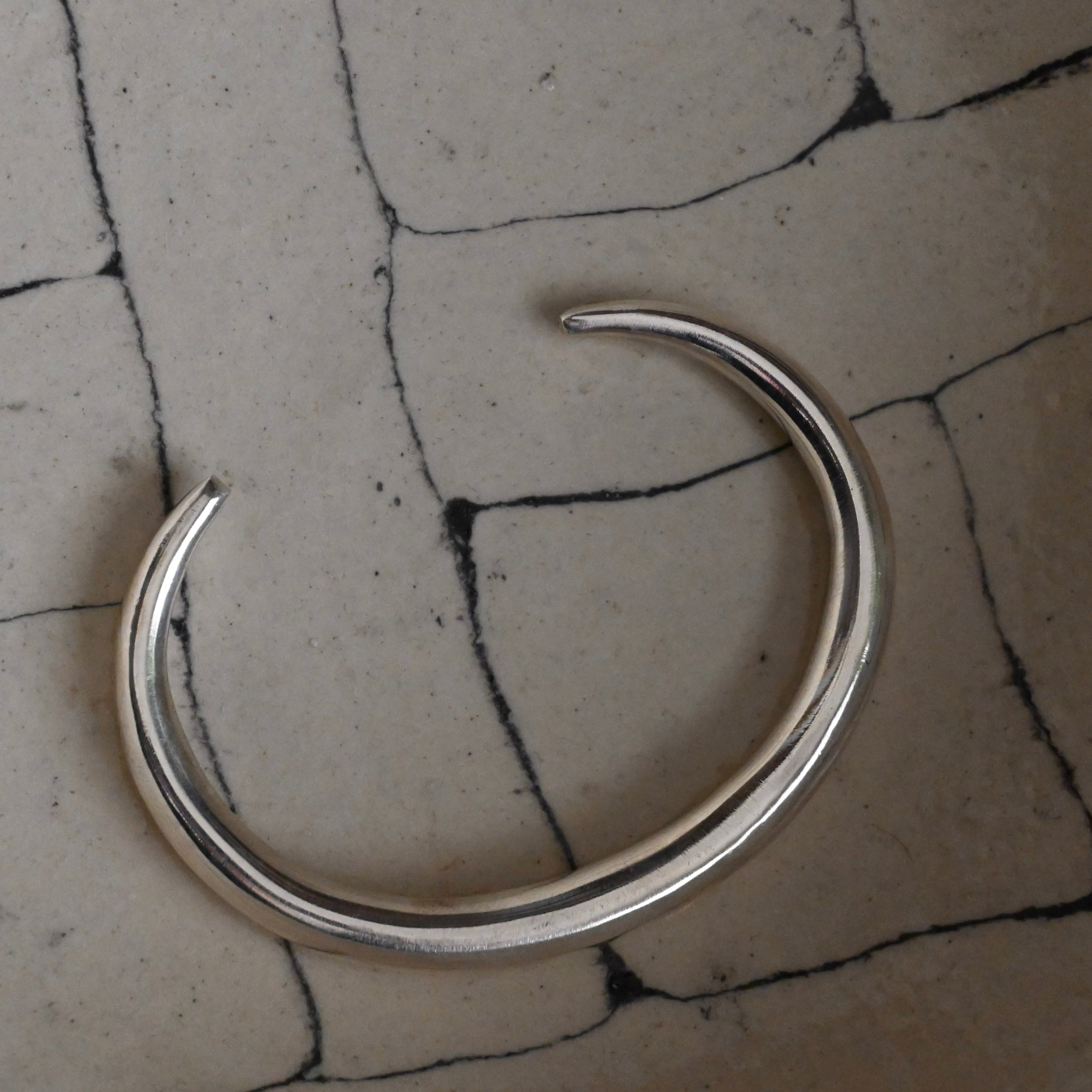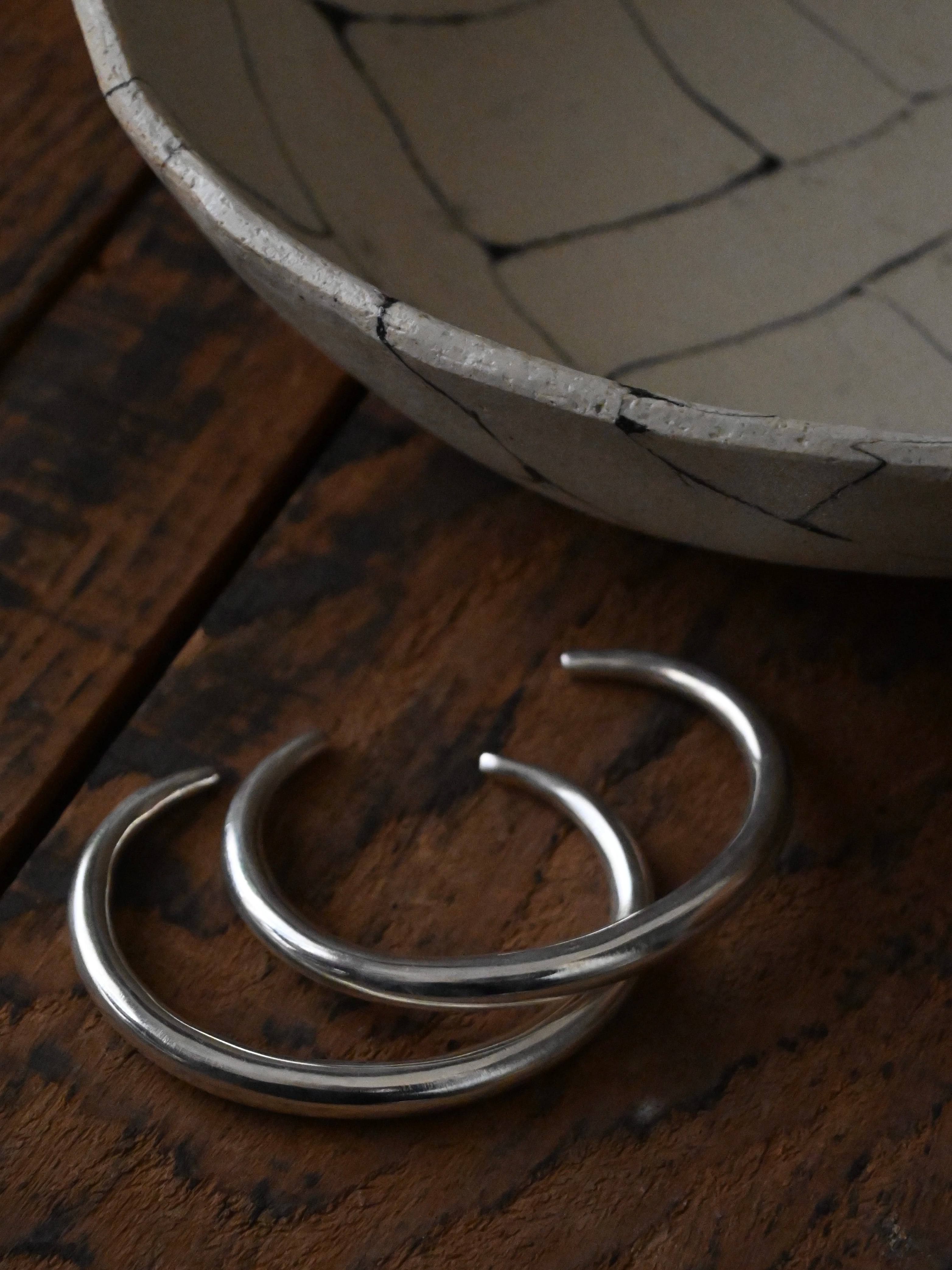 装飾を削ぎ落とし、曲線が美しいシンプルなバングルは、そんな潔さのなかに、手作業ならではのあたたかさと力強さを感じられます。