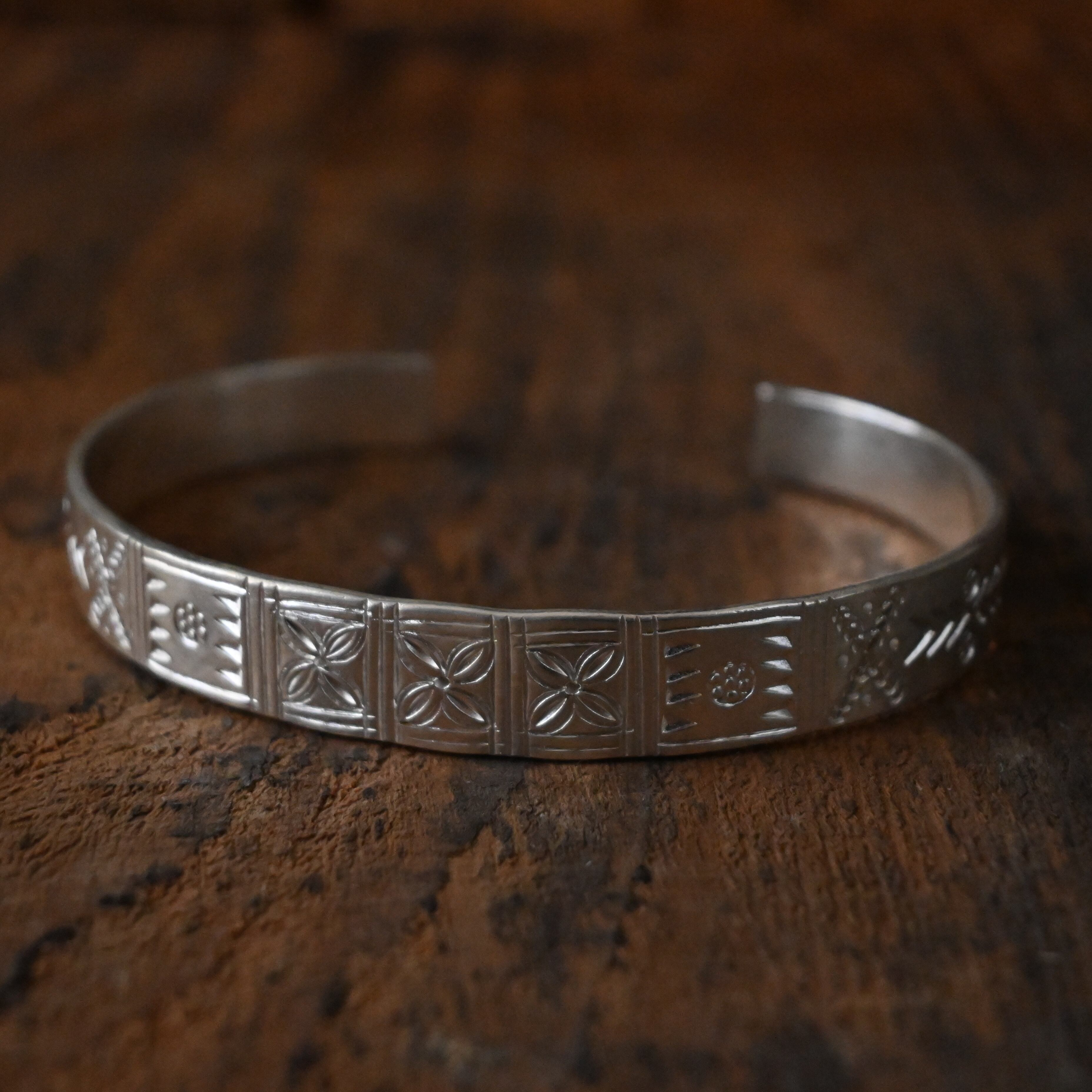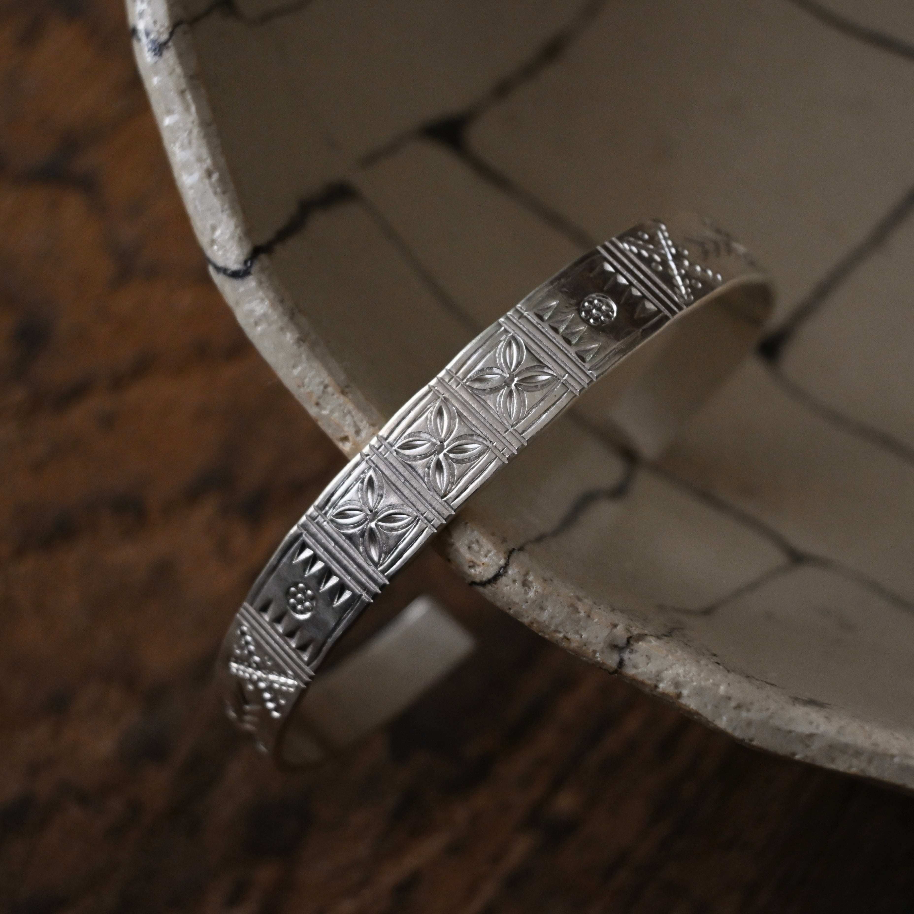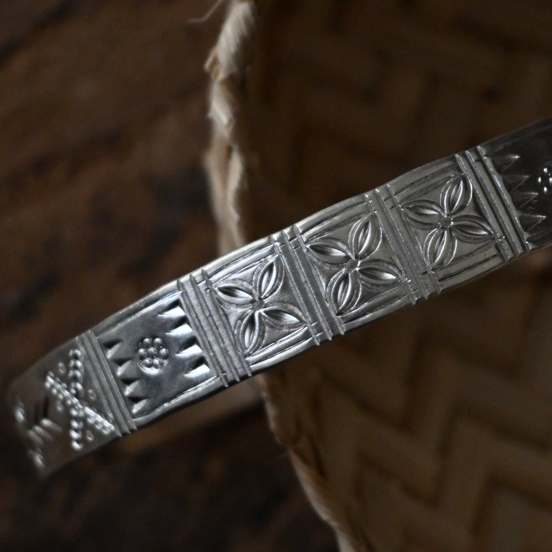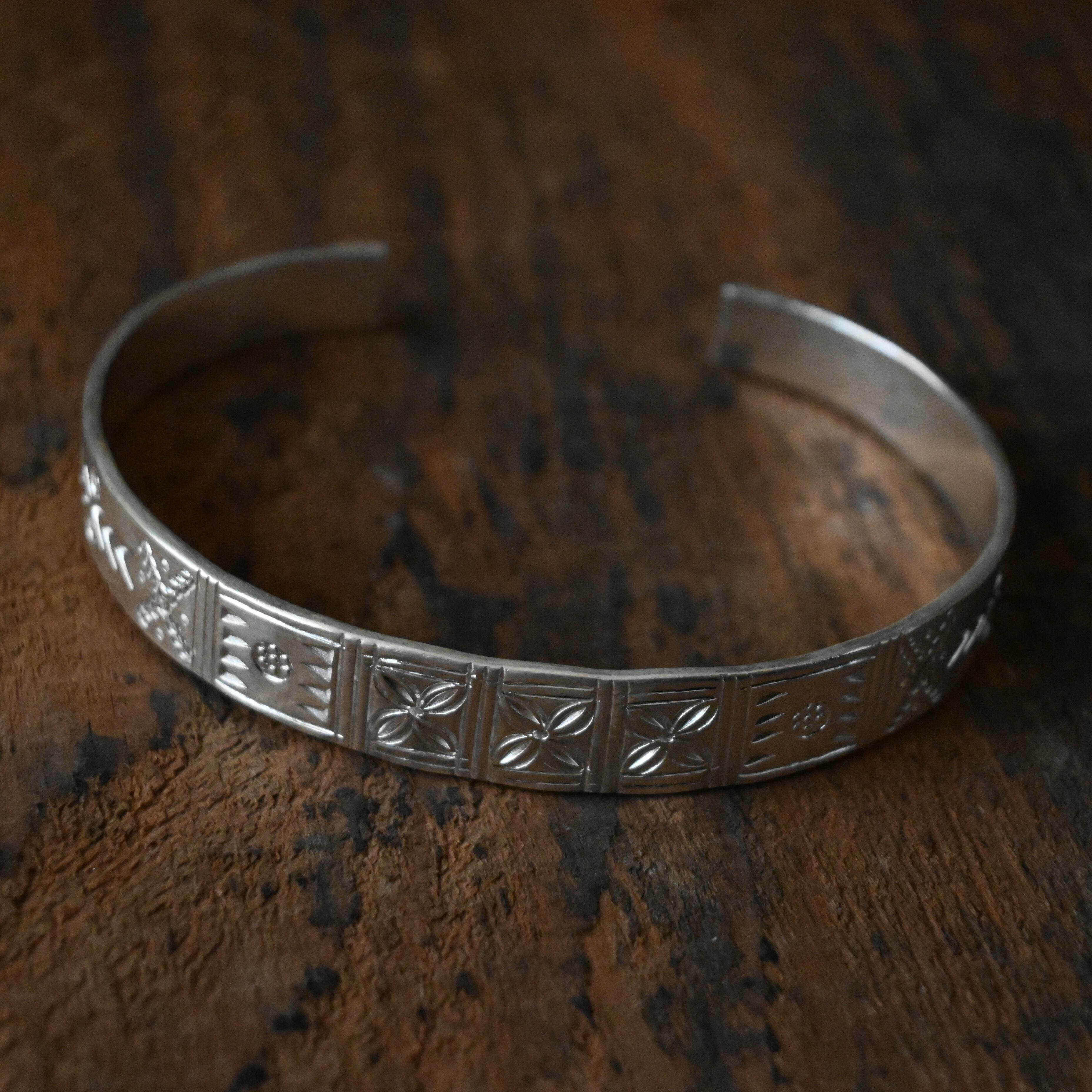 カレン族の手しごと - Karen silver - Hand stamped silver bangle -