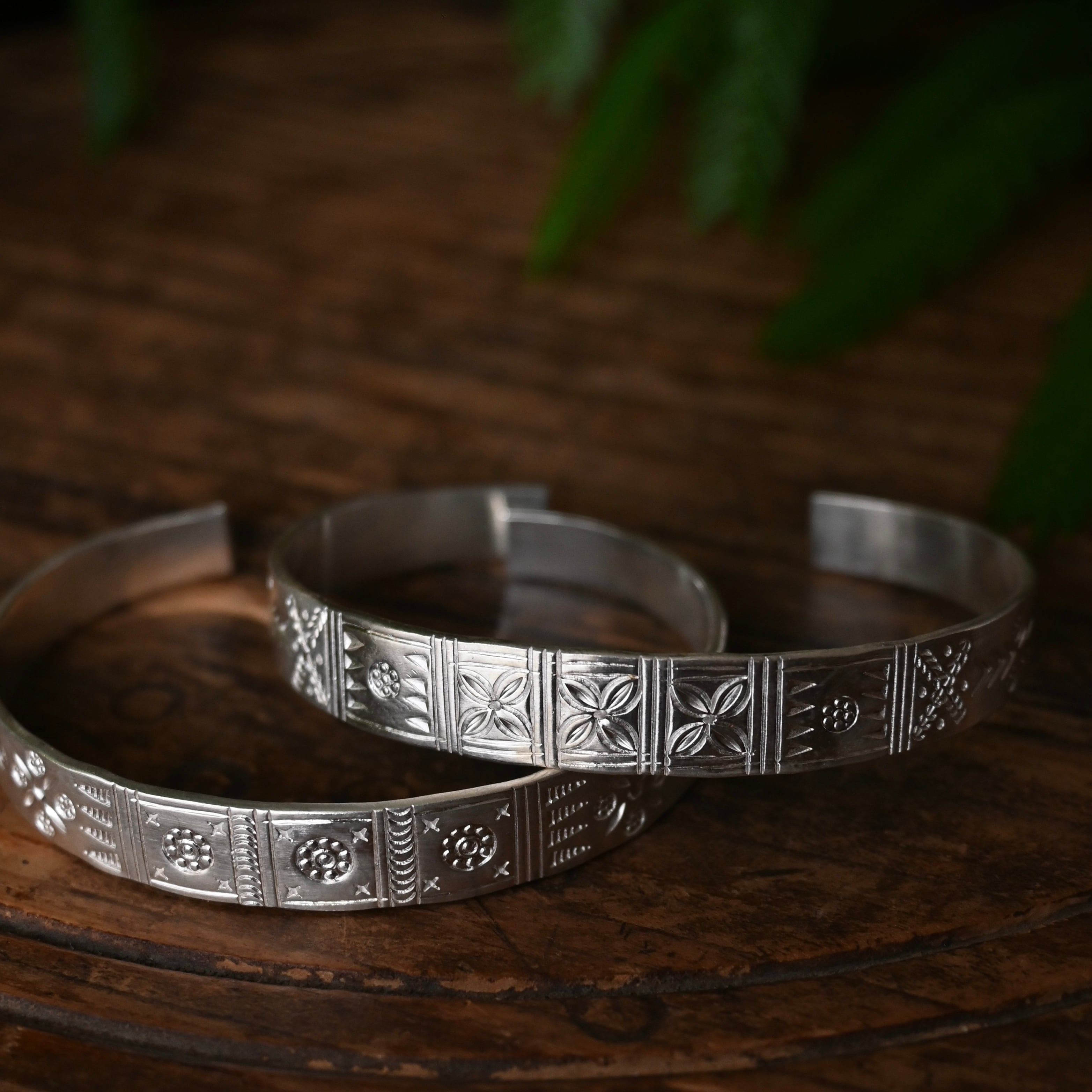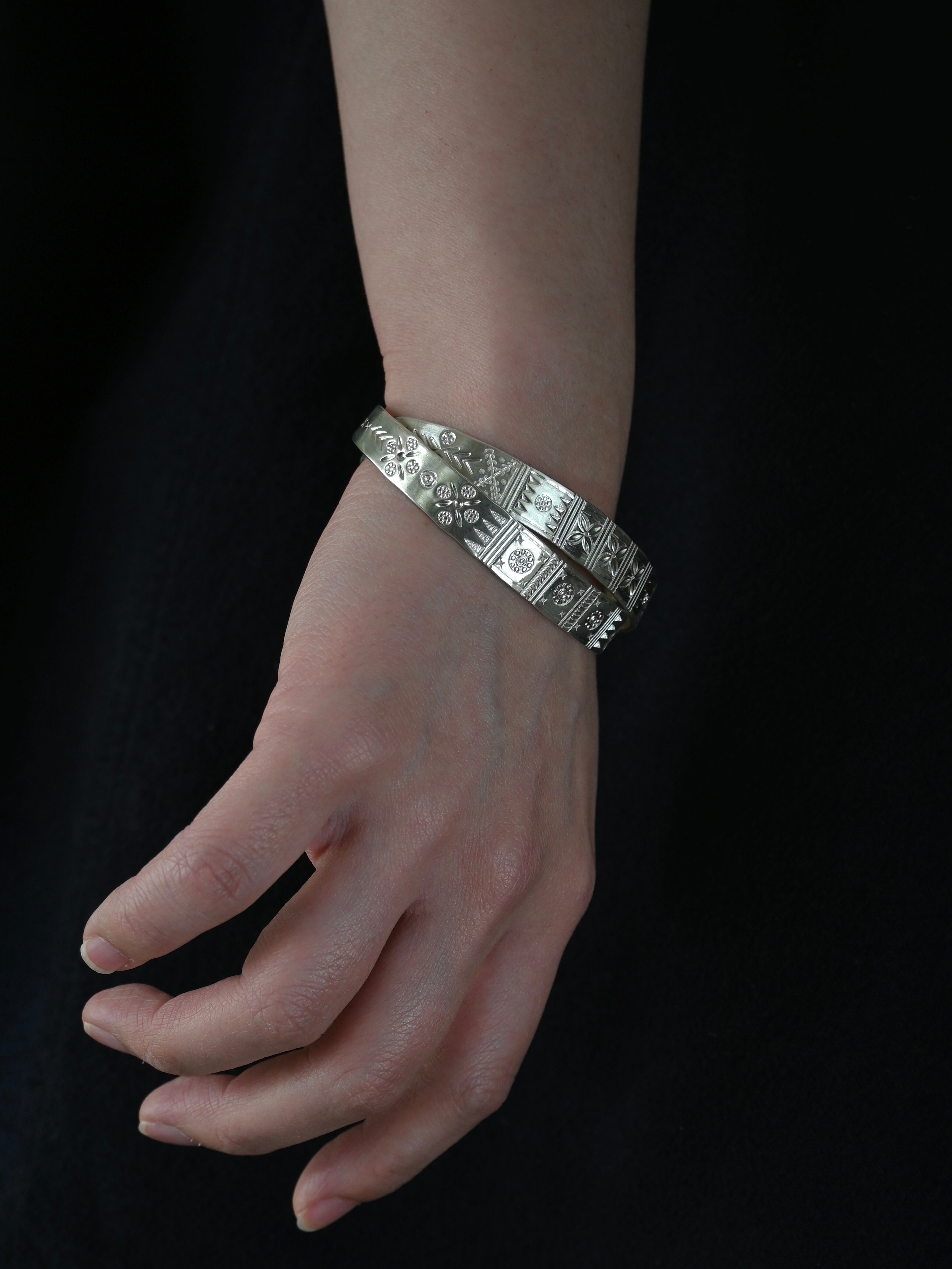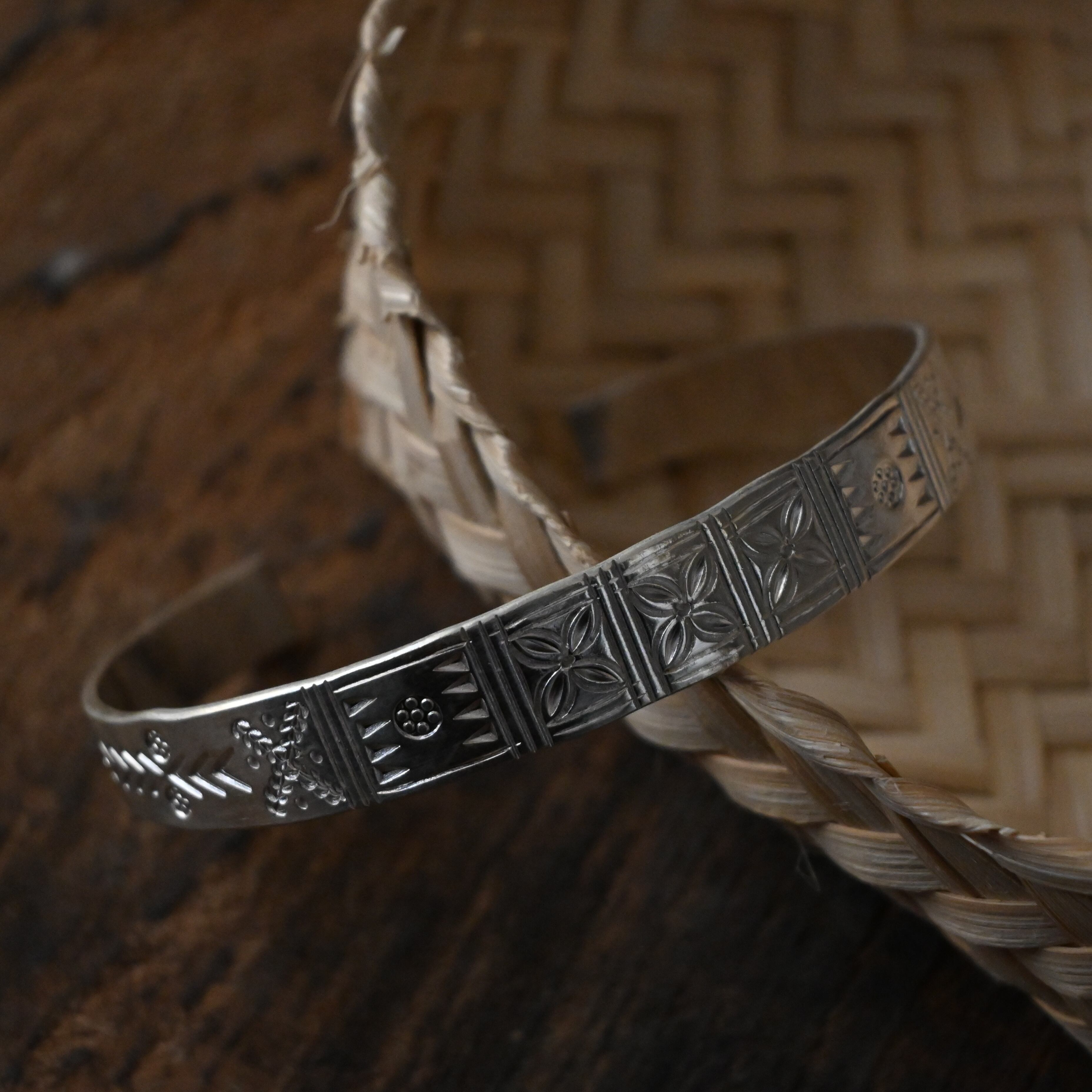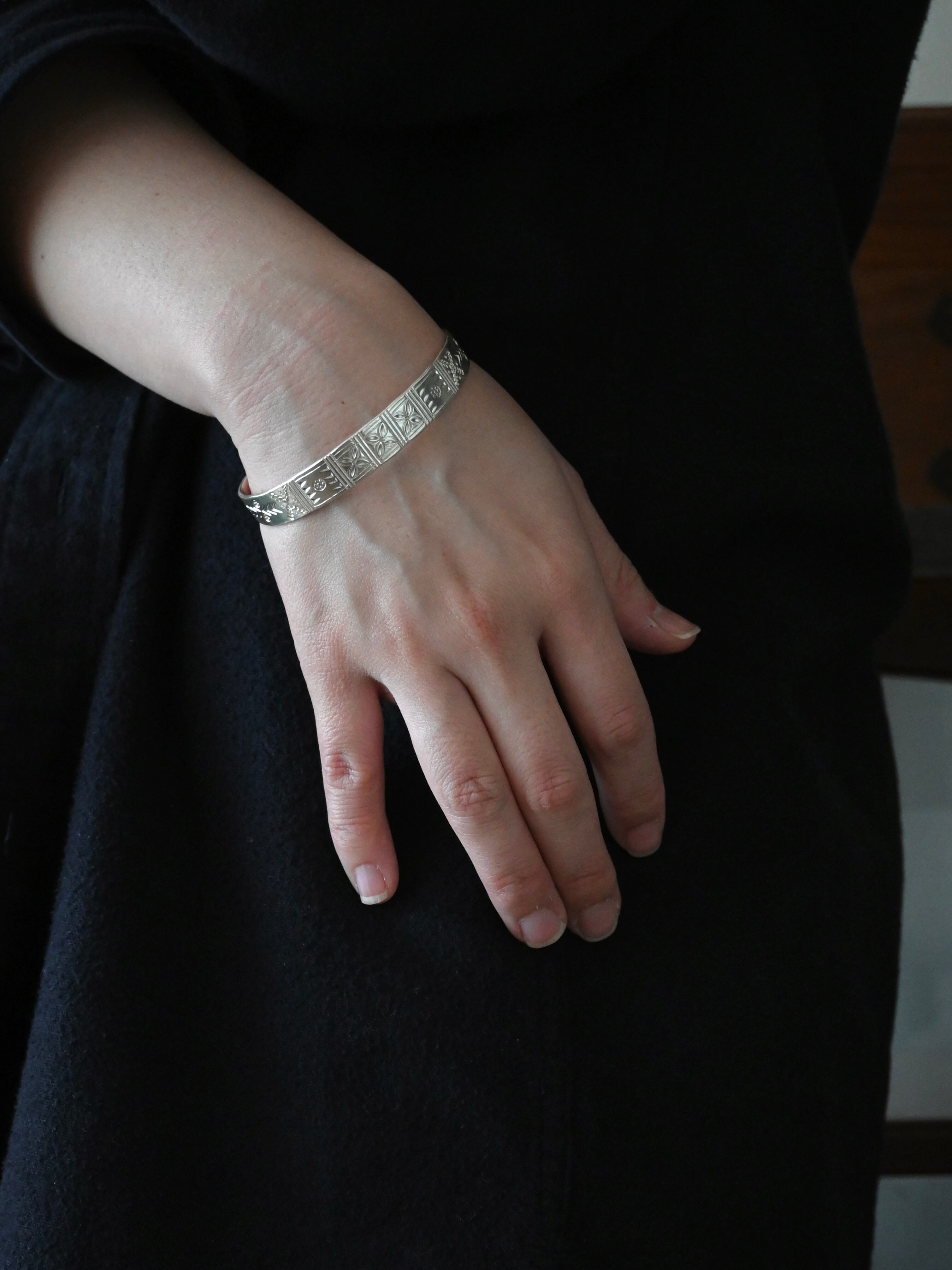 カレン族の手しごと - Karen silver - Hand stamped silver bangle -