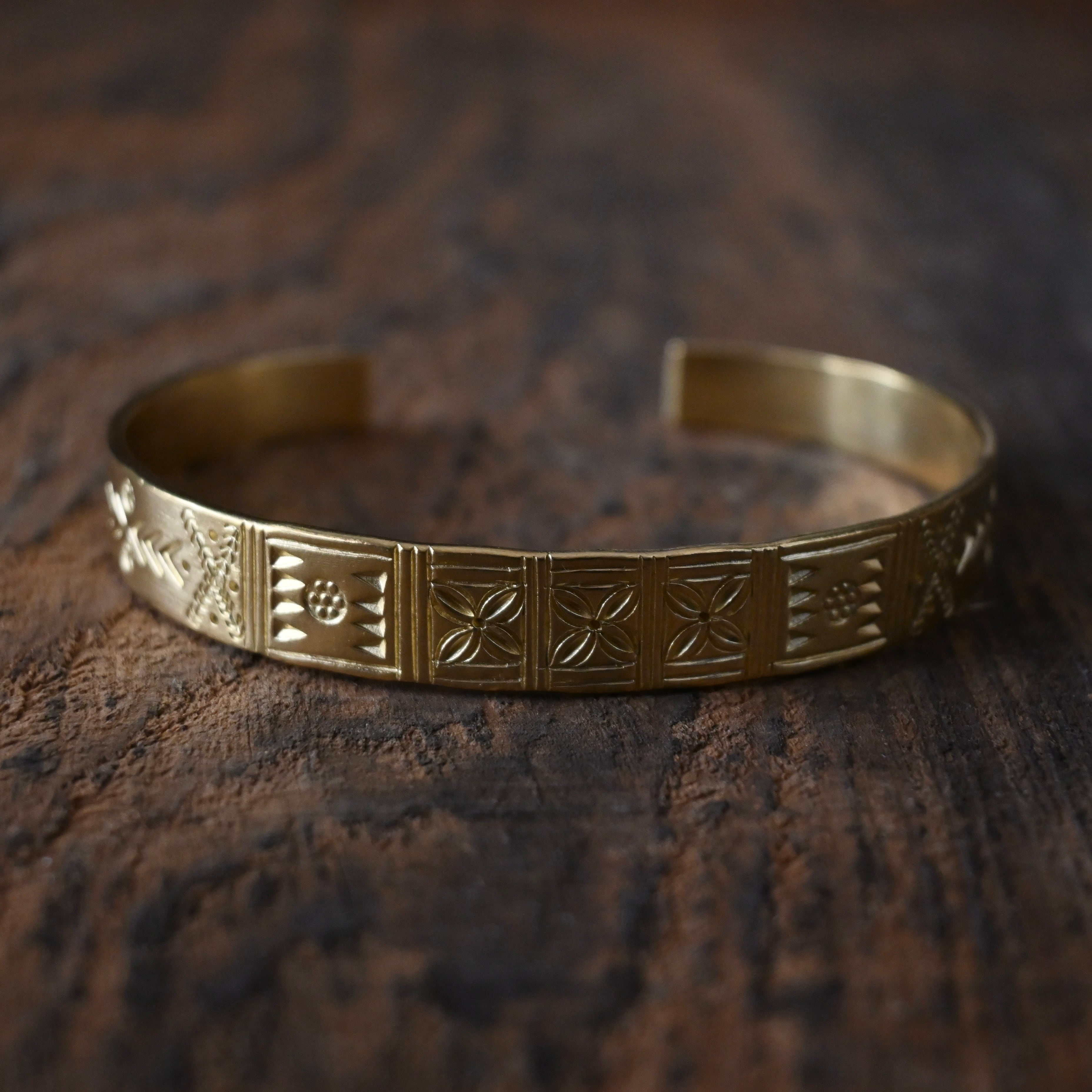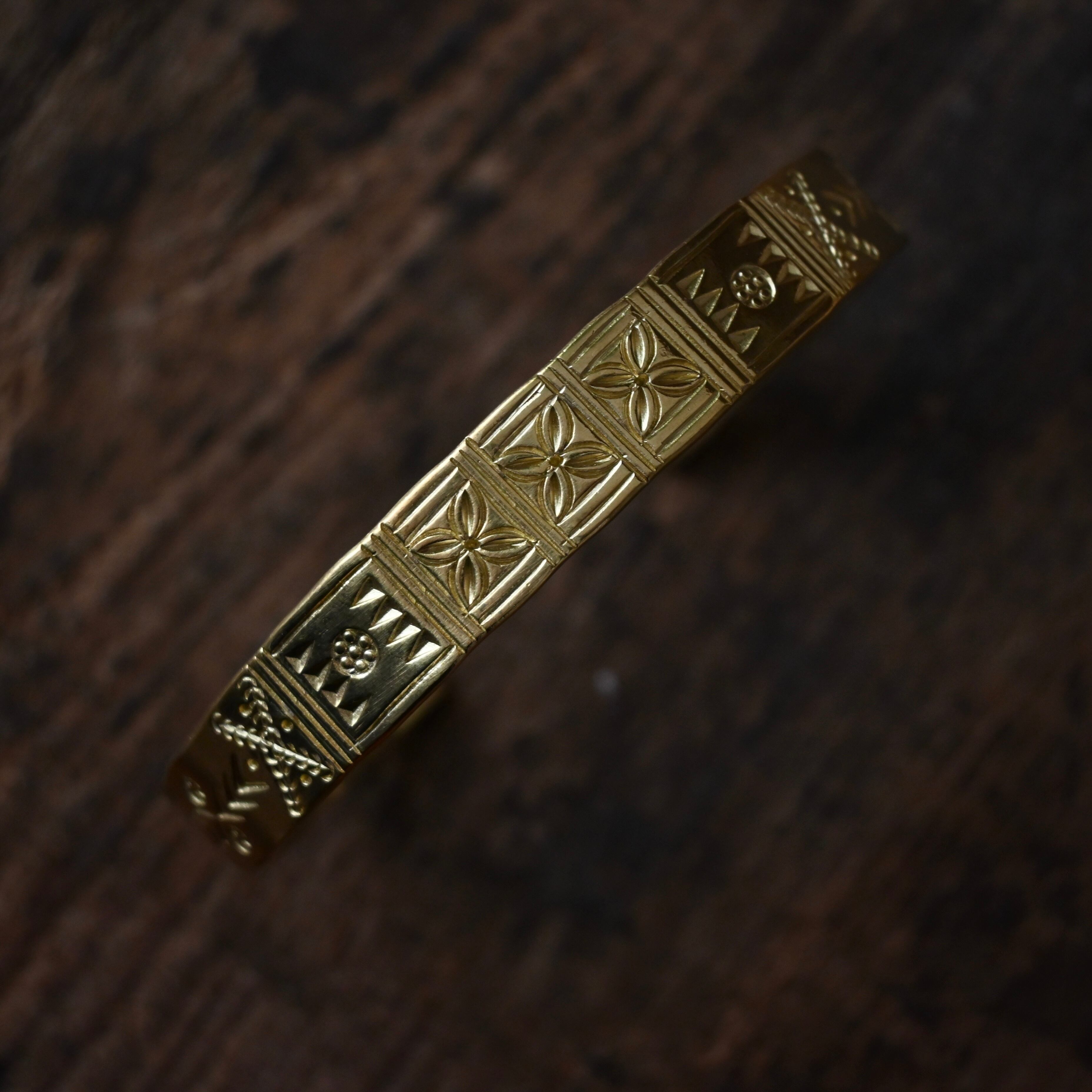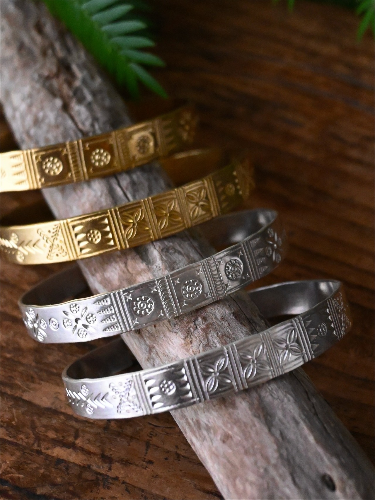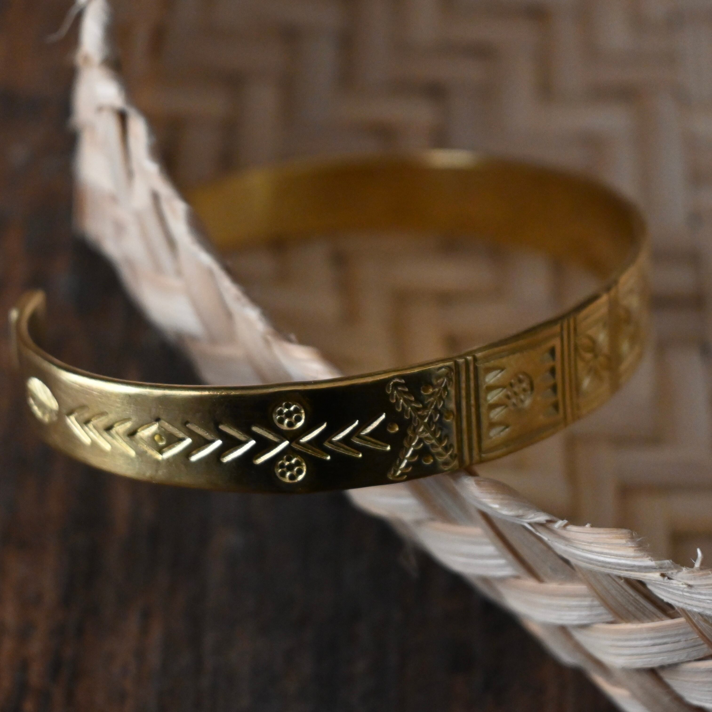 タイ北部の山あいに暮らすカレン族によって、ひとつひとつ手仕事で作られた、真鍮の刻印バングル。