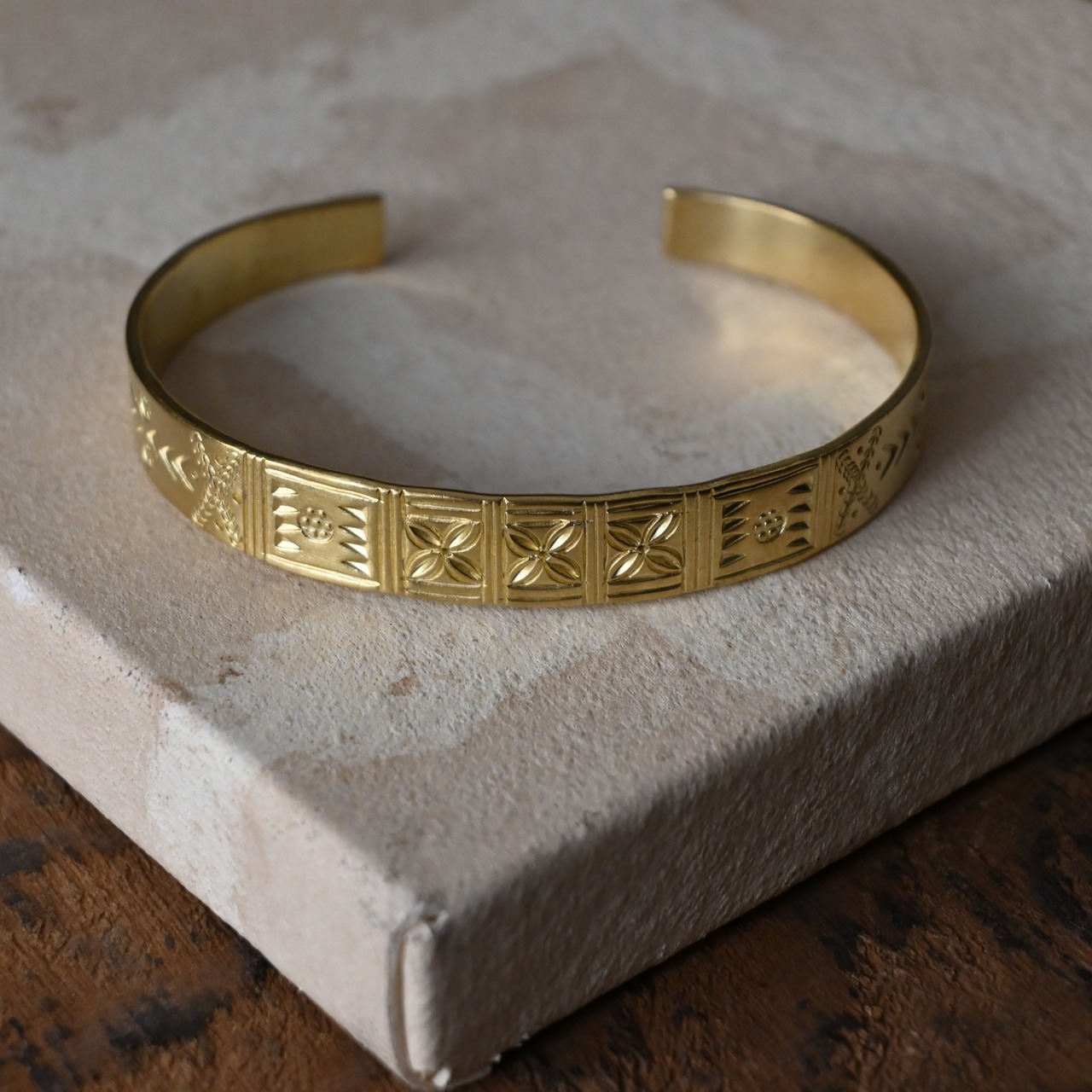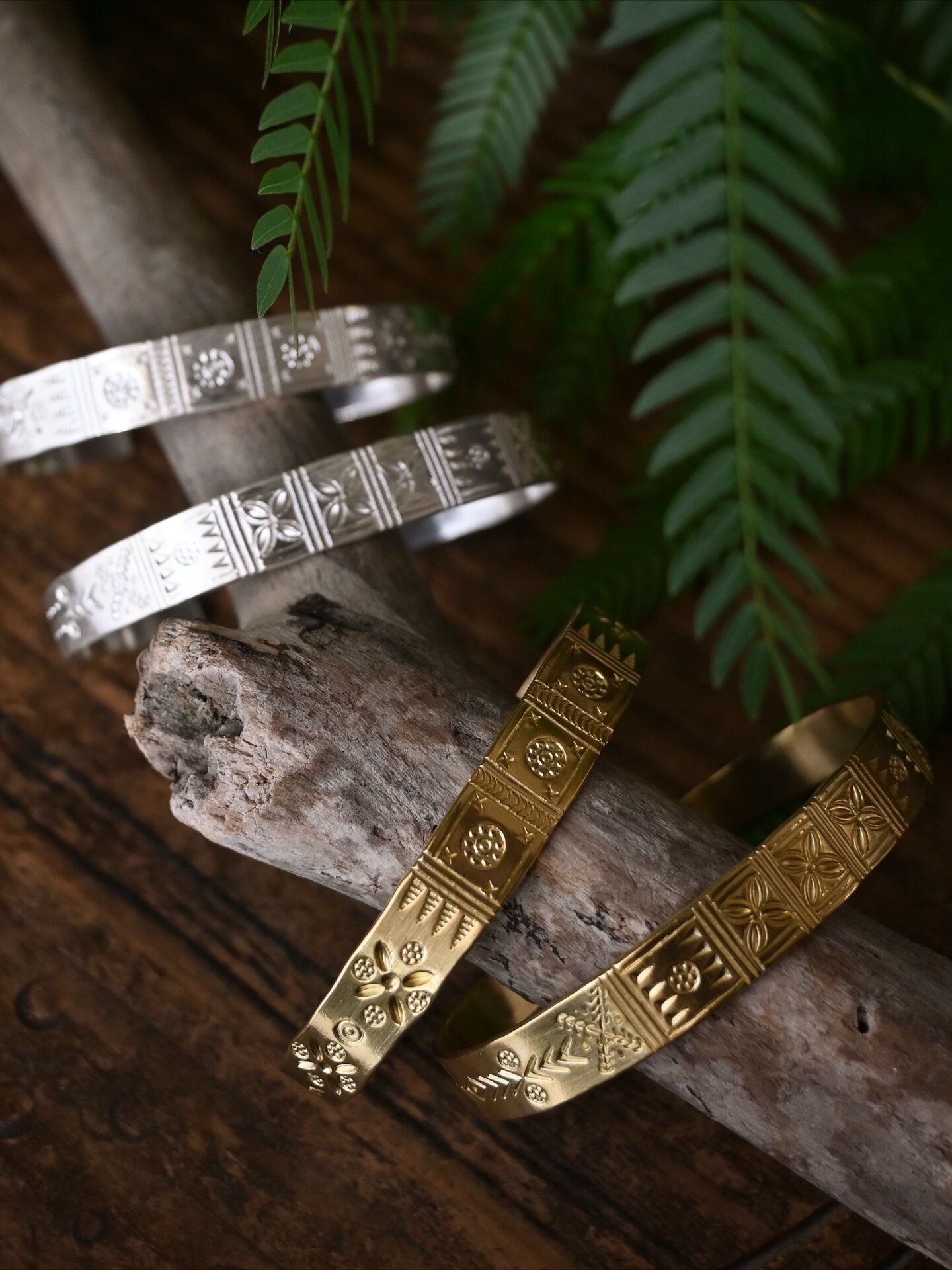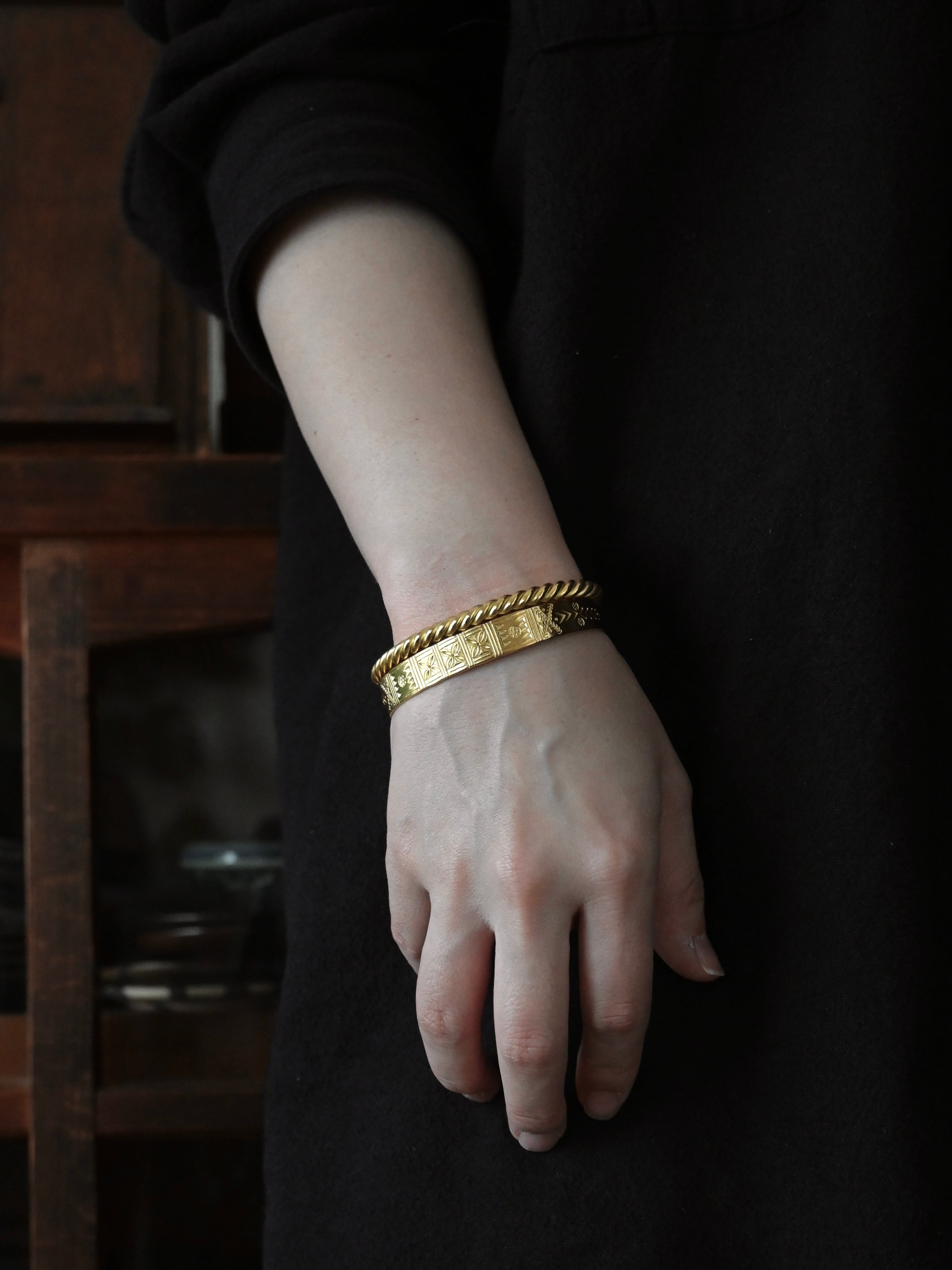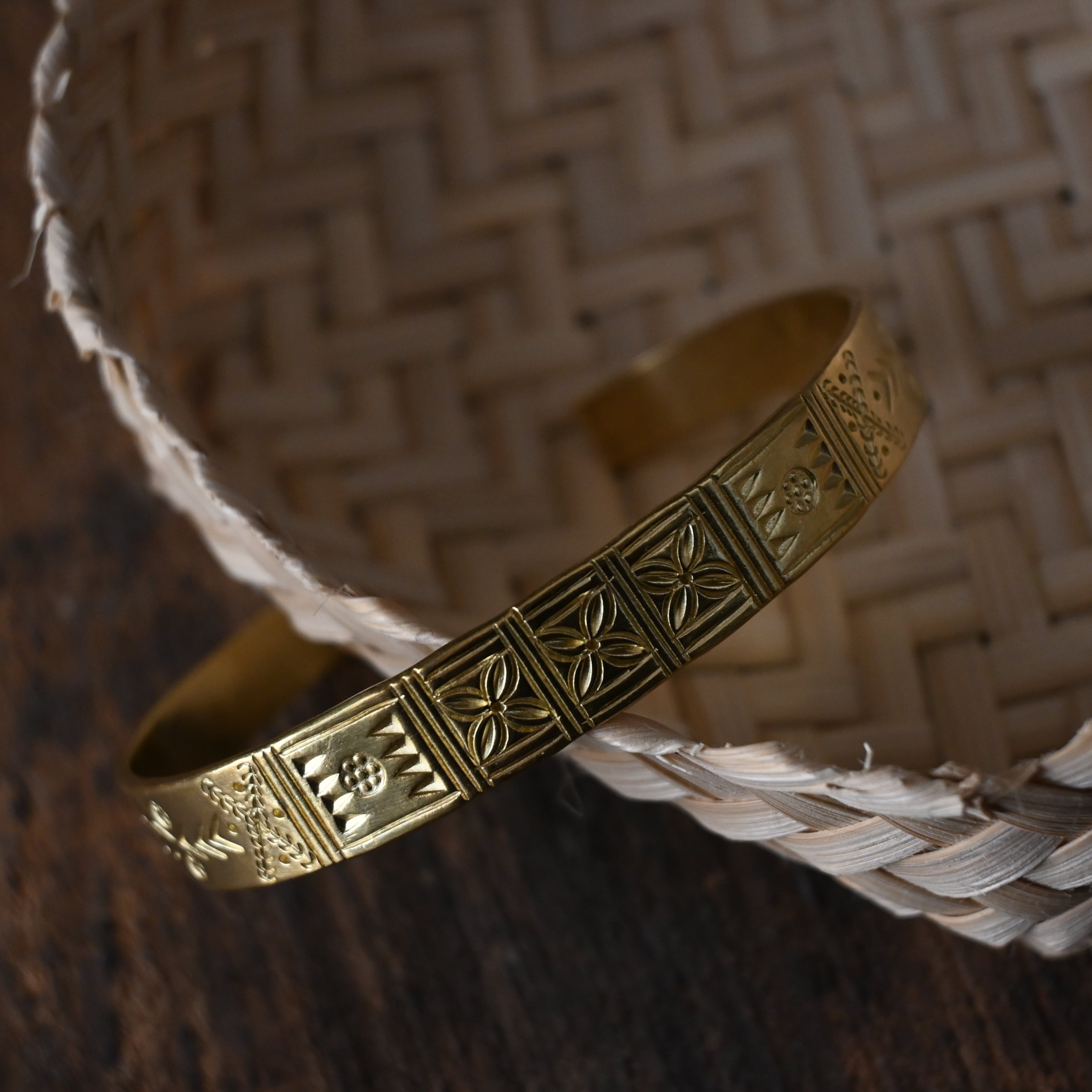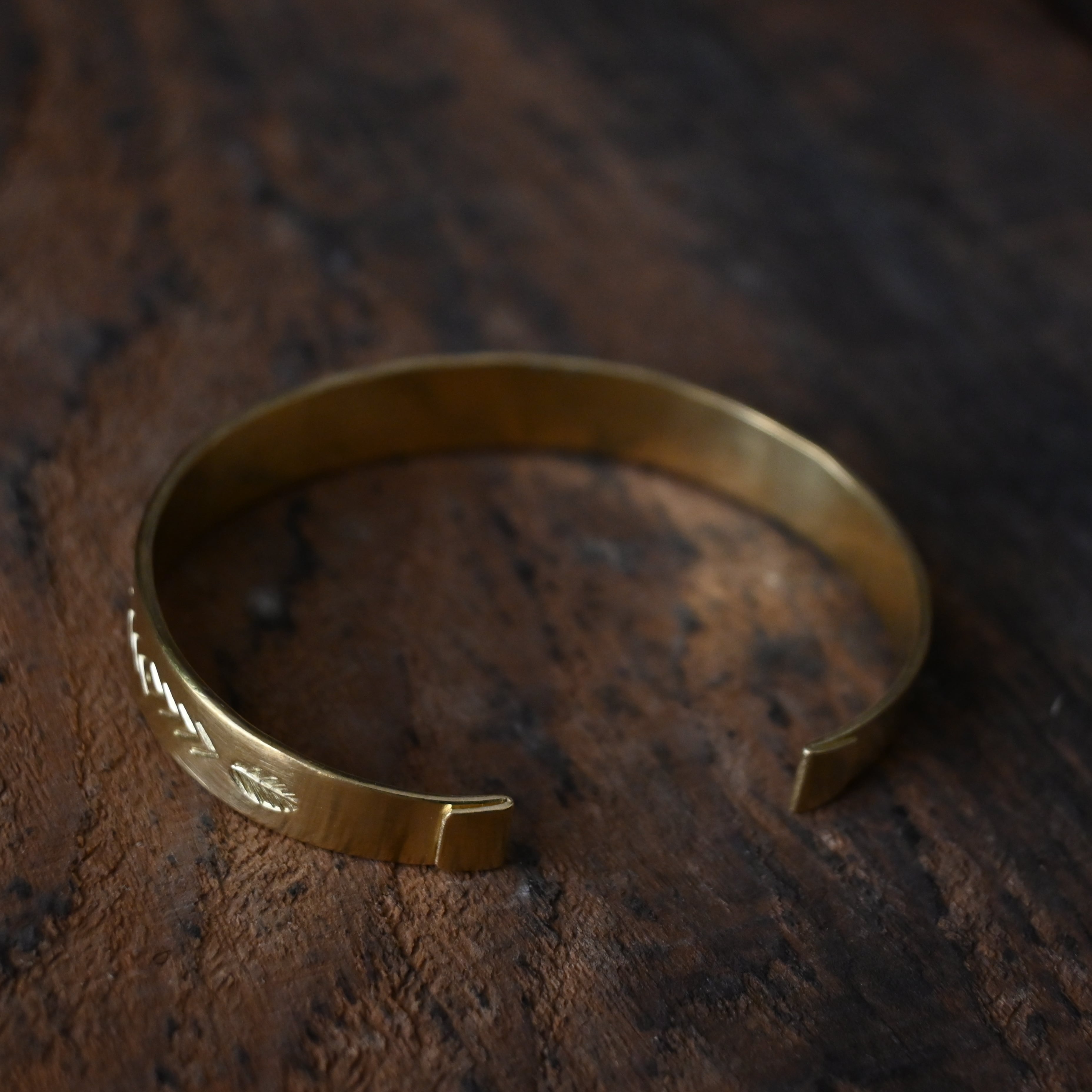 タイ北部の山あいに暮らすカレン族によって、ひとつひとつ手仕事で作られた、真鍮の刻印バングル。