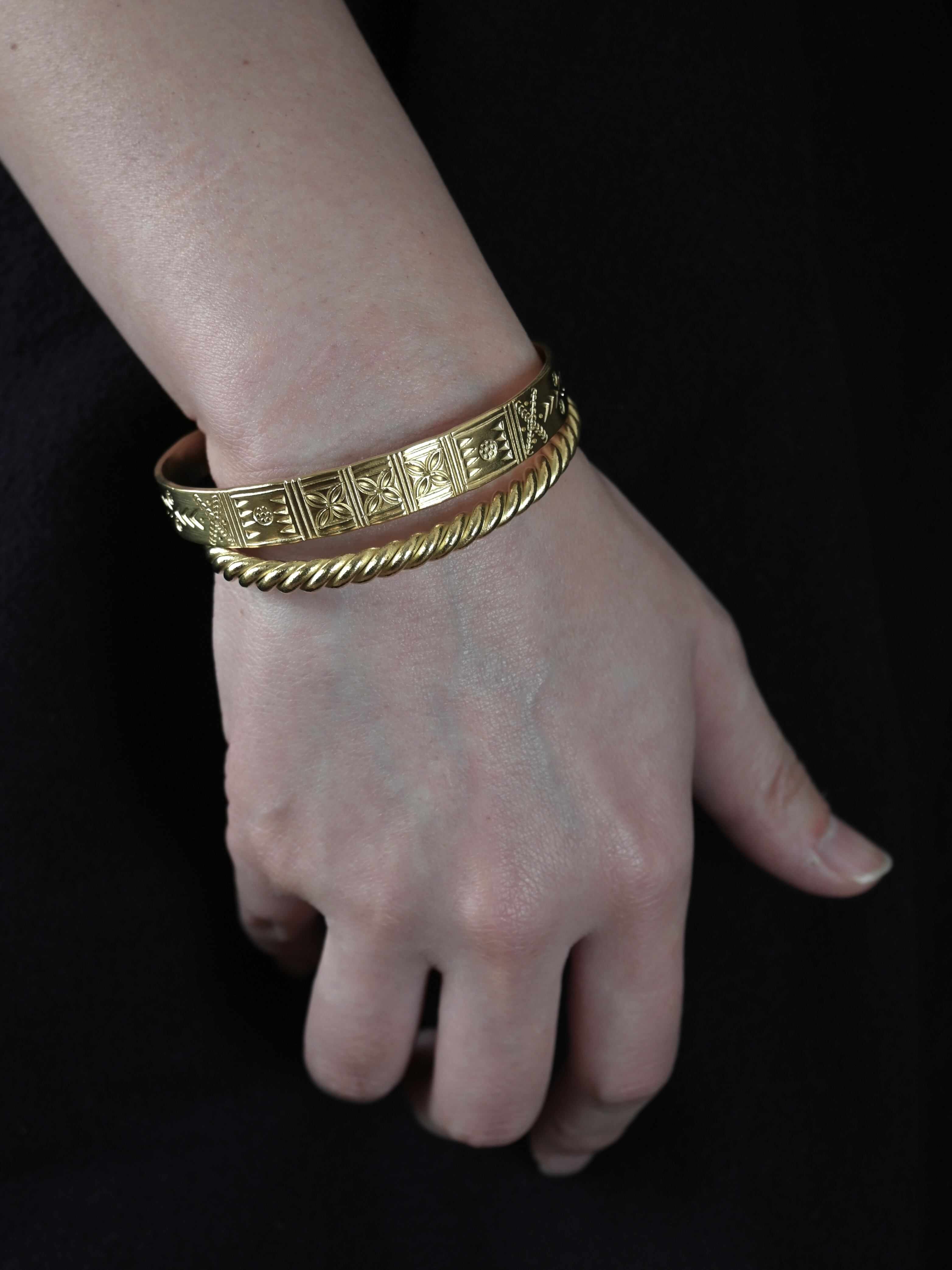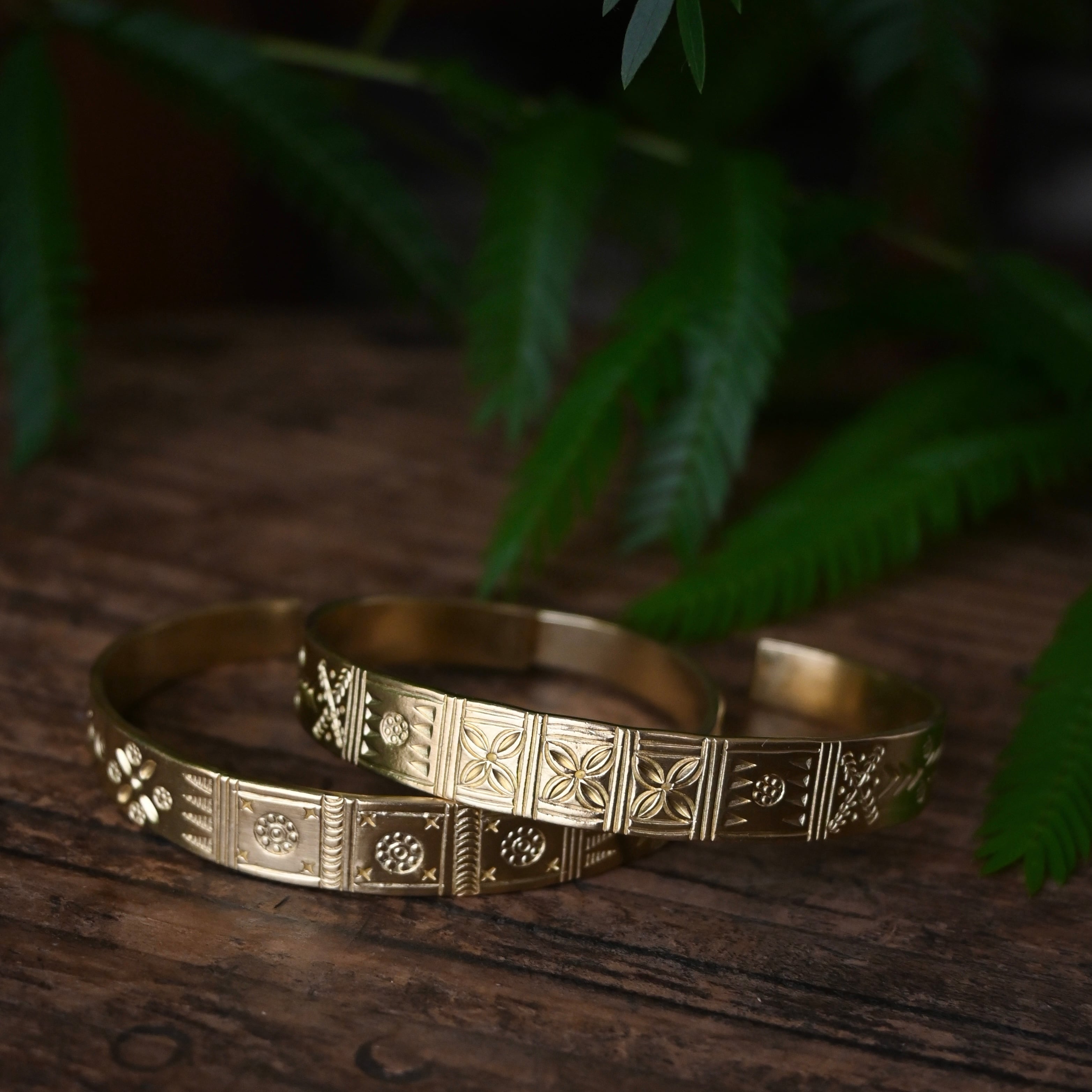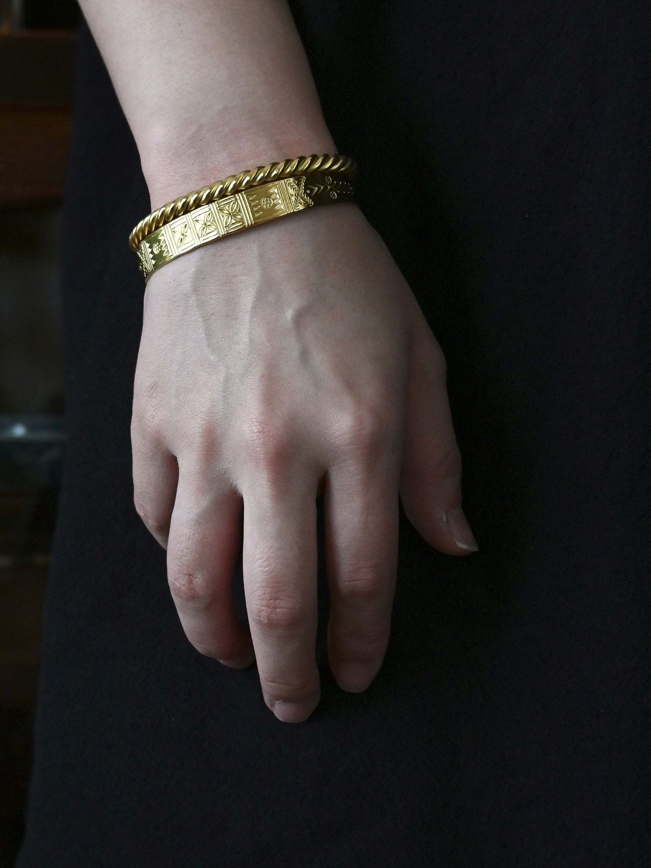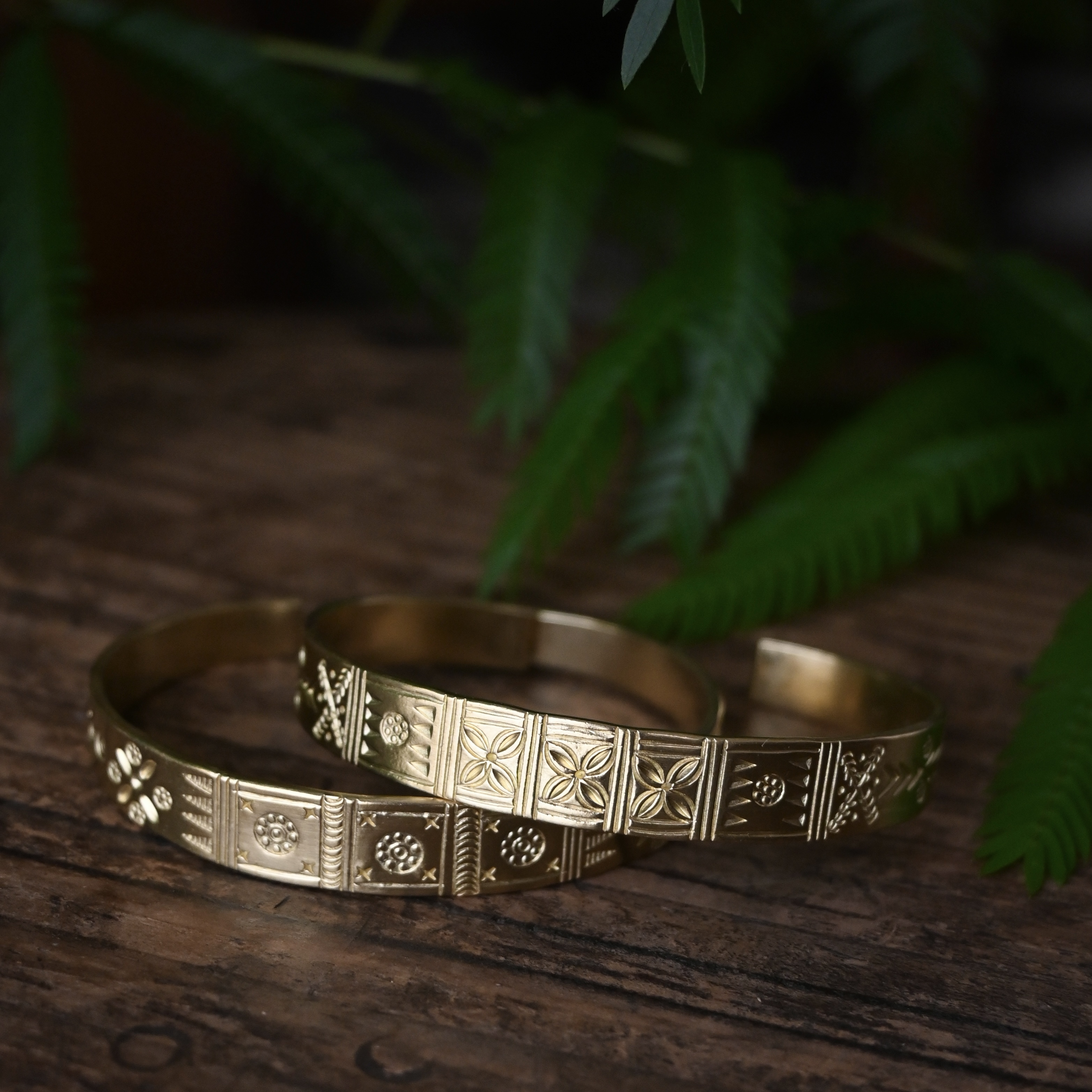 タイ北部の山あいに暮らすカレン族によって、ひとつひとつ手仕事で作られた、真鍮の刻印バングル。