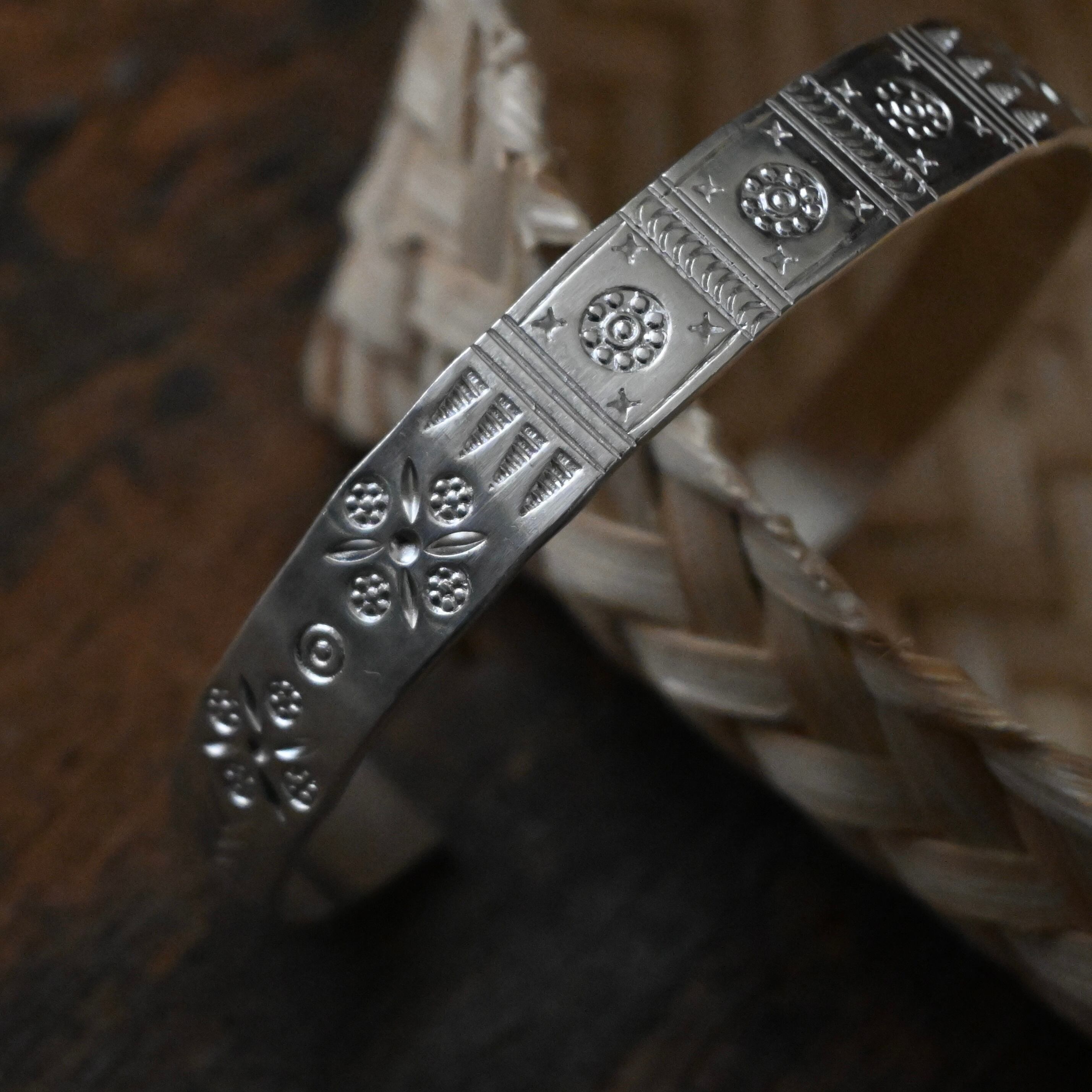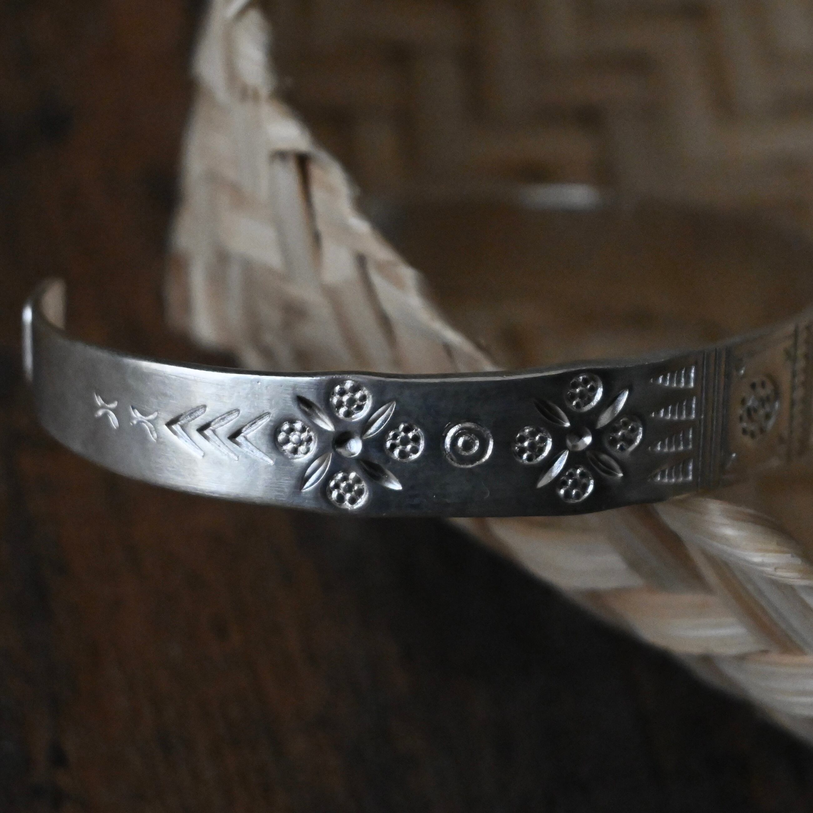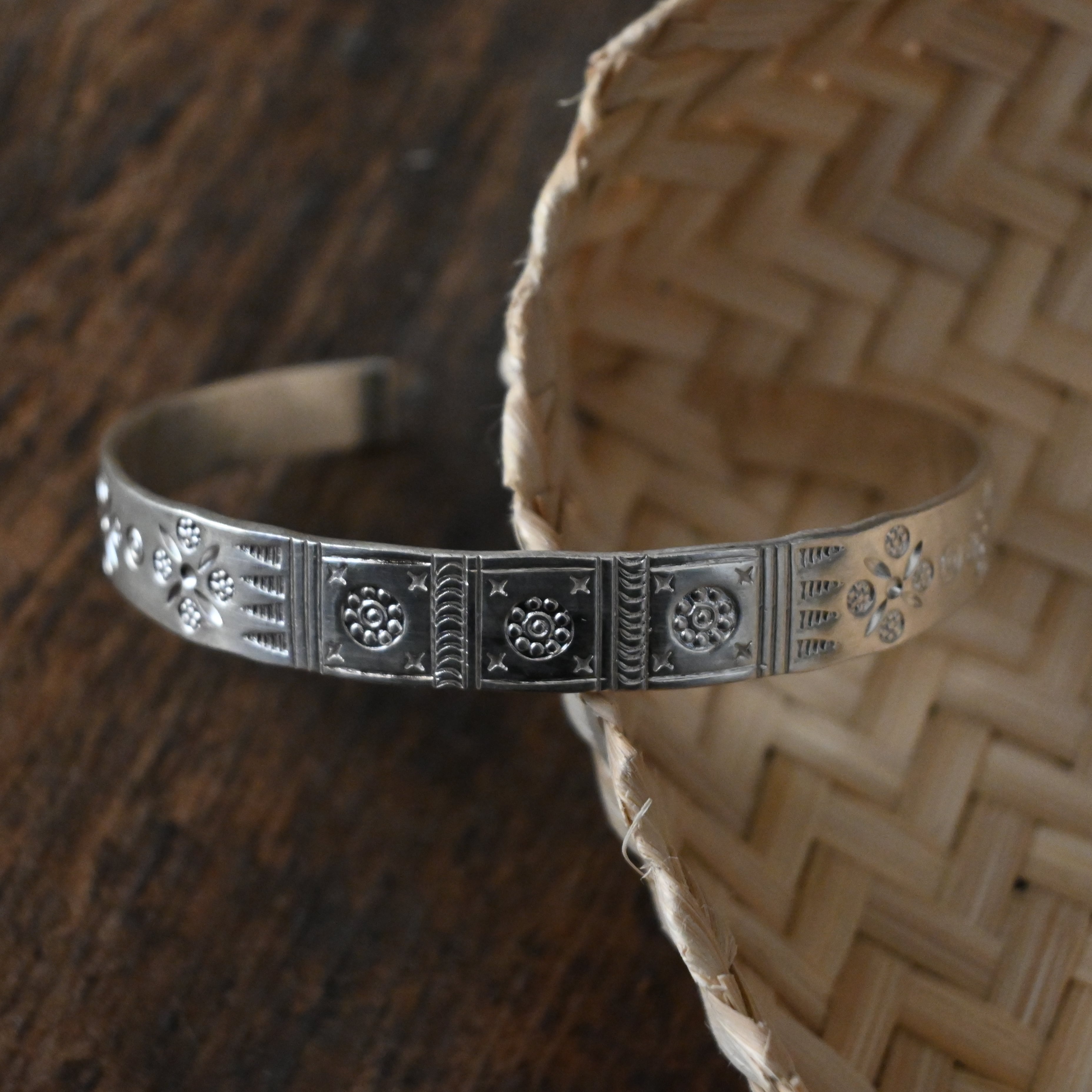 カレン族の手しごと - Karen silver - Hand stamped silver bangle -