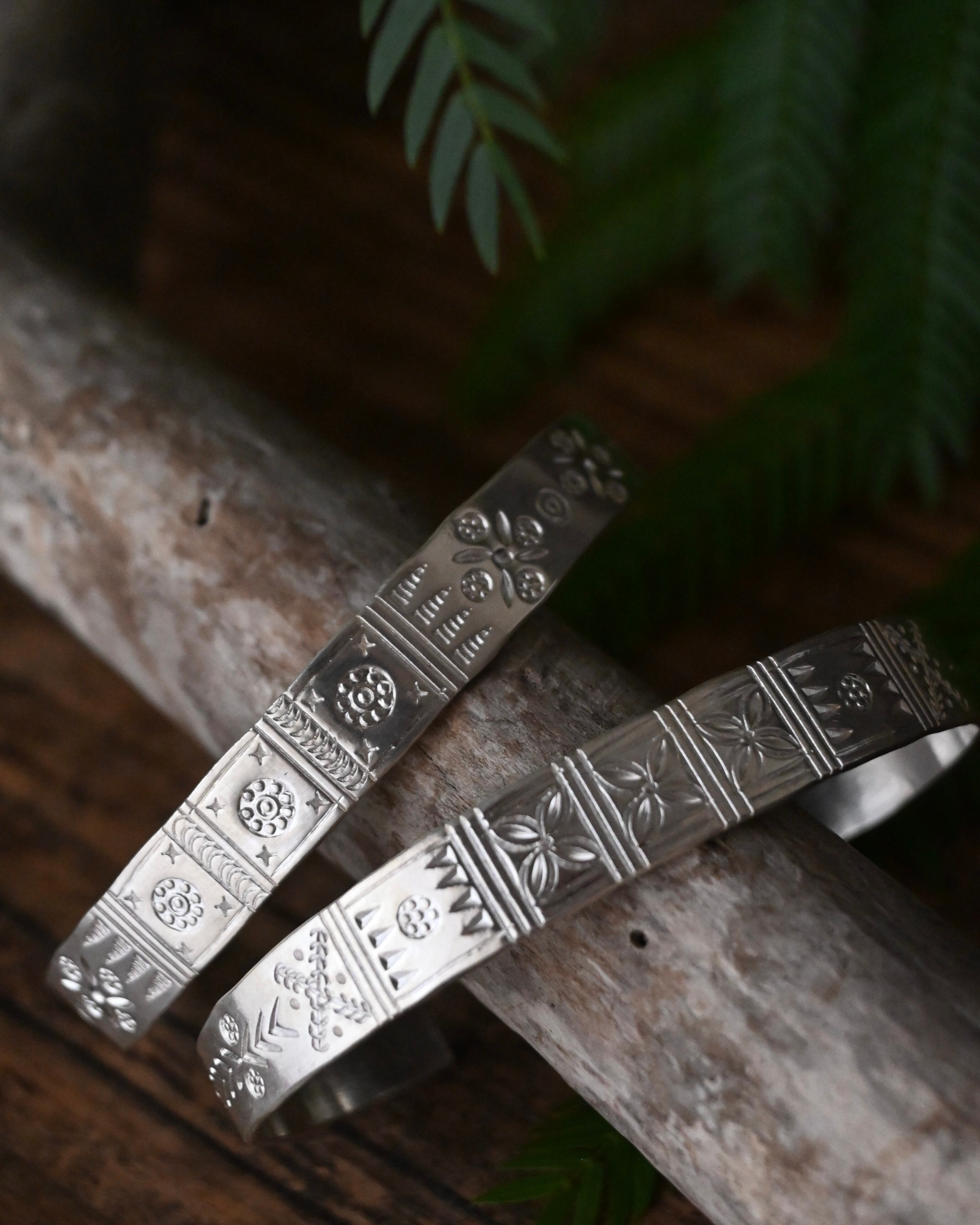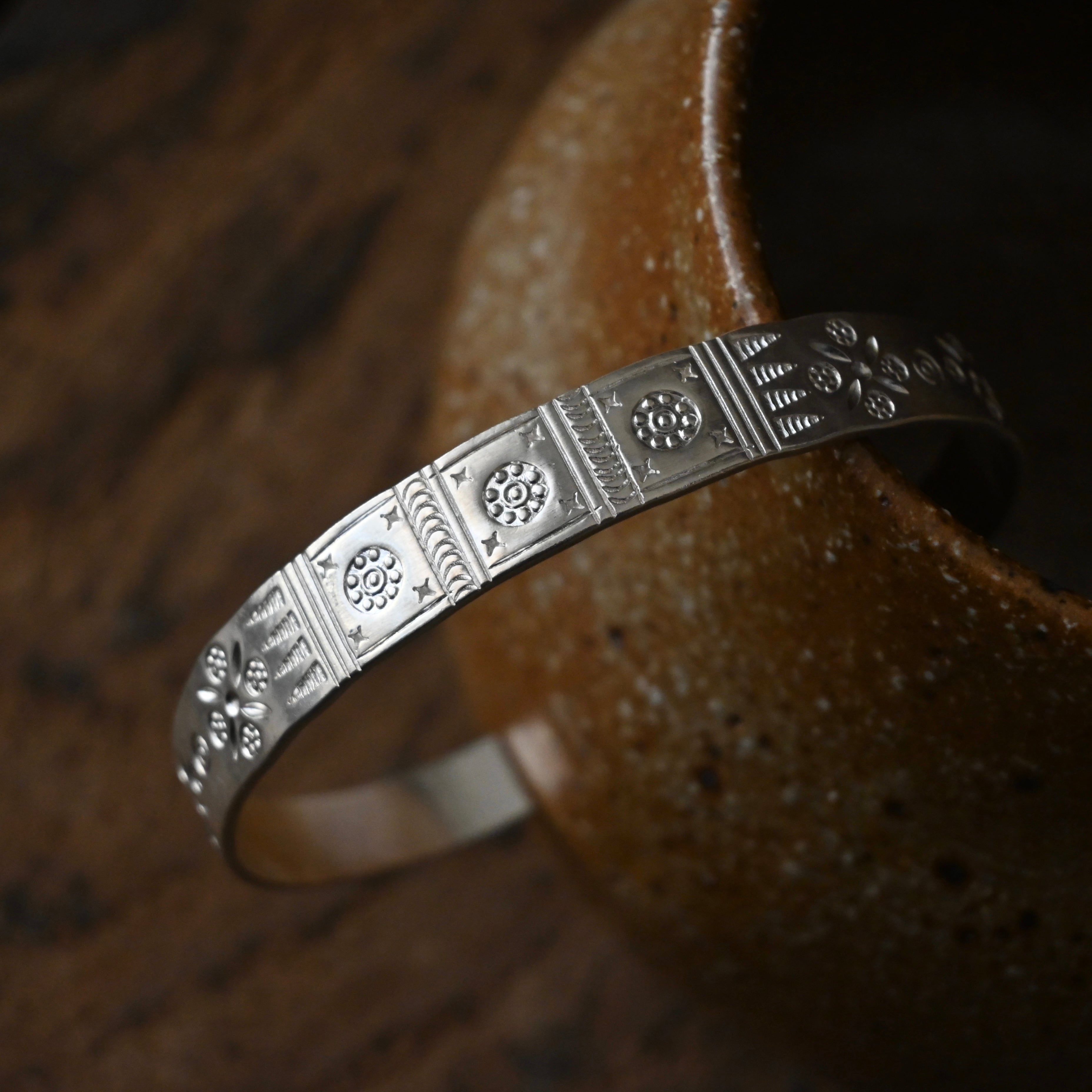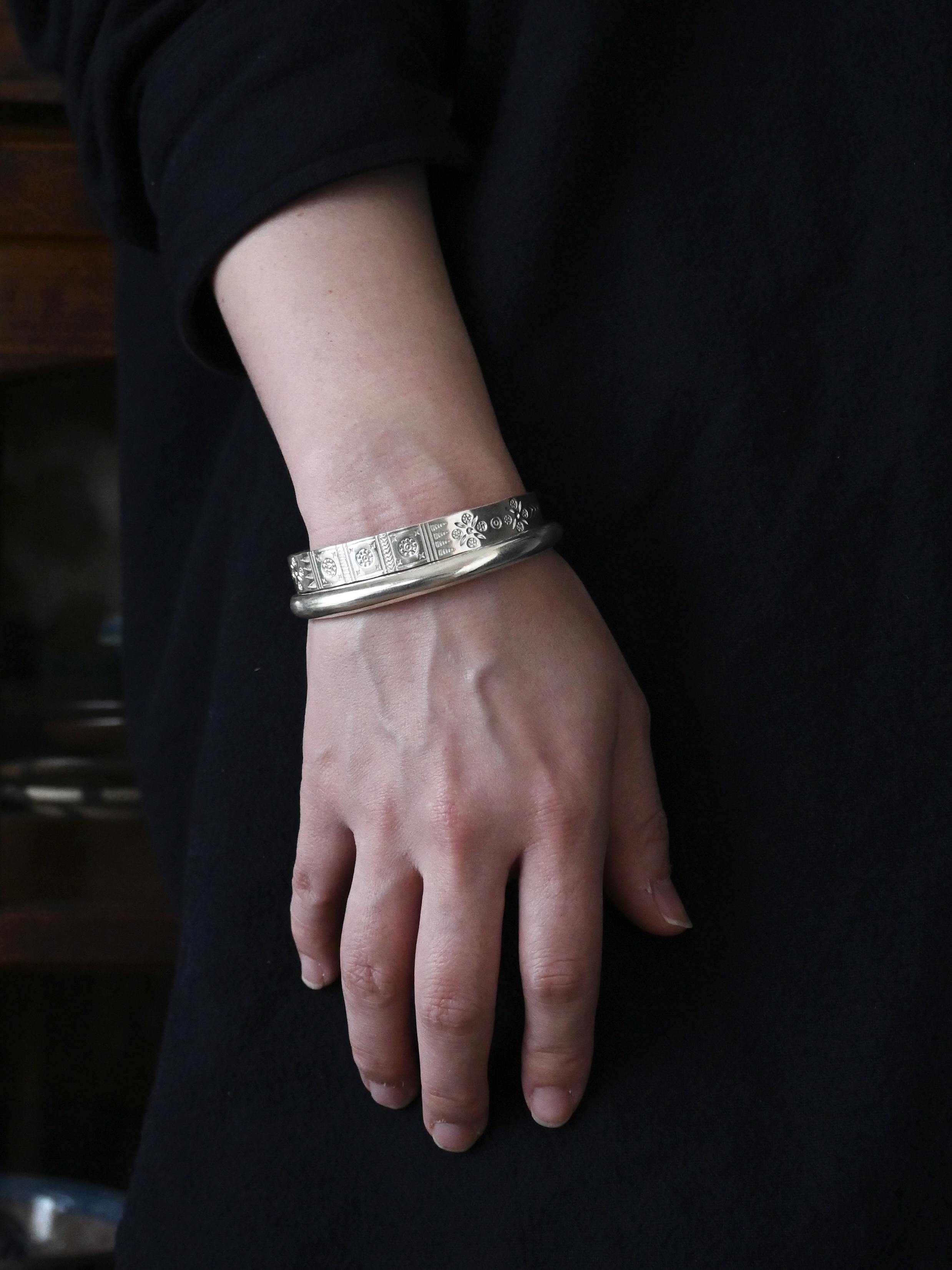 カレン族の手しごと - Karen silver - Hand stamped silver bangle -