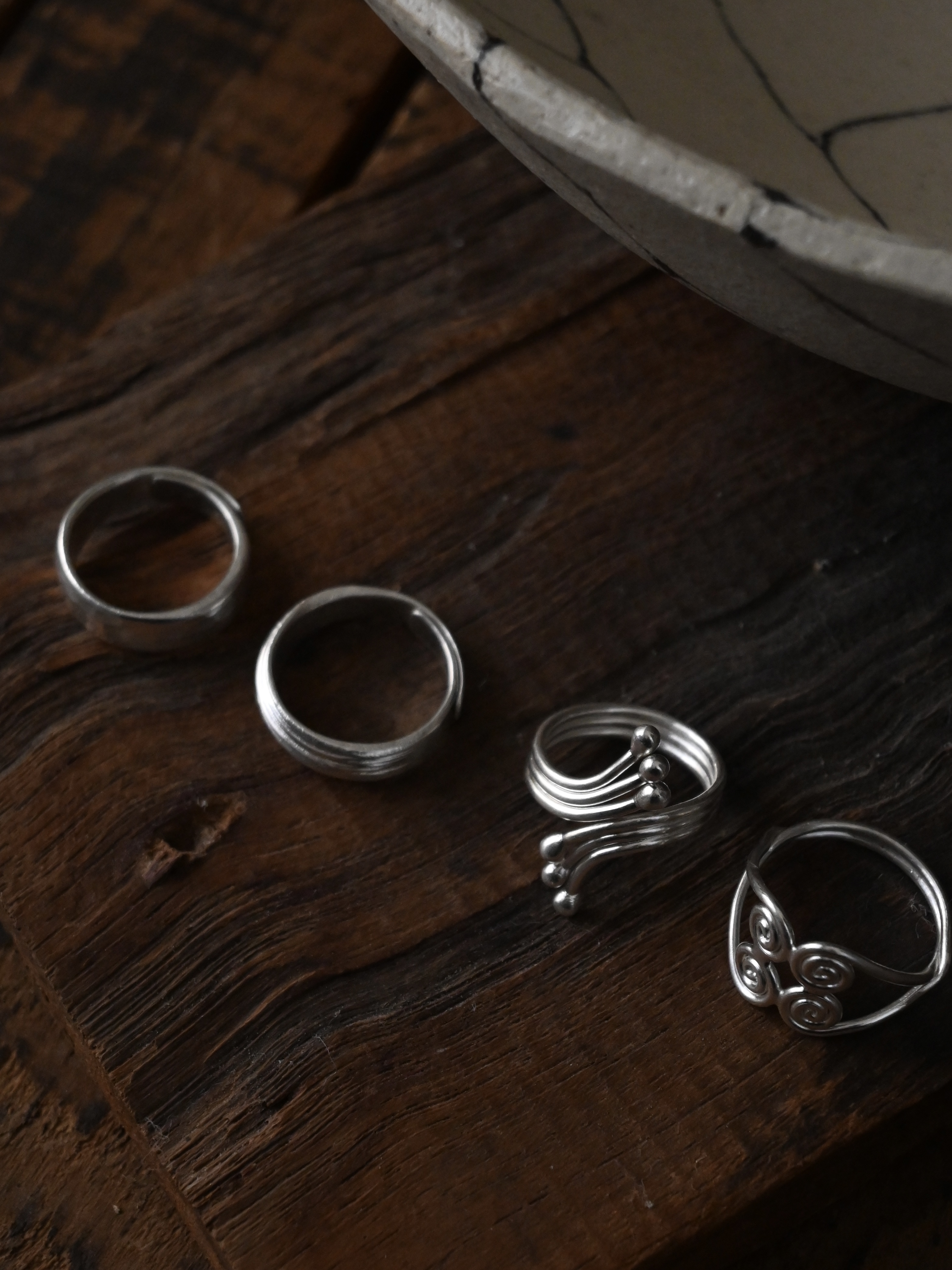 装飾は素朴で、自然や暮らしをモチーフにしたものが多く、身につけるたび、静かに心に響くような存在感を放ちます。