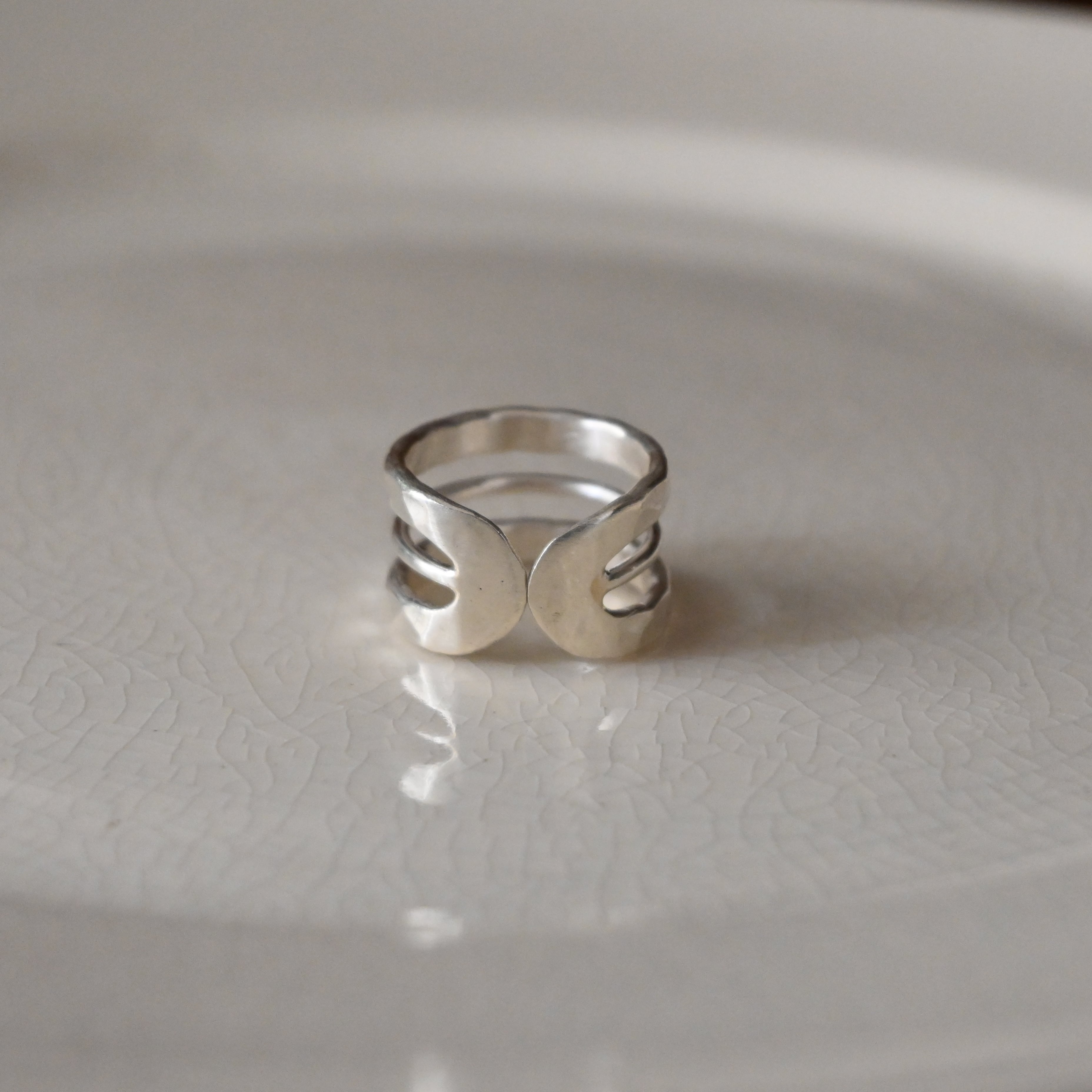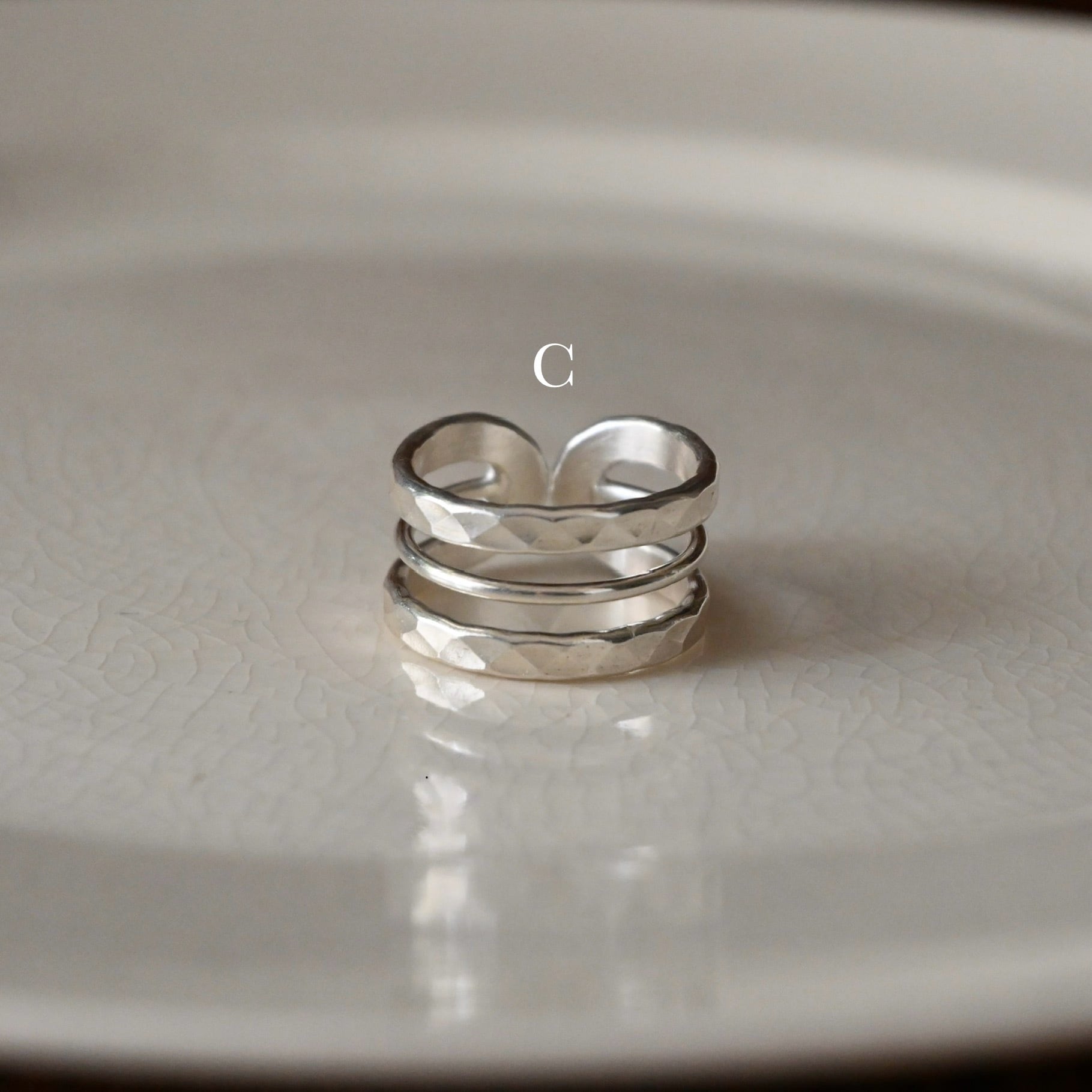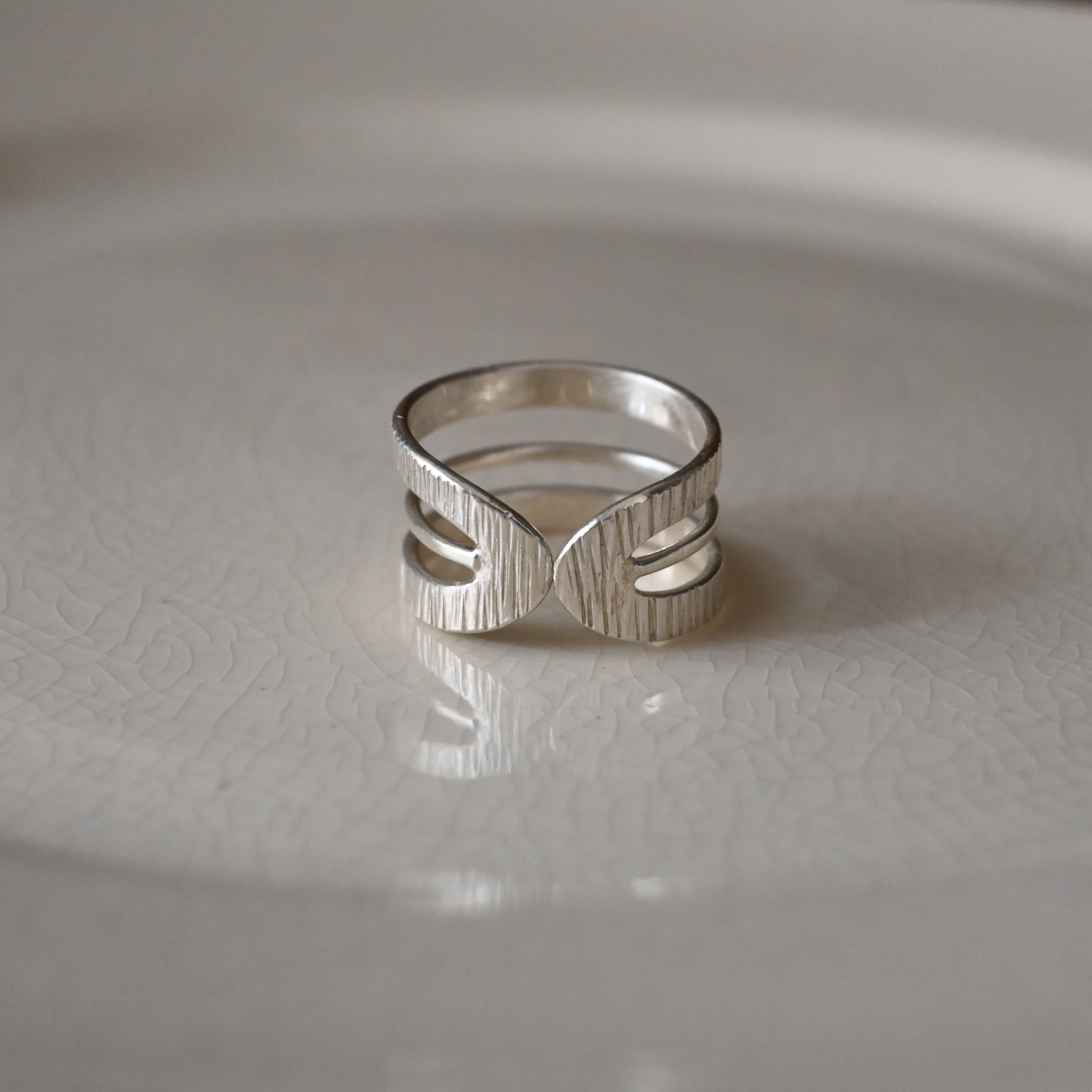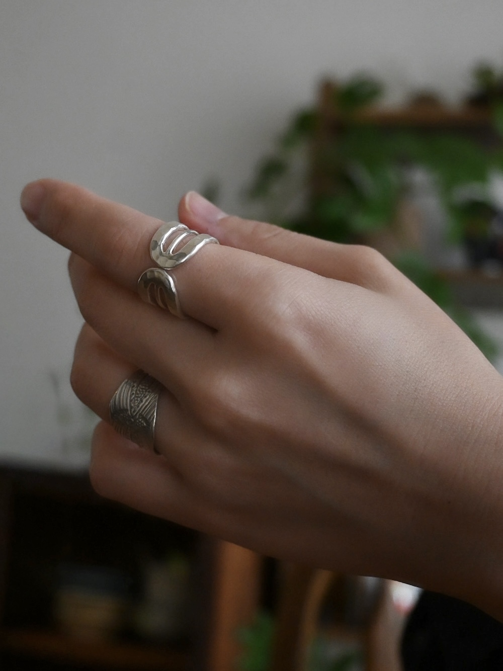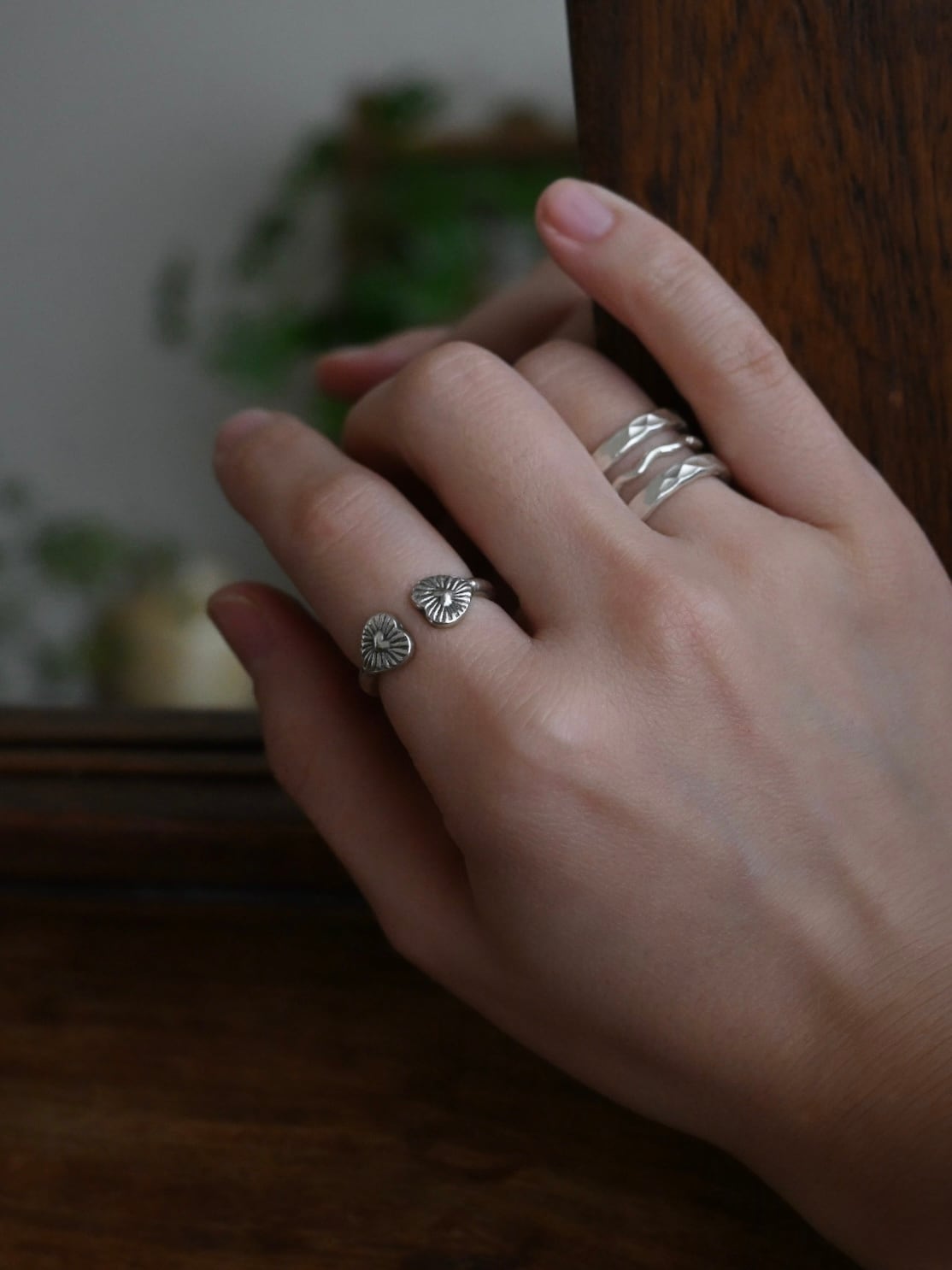 シンプルながらも表面の凹凸できらりと手の動きに合わせて光る姿が印象的なリングです。