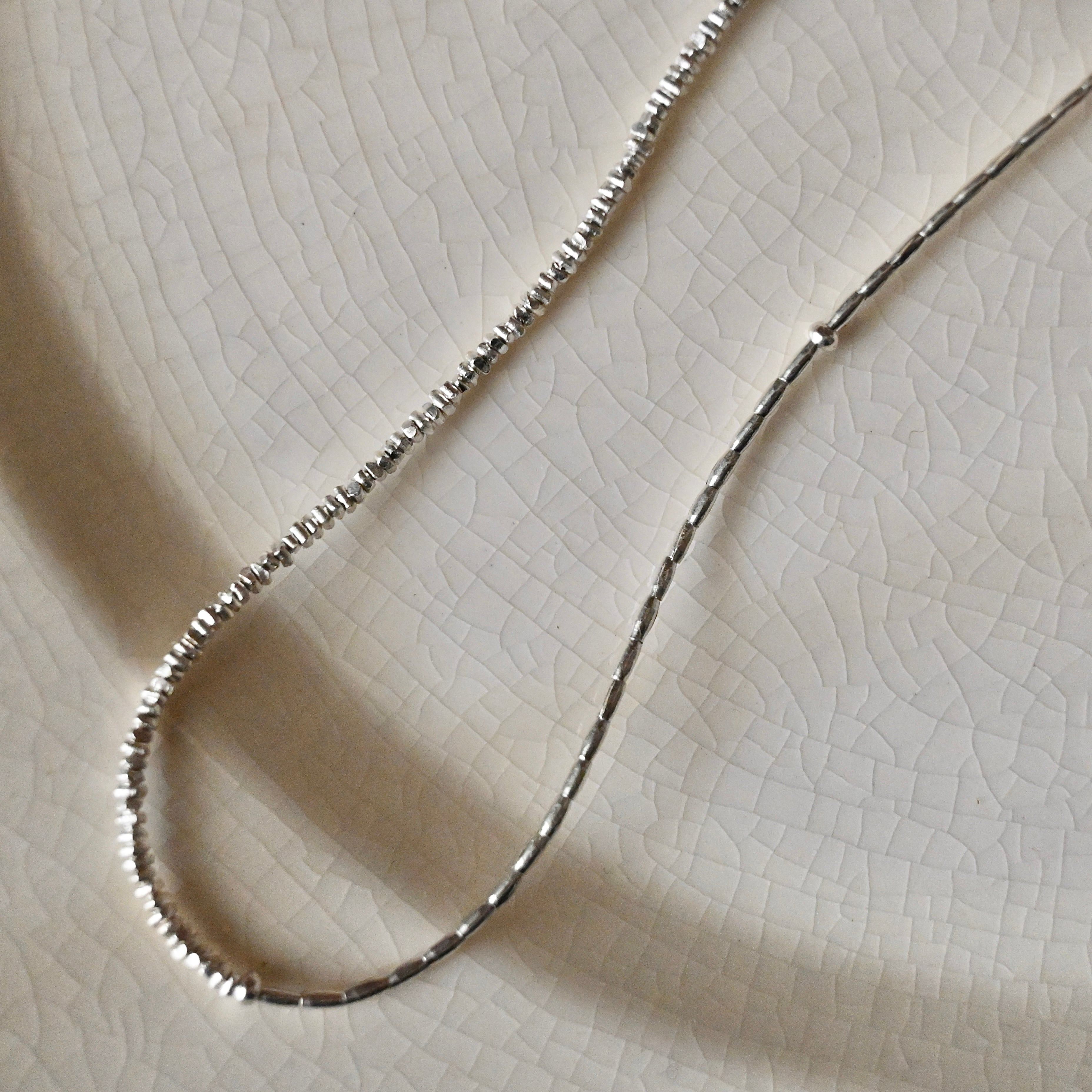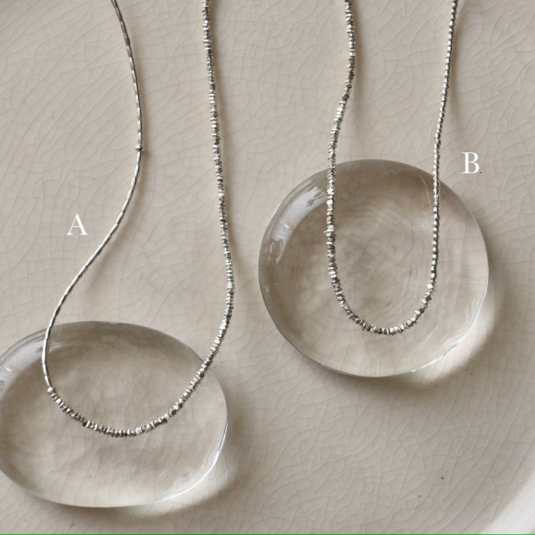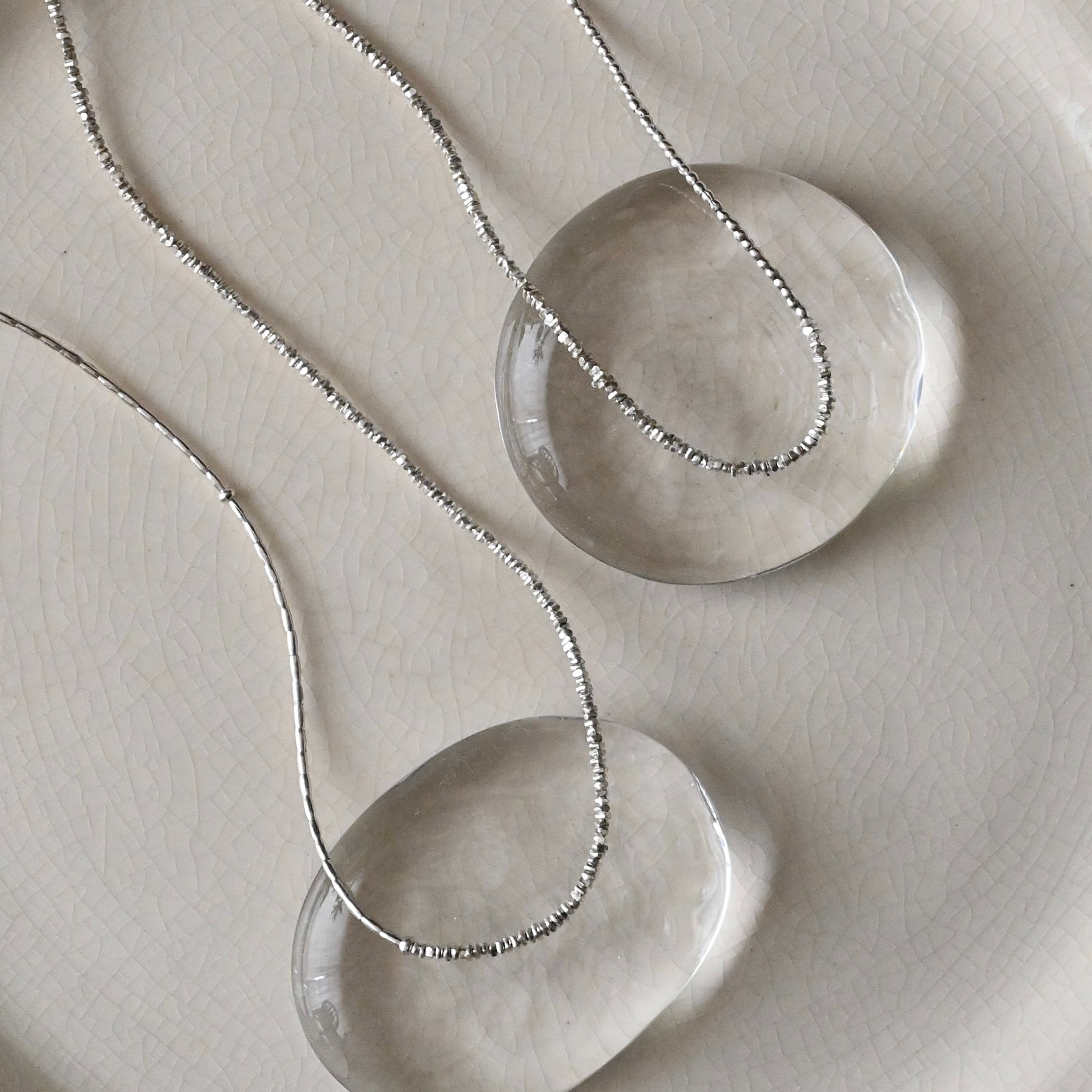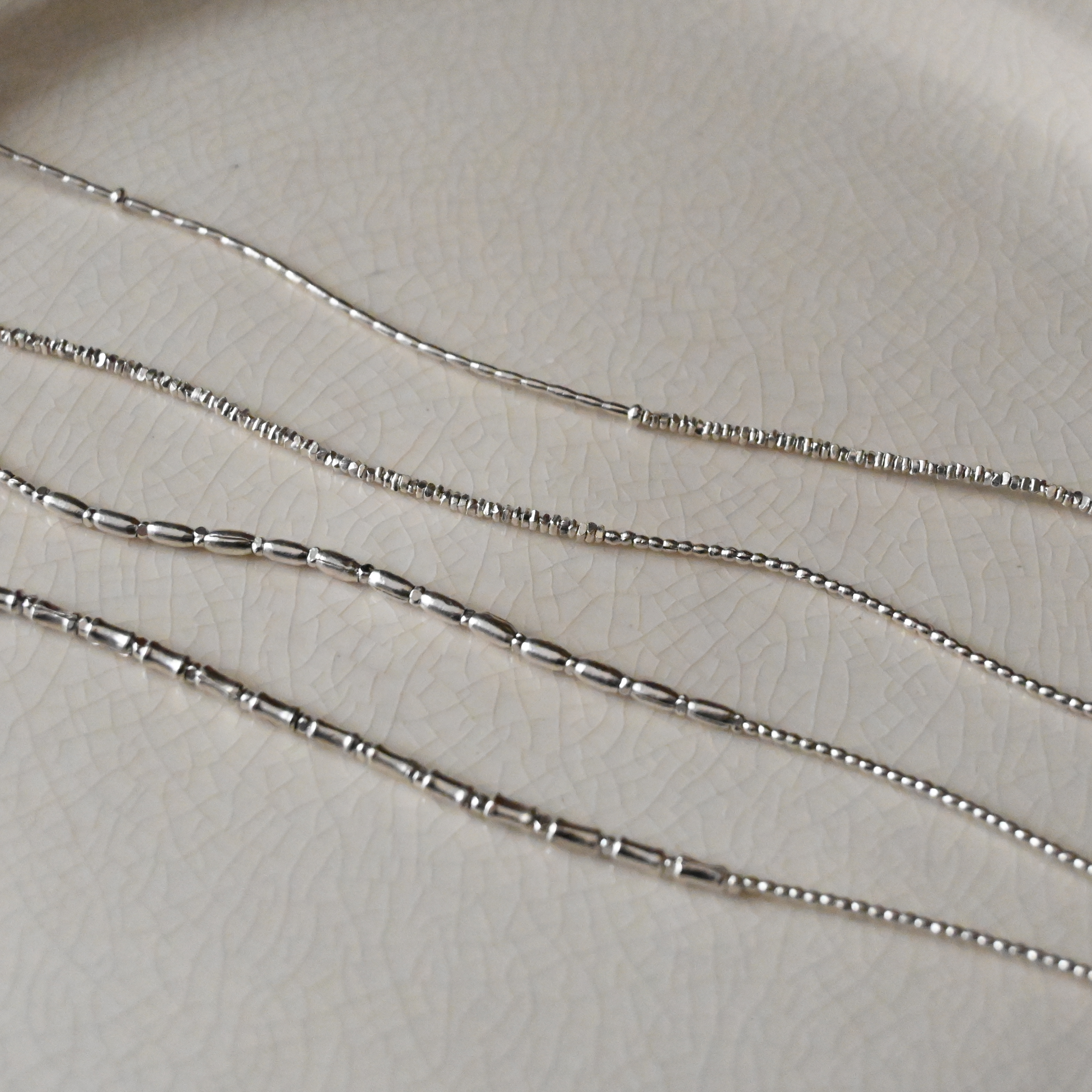そんな手間暇かけて作られた小さなビーズをシンプルなネックレスに。