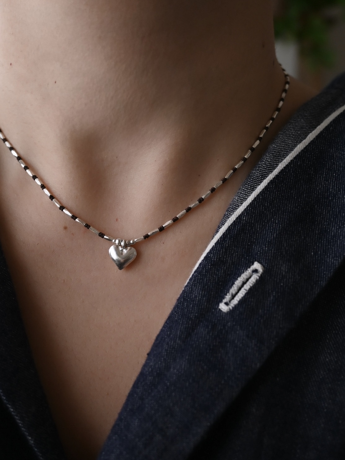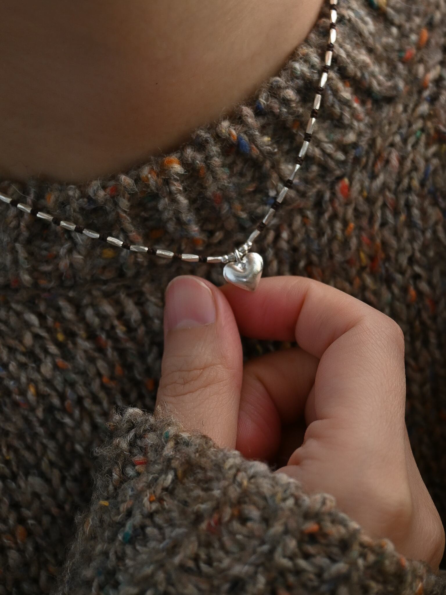 直径1cmの小ぶりなハートモチーフを使用しているので、つけ慣れていない方にも気負わず着用いただけます。Tシャツやワンピース、冬はニットとあわせて。