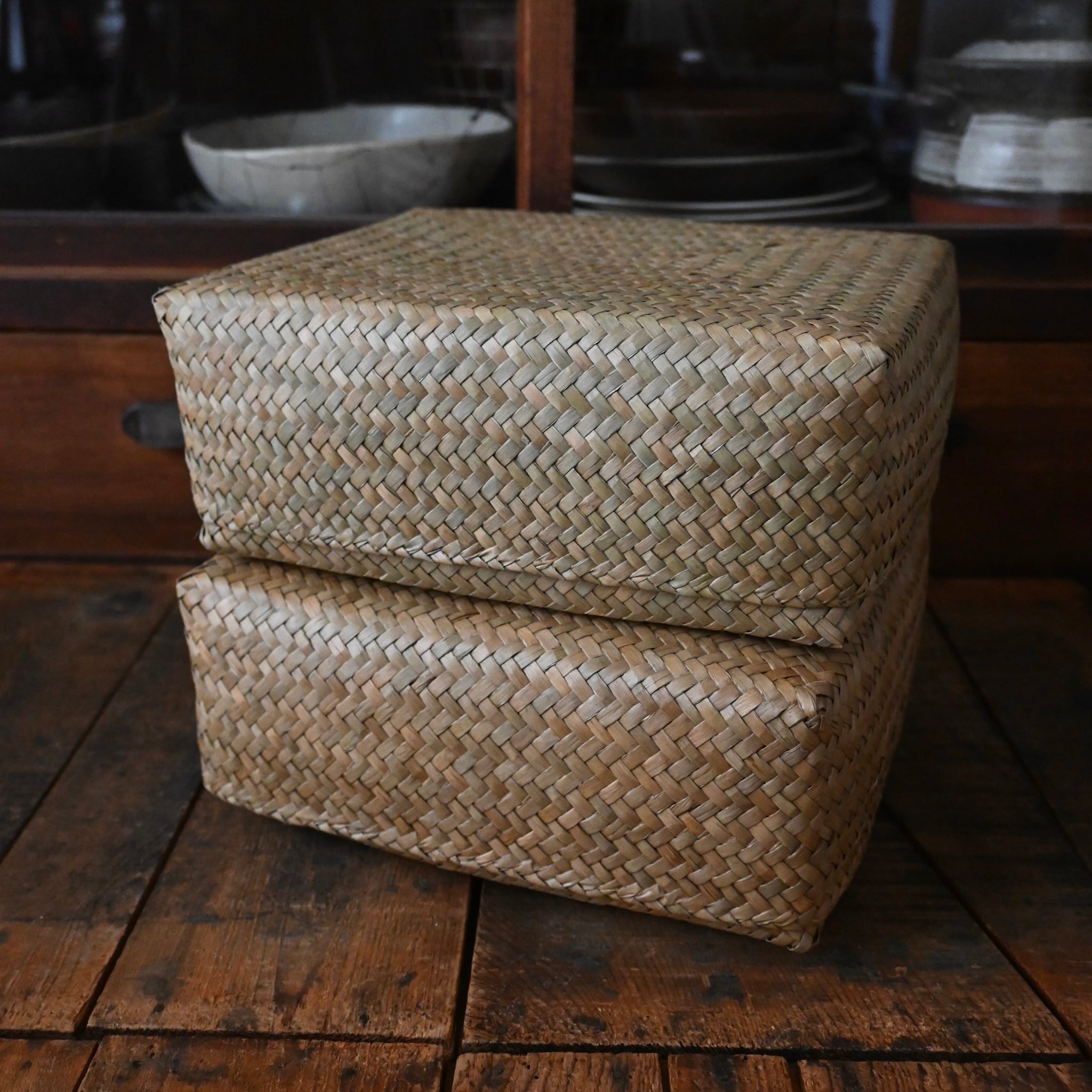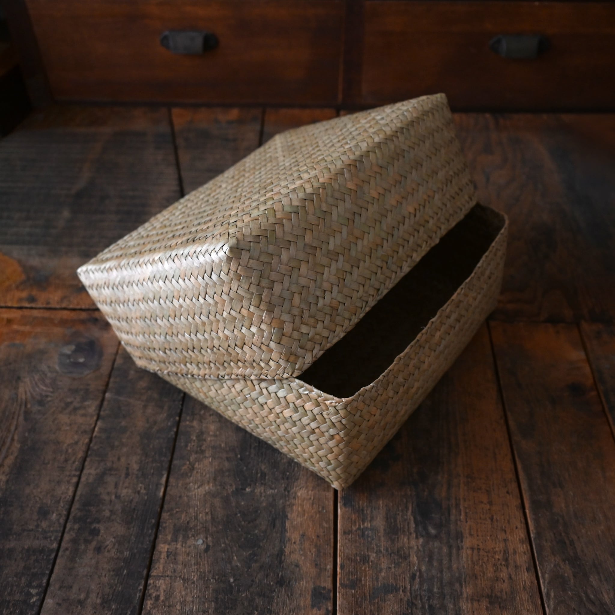 ひとつひとつ丁寧に編み上げられた手仕事の温かみが、シンプルで素朴な美しさを際立たせる水草ボックス。