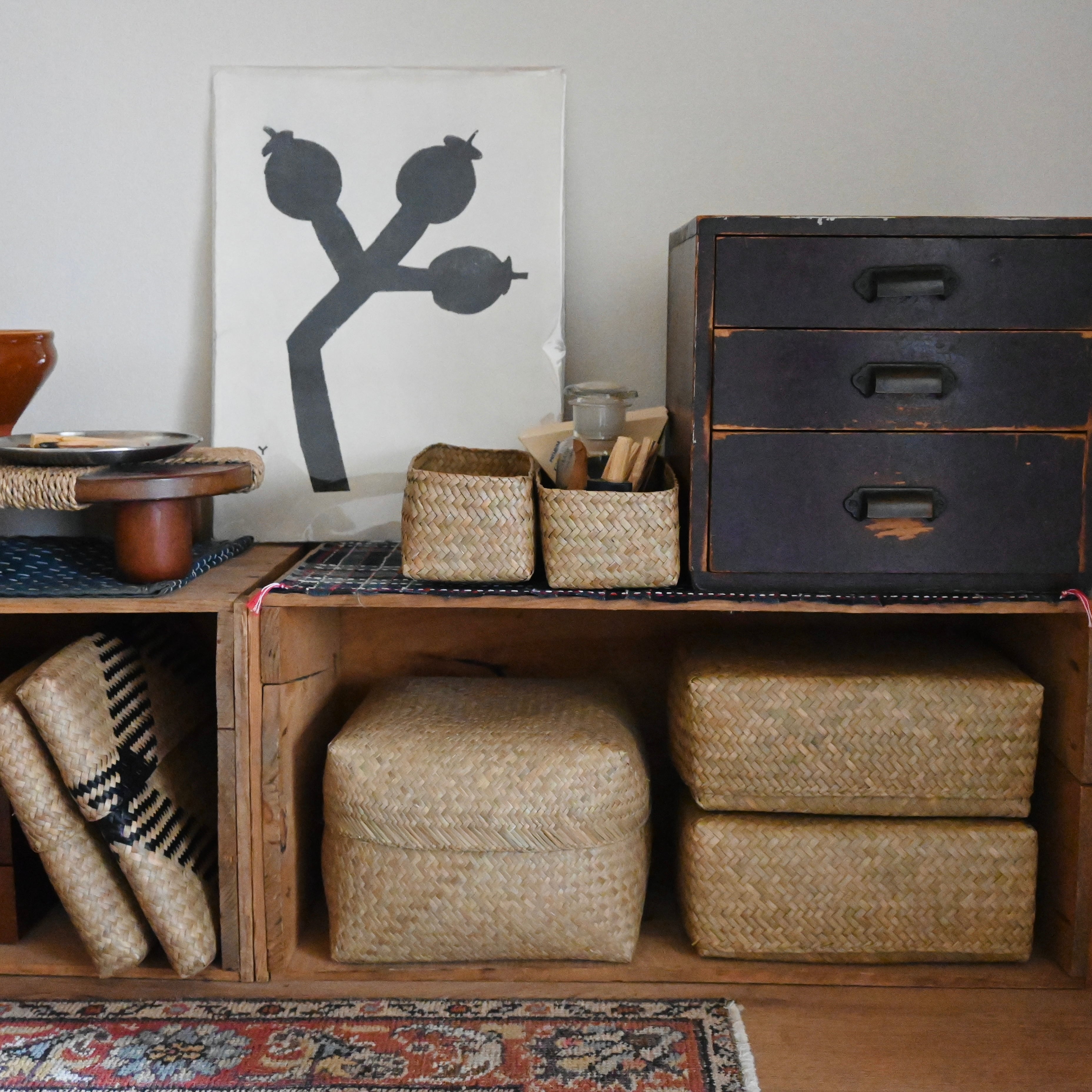南国タイの自然が育んだ「カチュー(水草)」を、編み上げたバスケットボックスに新しいサイズが仲間入りしました。無駄のない佇まいと、手仕事ならではの温もりが、日々の暮らしにやさしく寄り添います。