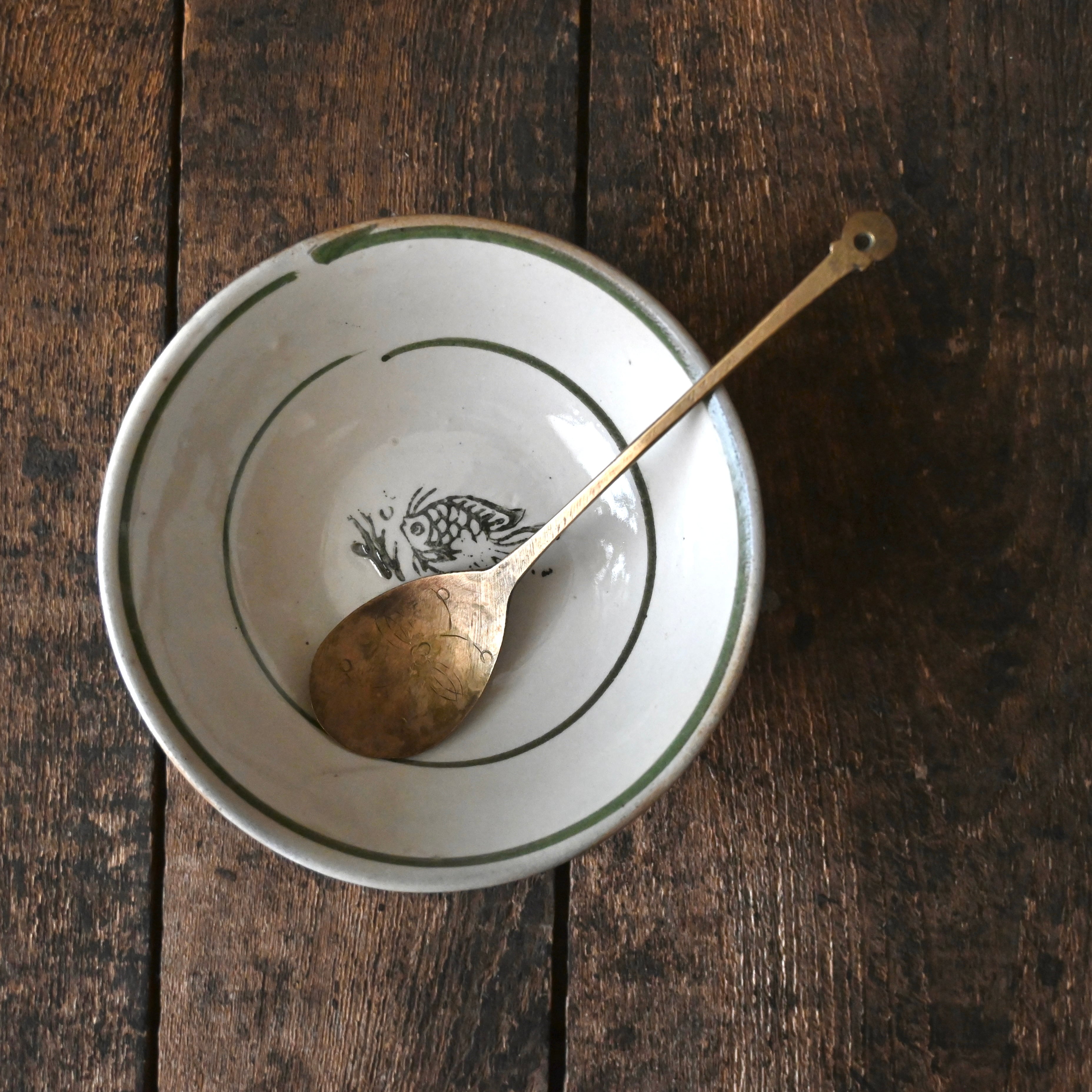 ぽってりとした素朴な質感とクリーム色の釉薬・手描きの絵付けが特徴で、長い間、家庭や食堂の食器として親しまれてきました。その背景には、ベトナムの独自の陶磁文化とともに、中国やフランスの影響を受けた歴史があります。