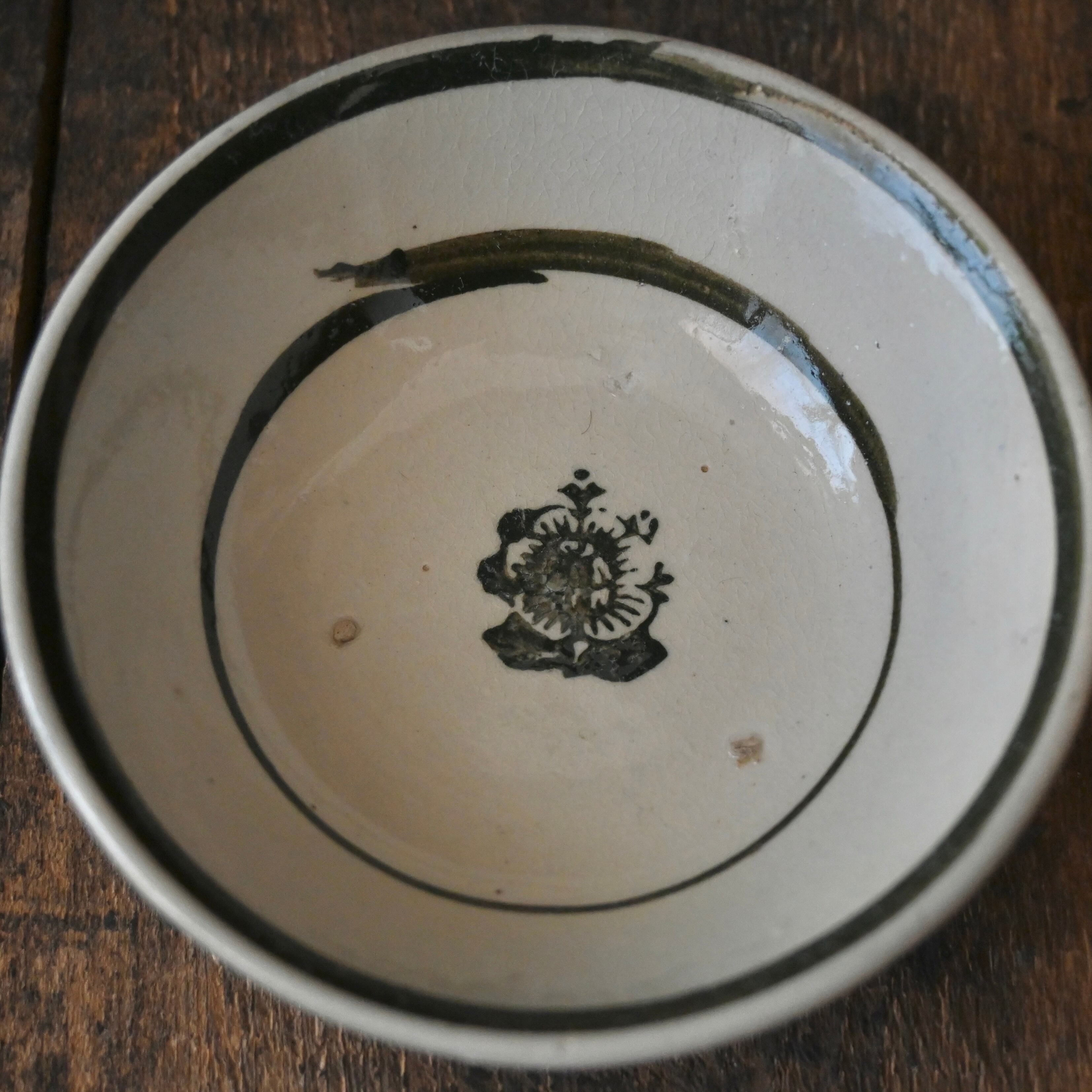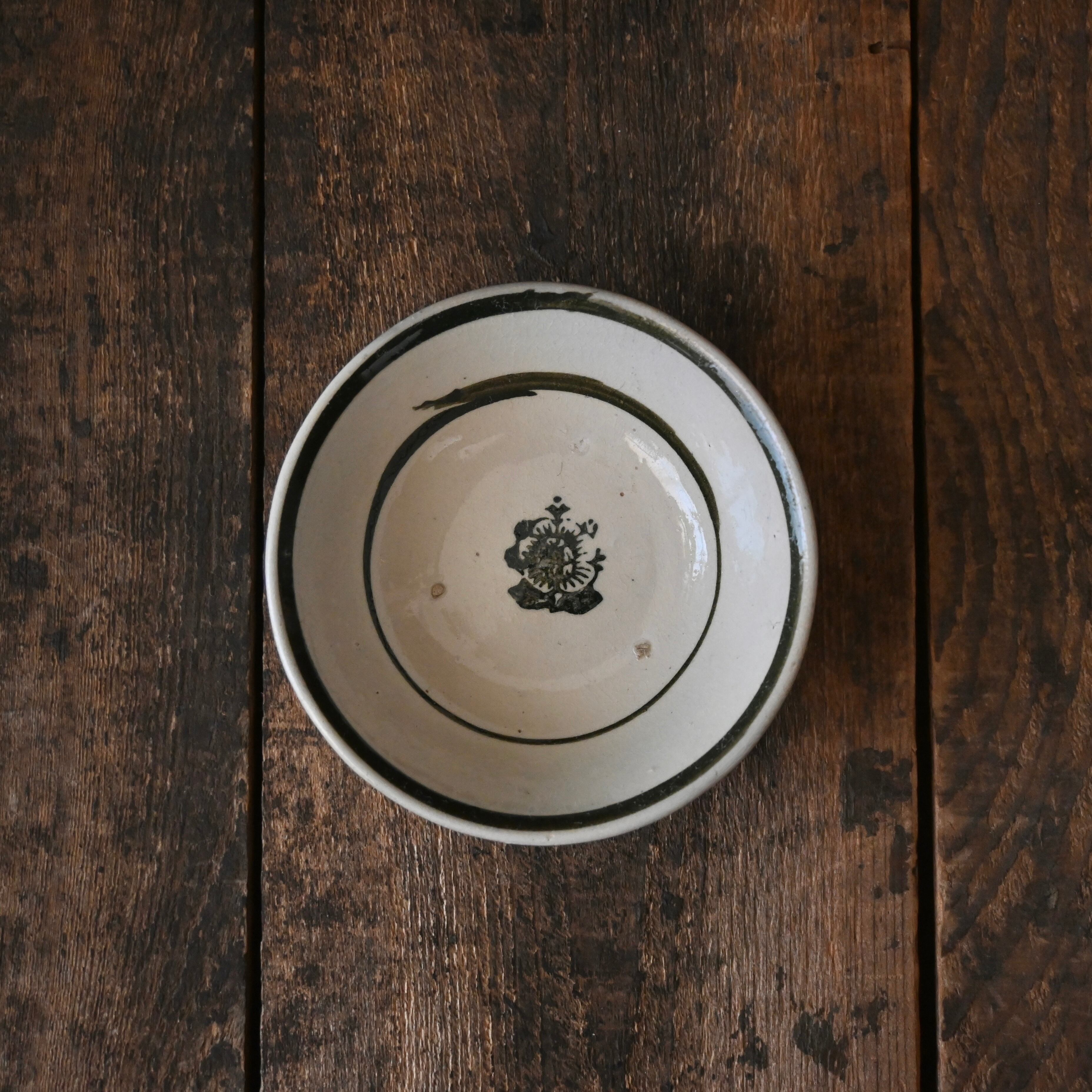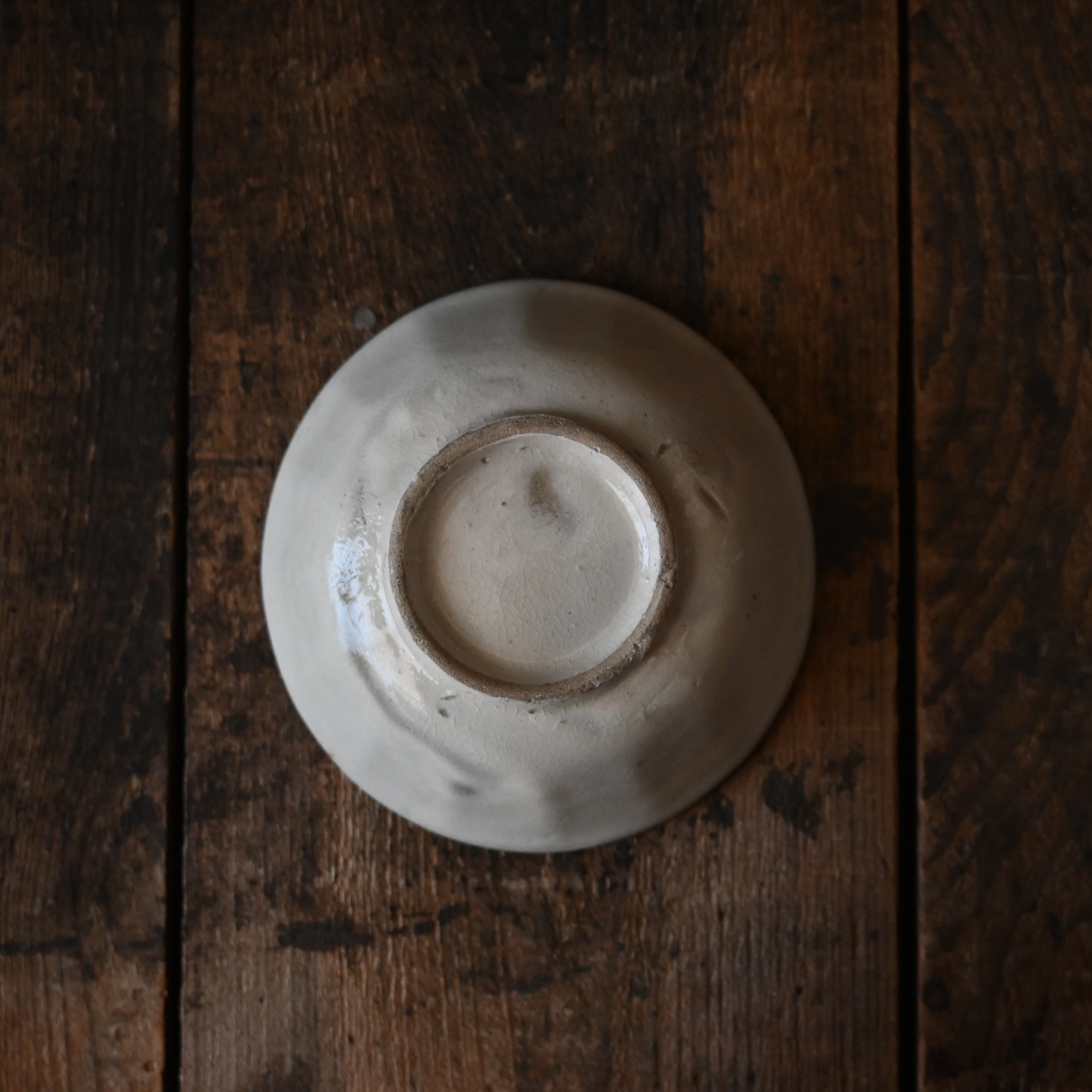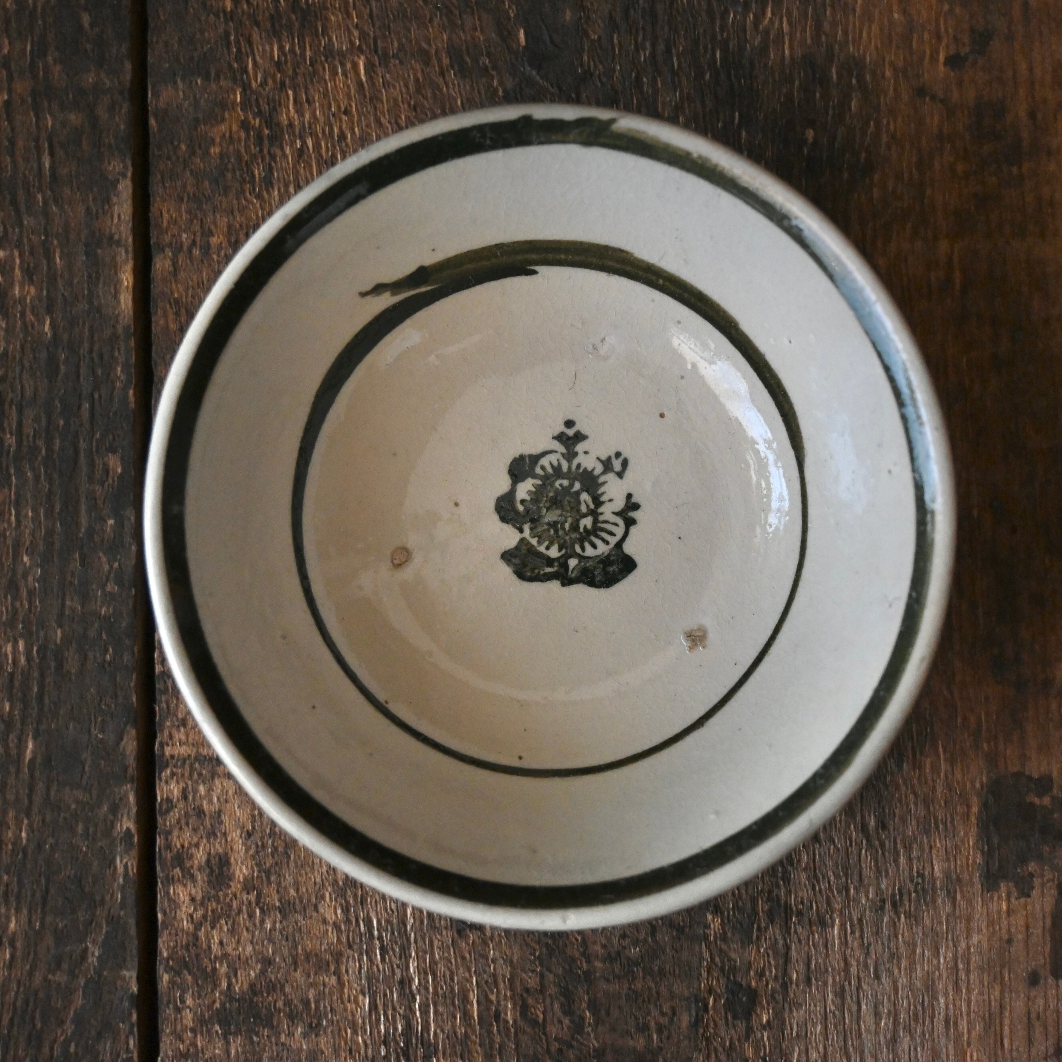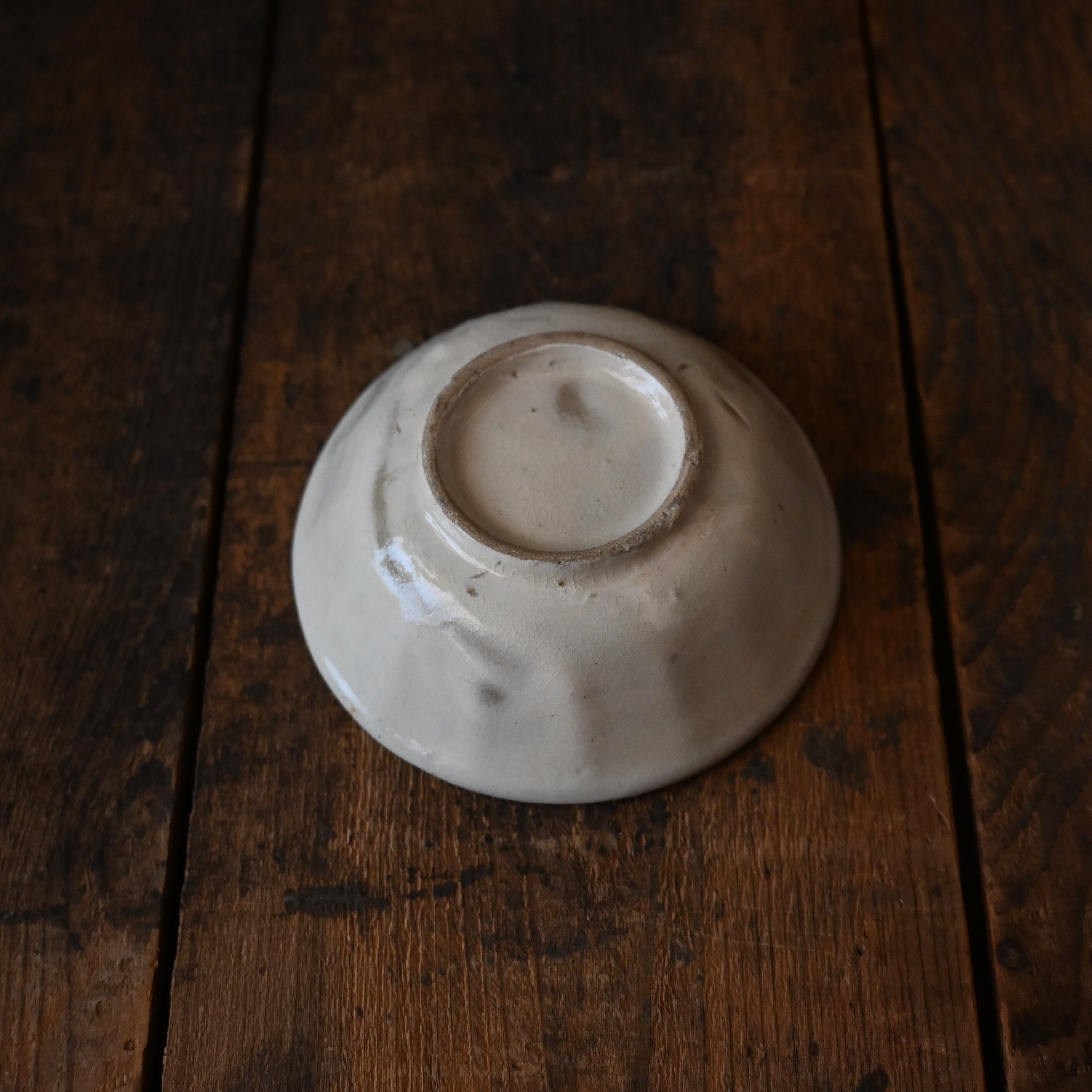 焼成時に器を重ねて焼くため、高台(底の部分)や縁に、小さな突起や釉薬の剥がれた跡が残ることがあります。これは当時の製法ならではの特徴であり、ひとつひとつ異なる個性を持つ証ともいえます。