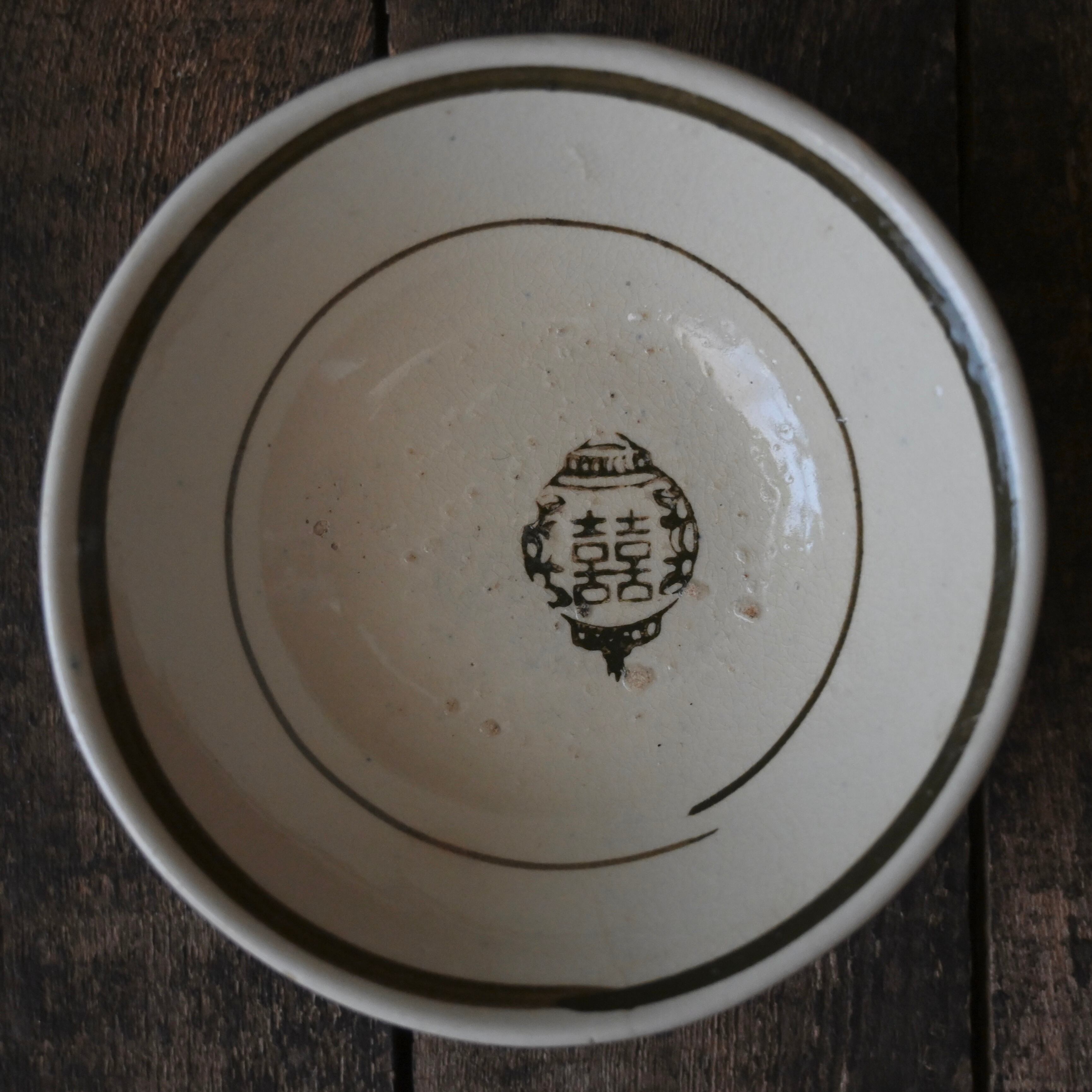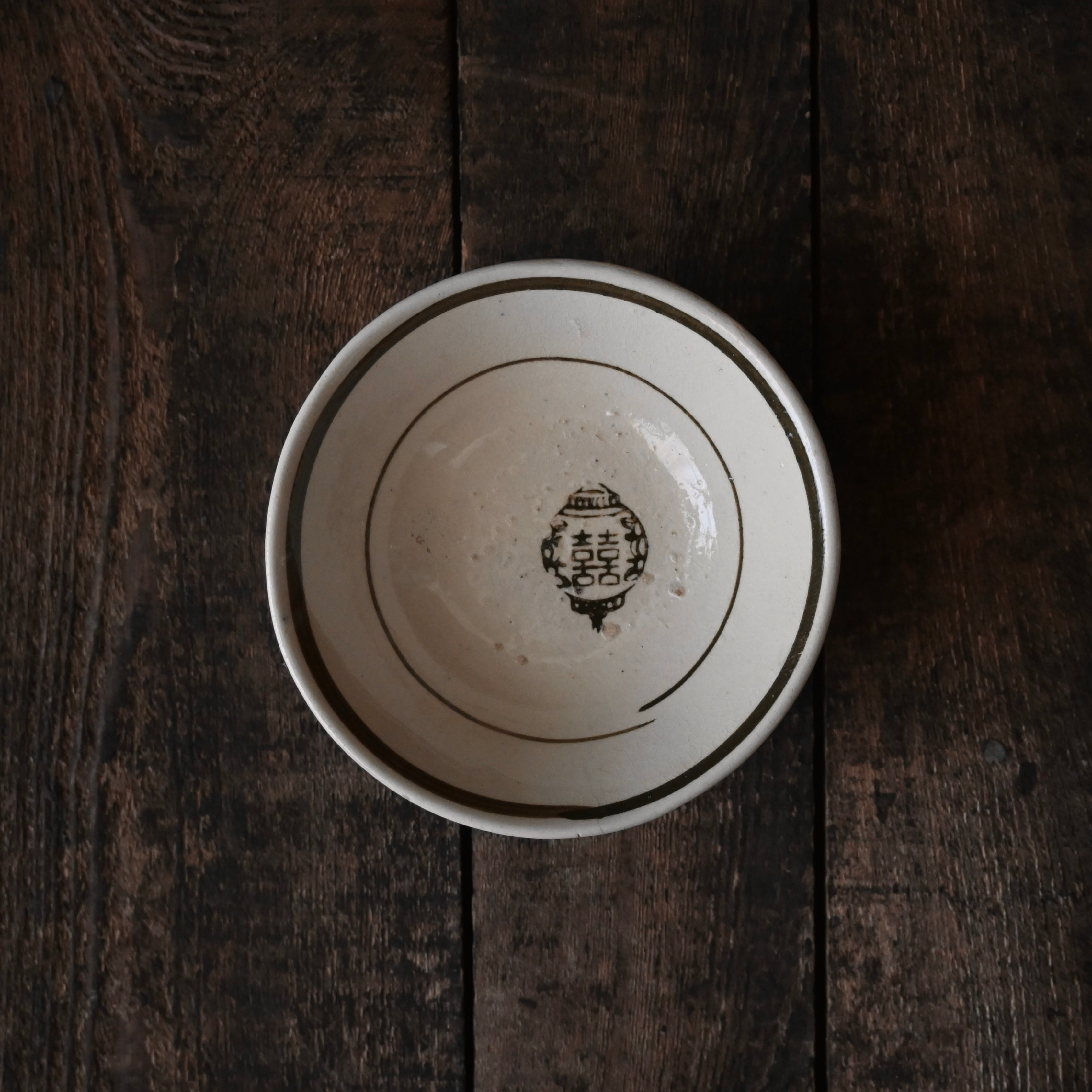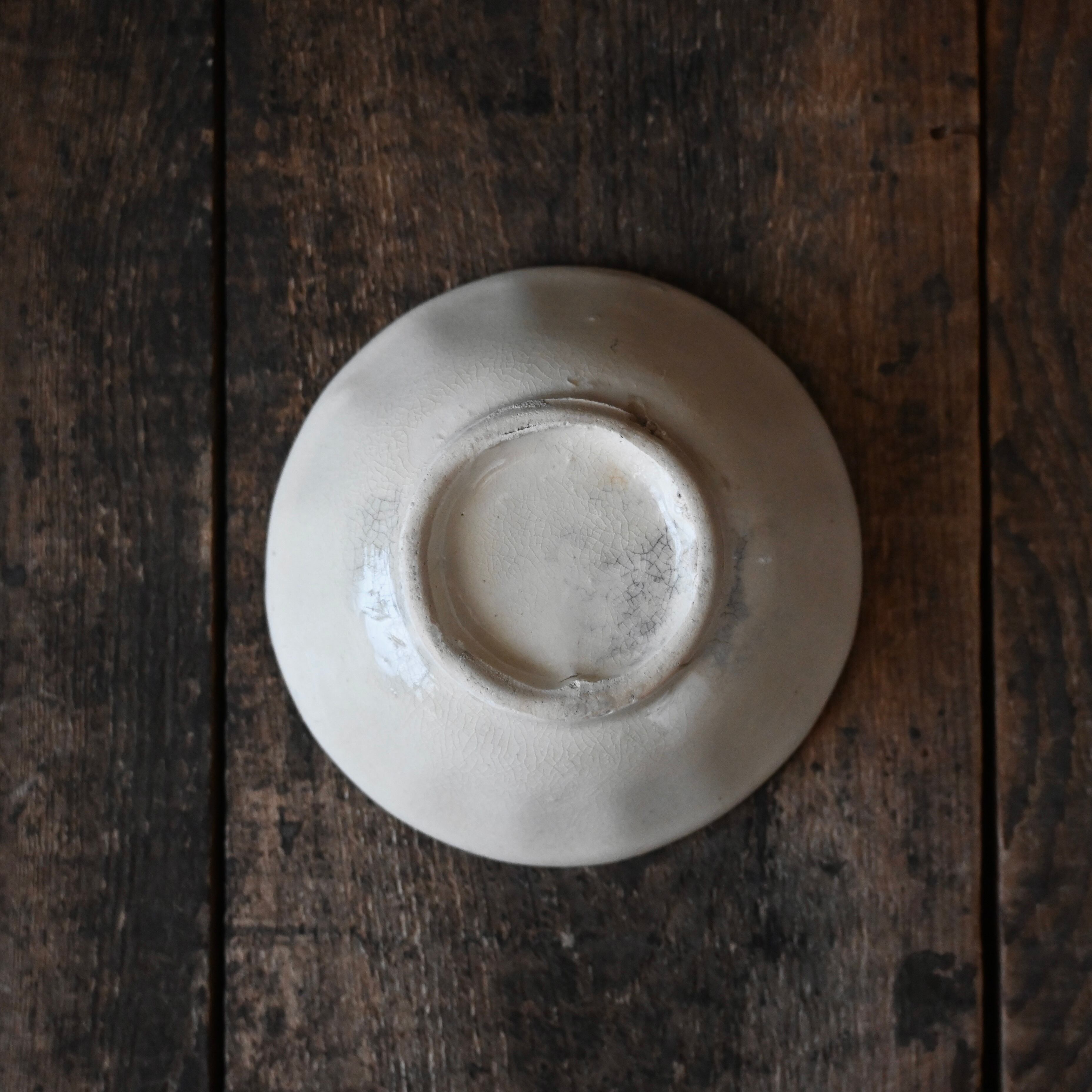 焼成時に器を重ねて焼くため、高台(底の部分)や縁に、小さな突起や釉薬の剥がれた跡が残ることがあります。これは当時の製法ならではの特徴であり、ひとつひとつ異なる個性を持つ証ともいえます。