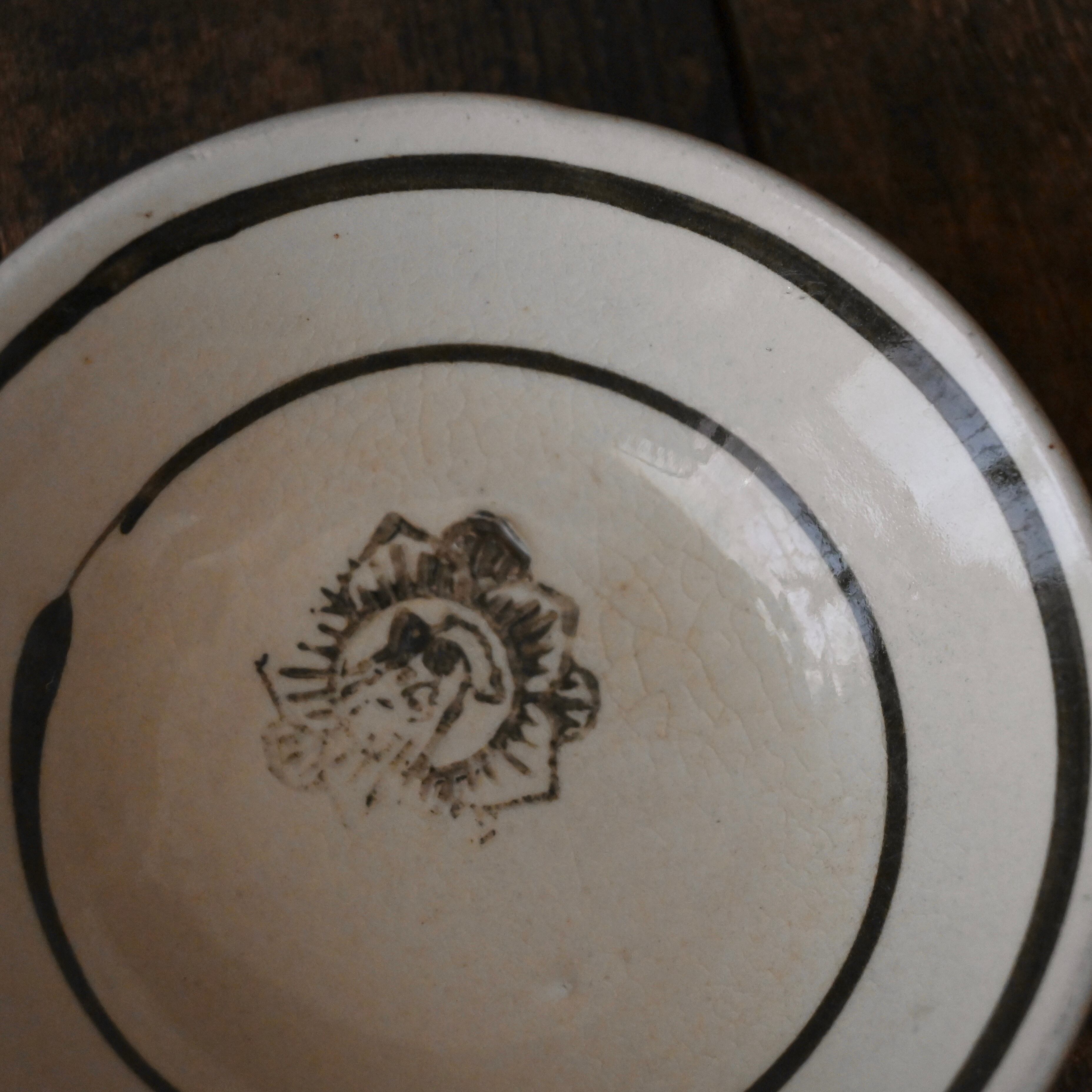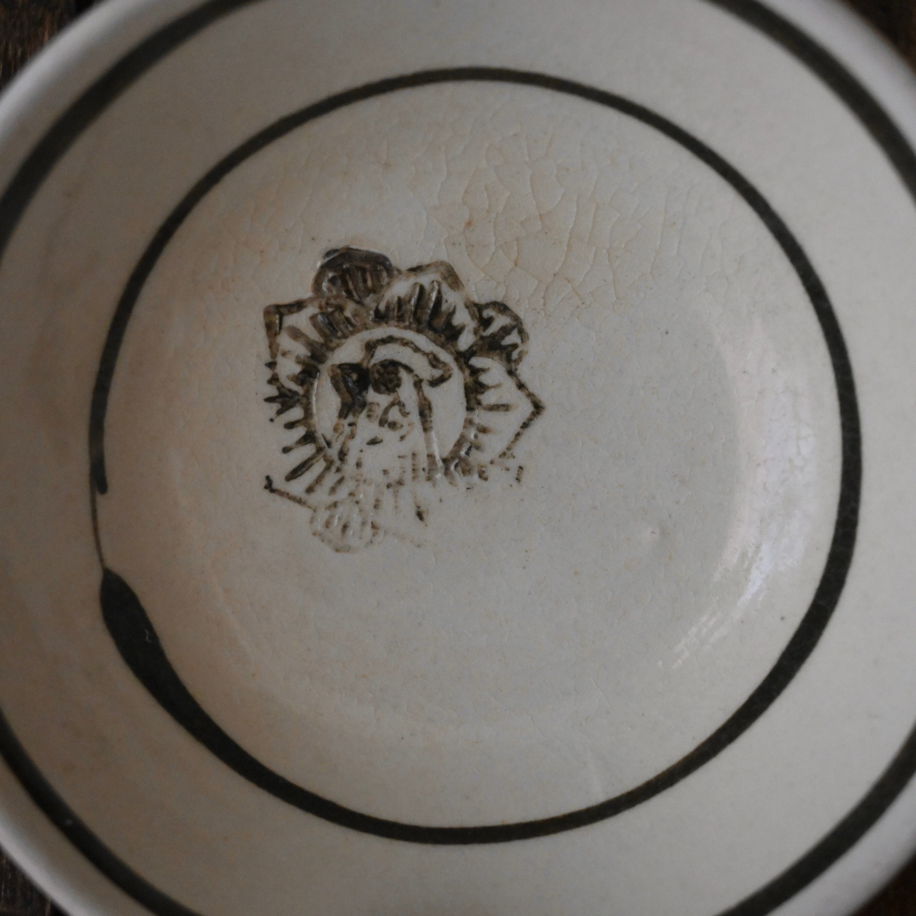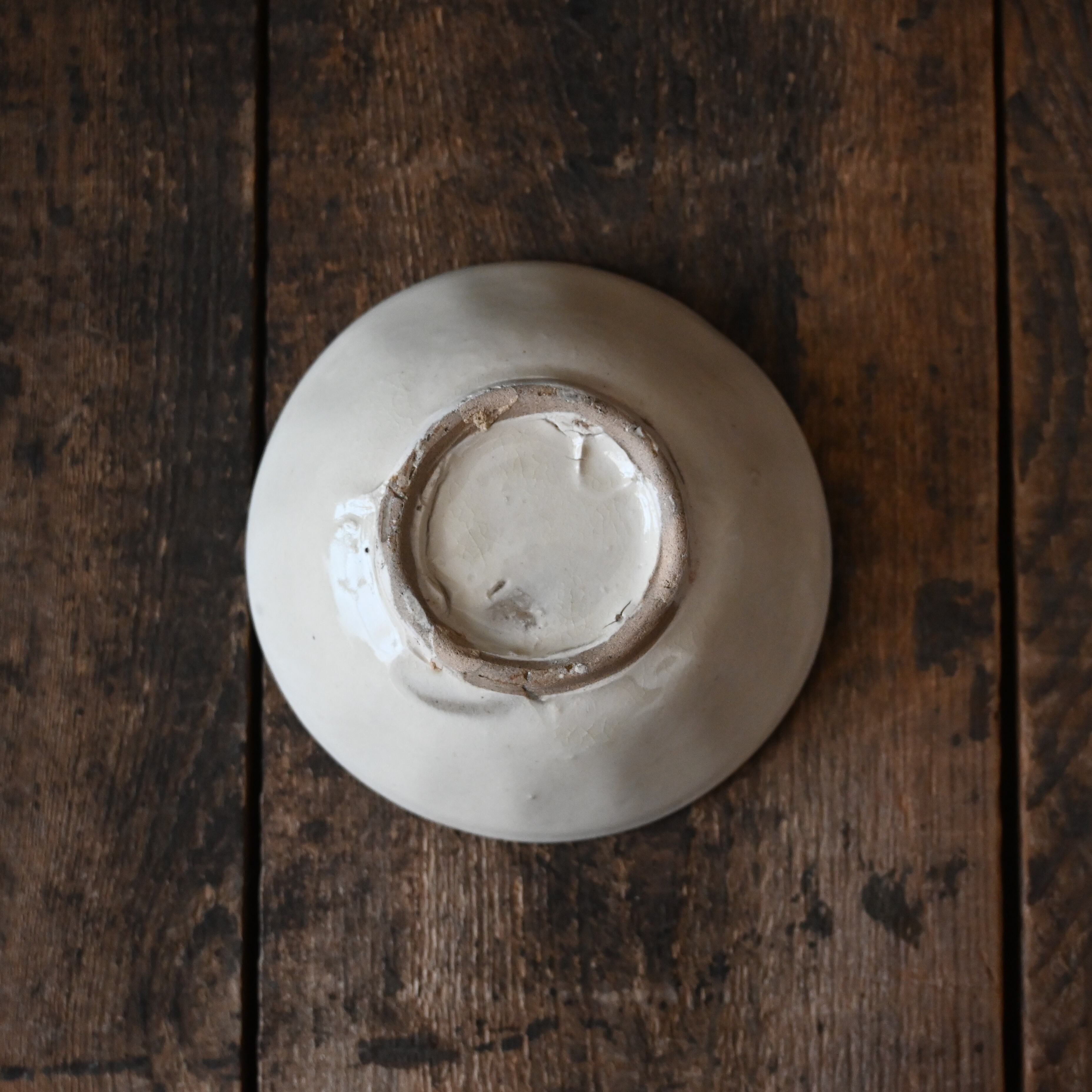 焼成時に器を重ねて焼くため、高台(底の部分)や縁に、小さな突起や釉薬の剥がれた跡が残ることがあります。これは当時の製法ならではの特徴であり、ひとつひとつ異なる個性を持つ証ともいえます。