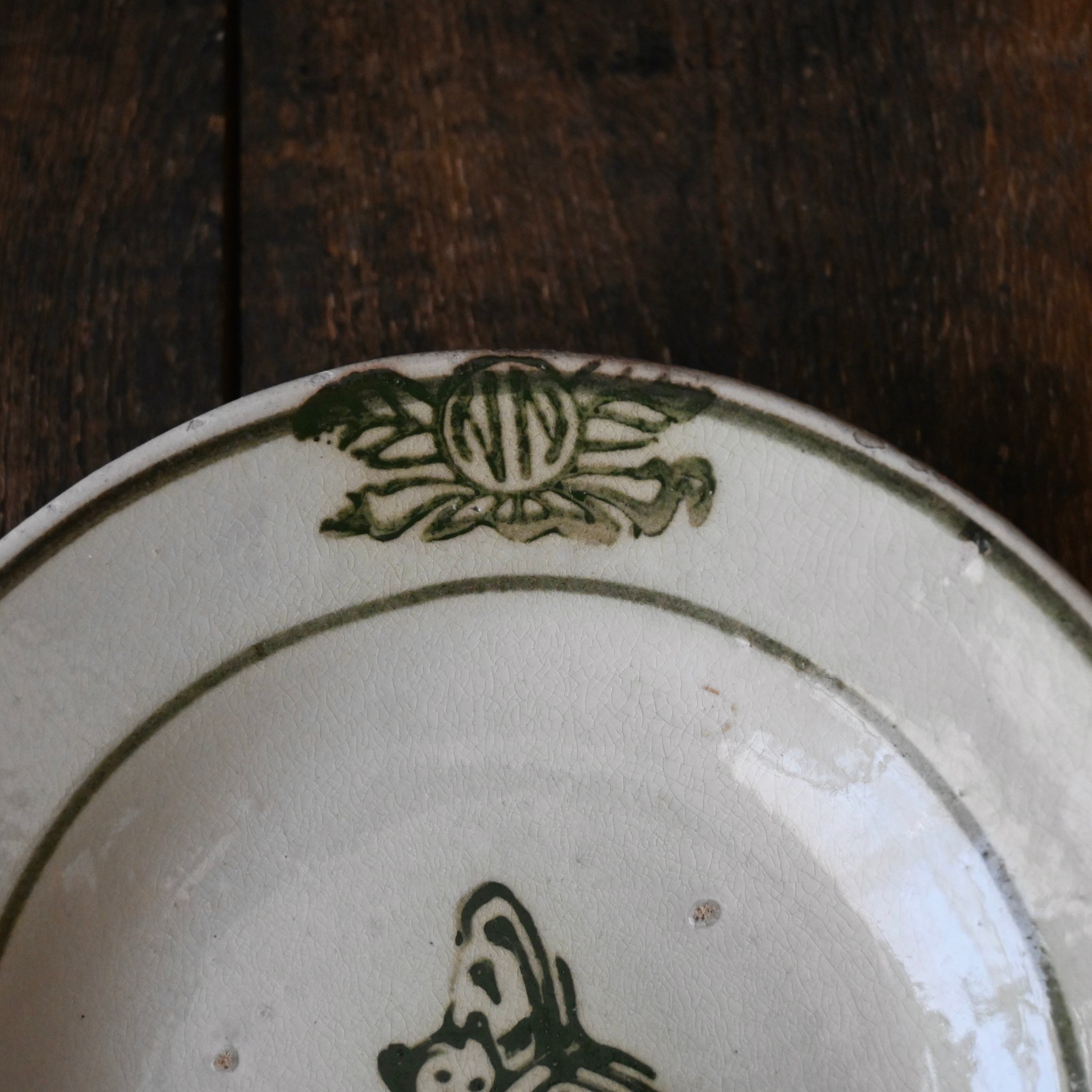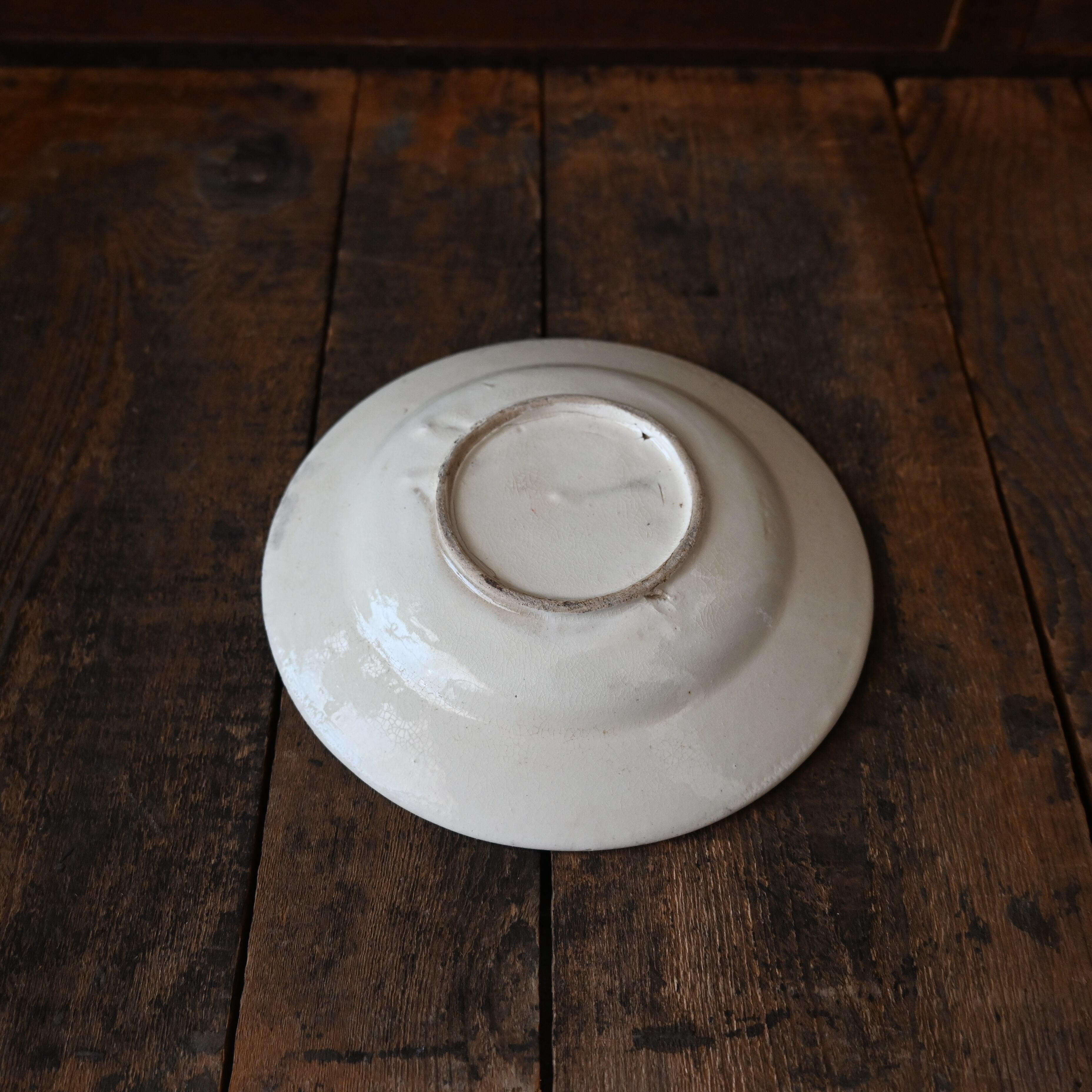 焼成時に器を重ねて焼くため、高台(底の部分)や縁に、小さな突起や釉薬の剥がれた跡が残ることがあります。これは当時の製法ならではの特徴であり、ひとつひとつ異なる個性を持つ証ともいえます。