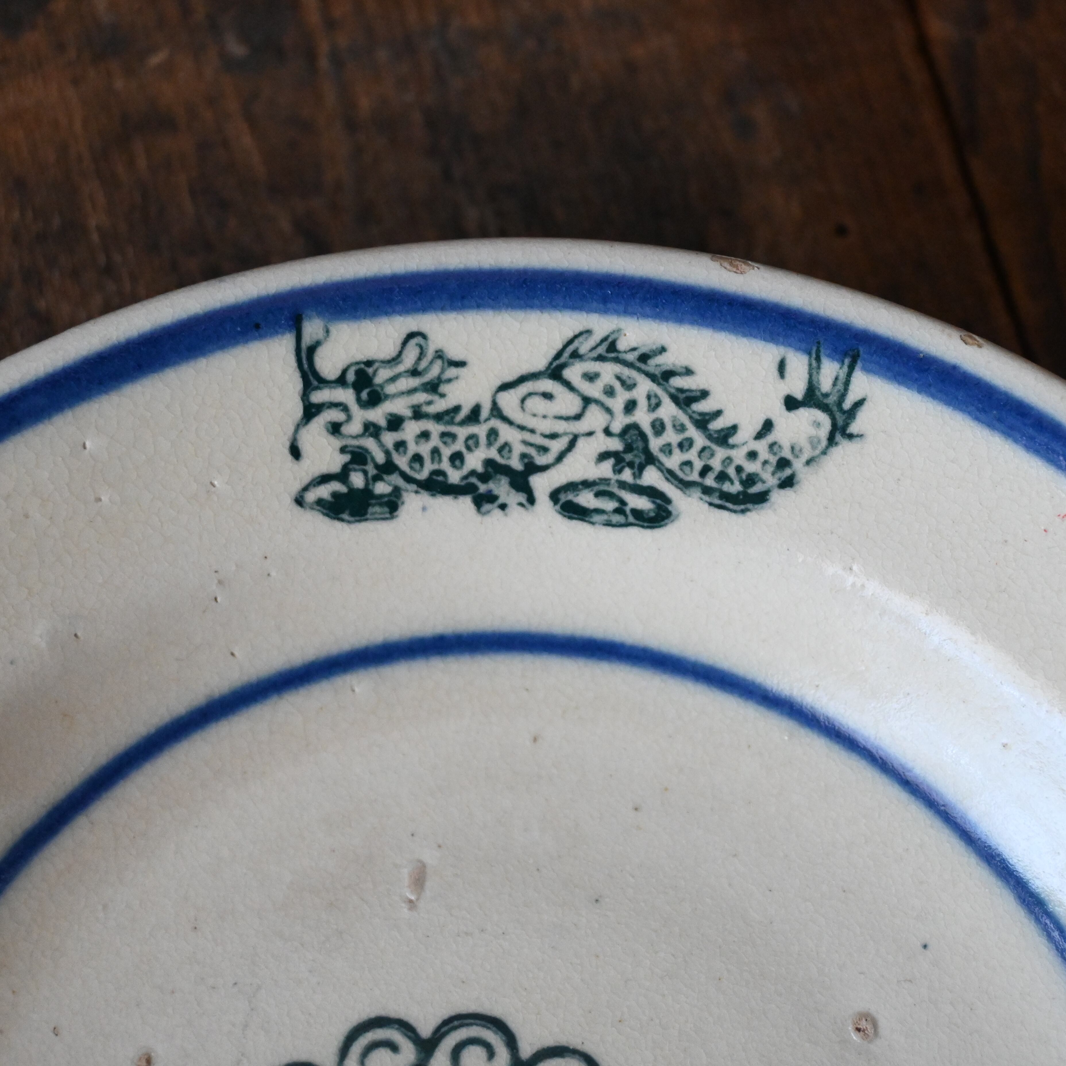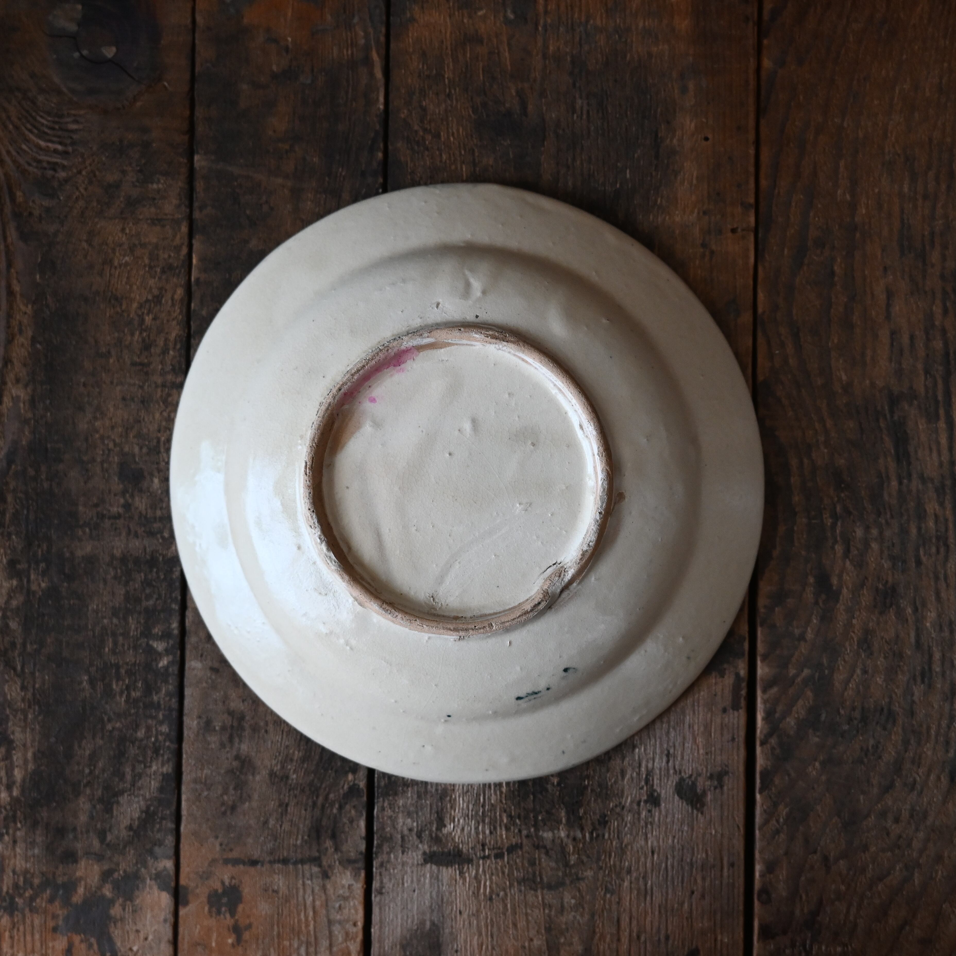 焼成時に器を重ねて焼くため、高台(底の部分)や縁に、小さな突起や釉薬の剥がれた跡が残ることがあります。これは当時の製法ならではの特徴であり、ひとつひとつ異なる個性を持つ証ともいえます。