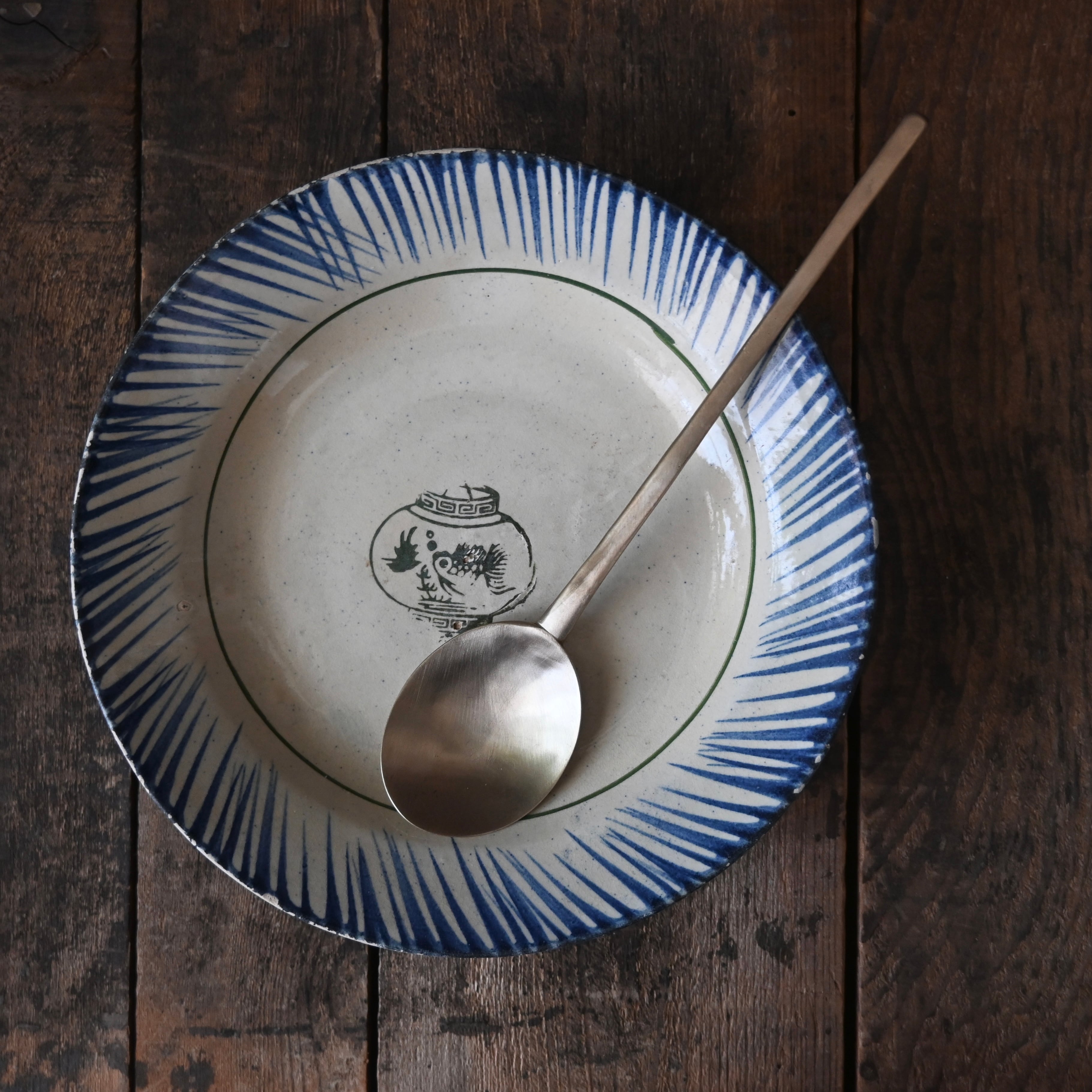 中国から伝わった染付の技法や、民間陶器の流れを汲みつつ、フランス植民地時代には、西洋のテーブルウェアのスタイルが融合。こうして、東洋と西洋の美意識が交わるなかで、ソンべ焼独自のデザインが生まれました。