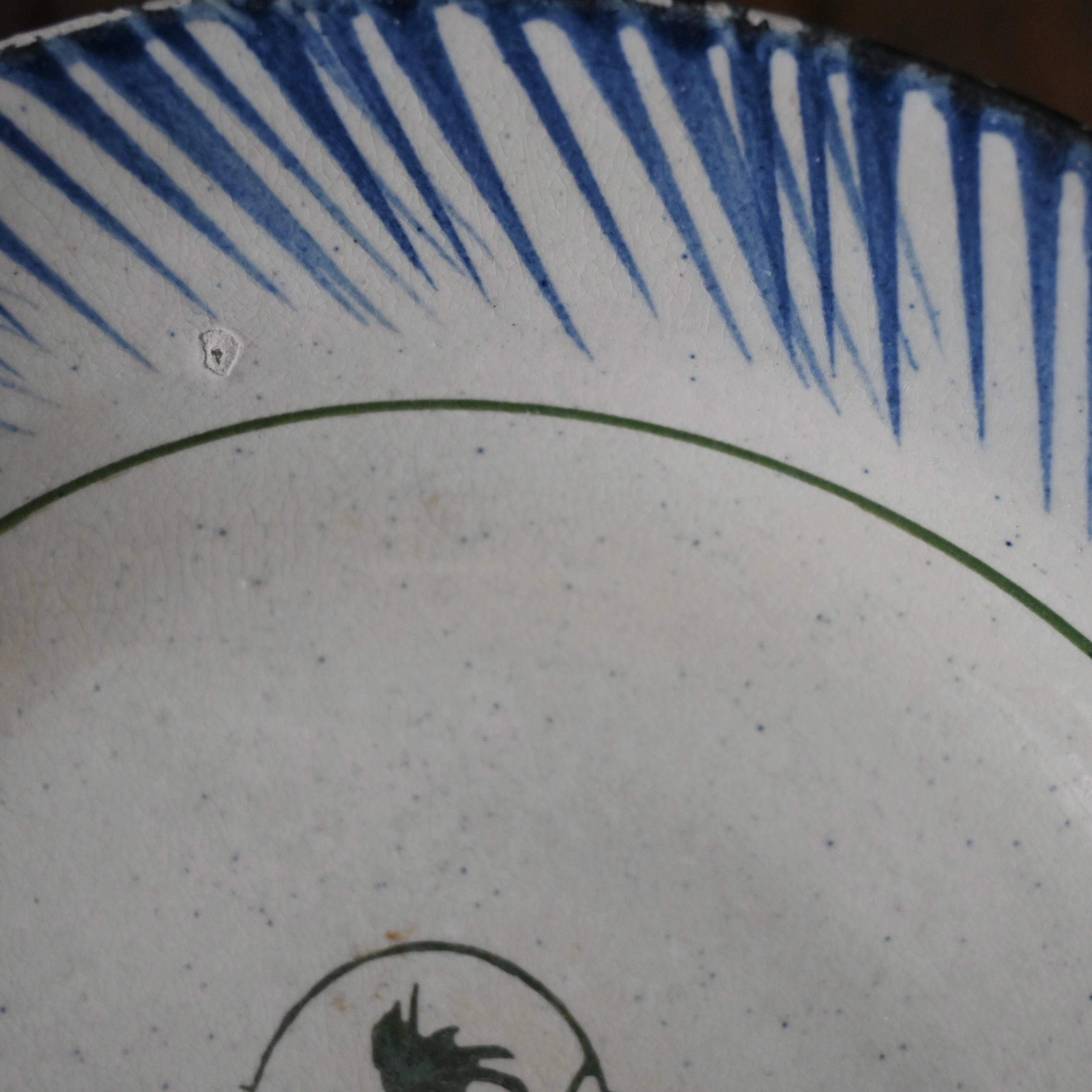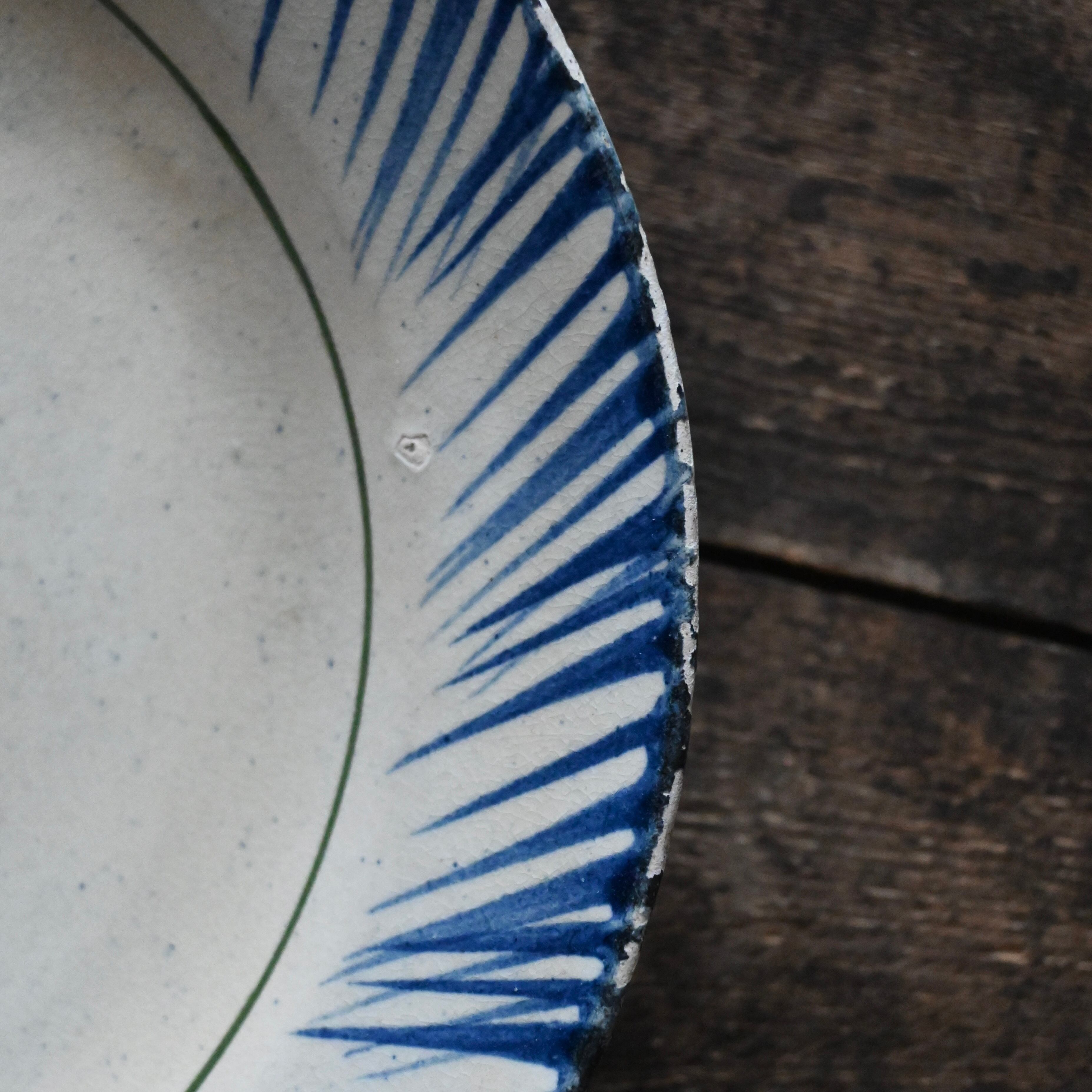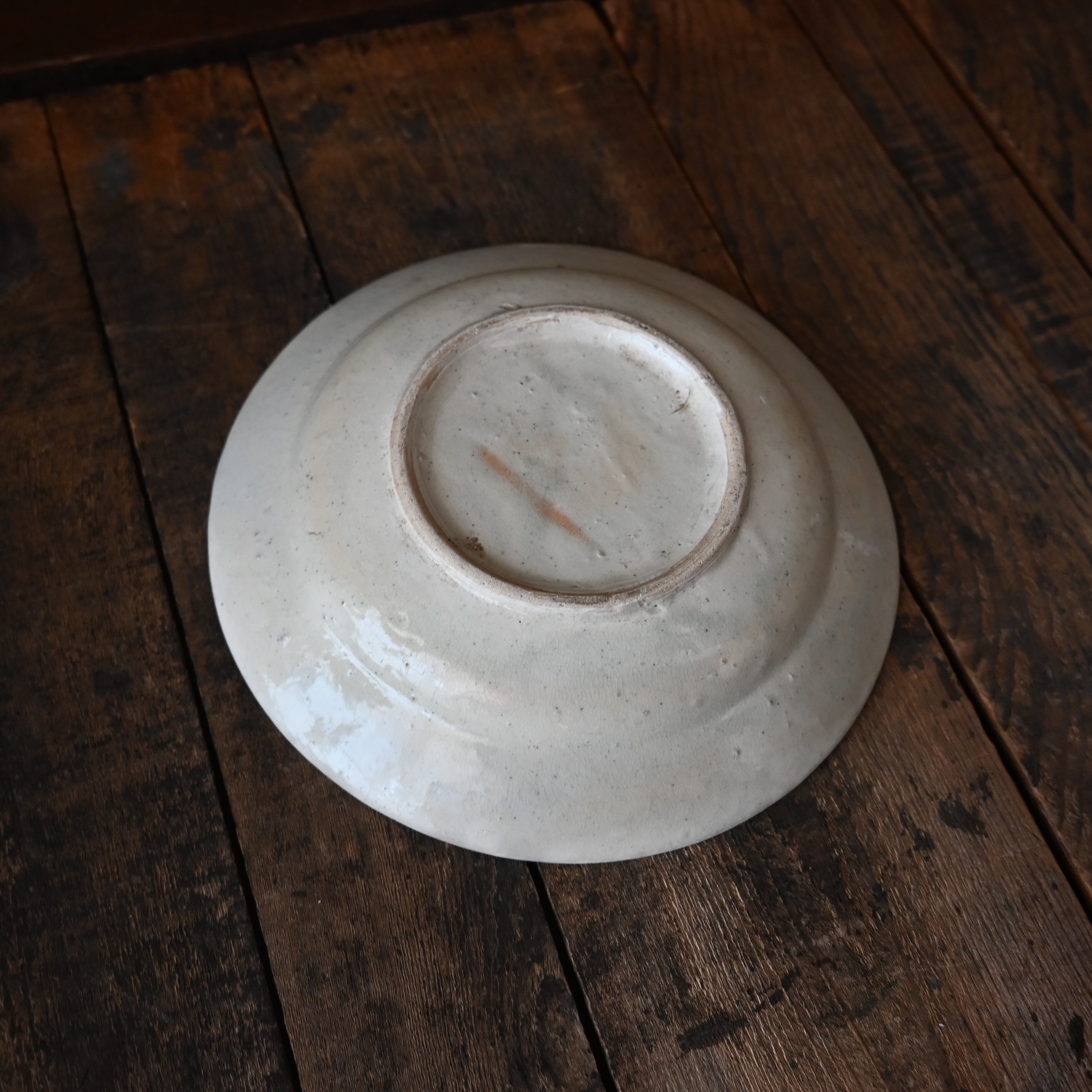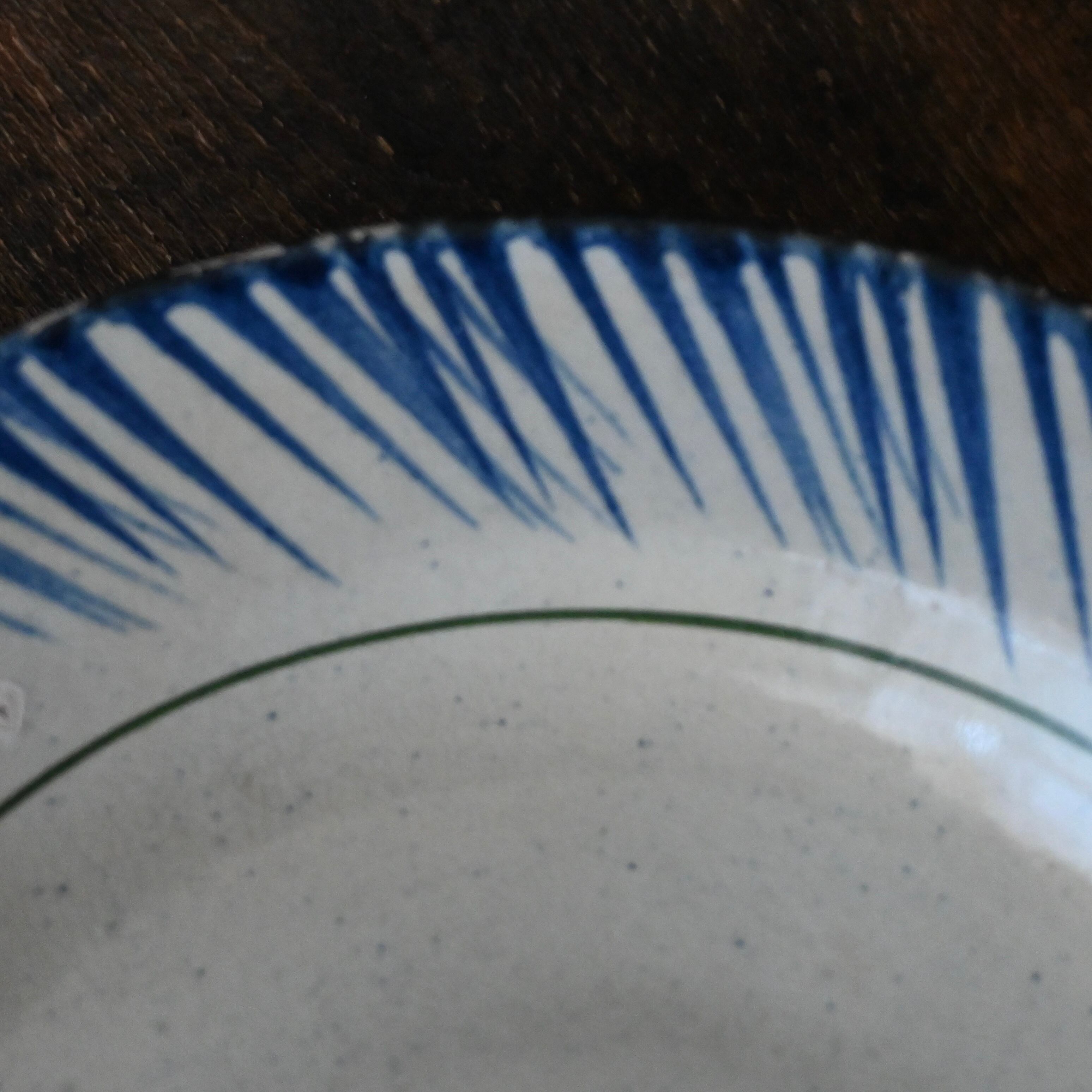 焼成時に器を重ねて焼くため、高台(底の部分)や縁に、小さな突起や釉薬の剥がれた跡が残ることがあります。これは当時の製法ならではの特徴であり、ひとつひとつ異なる個性を持つ証ともいえます。