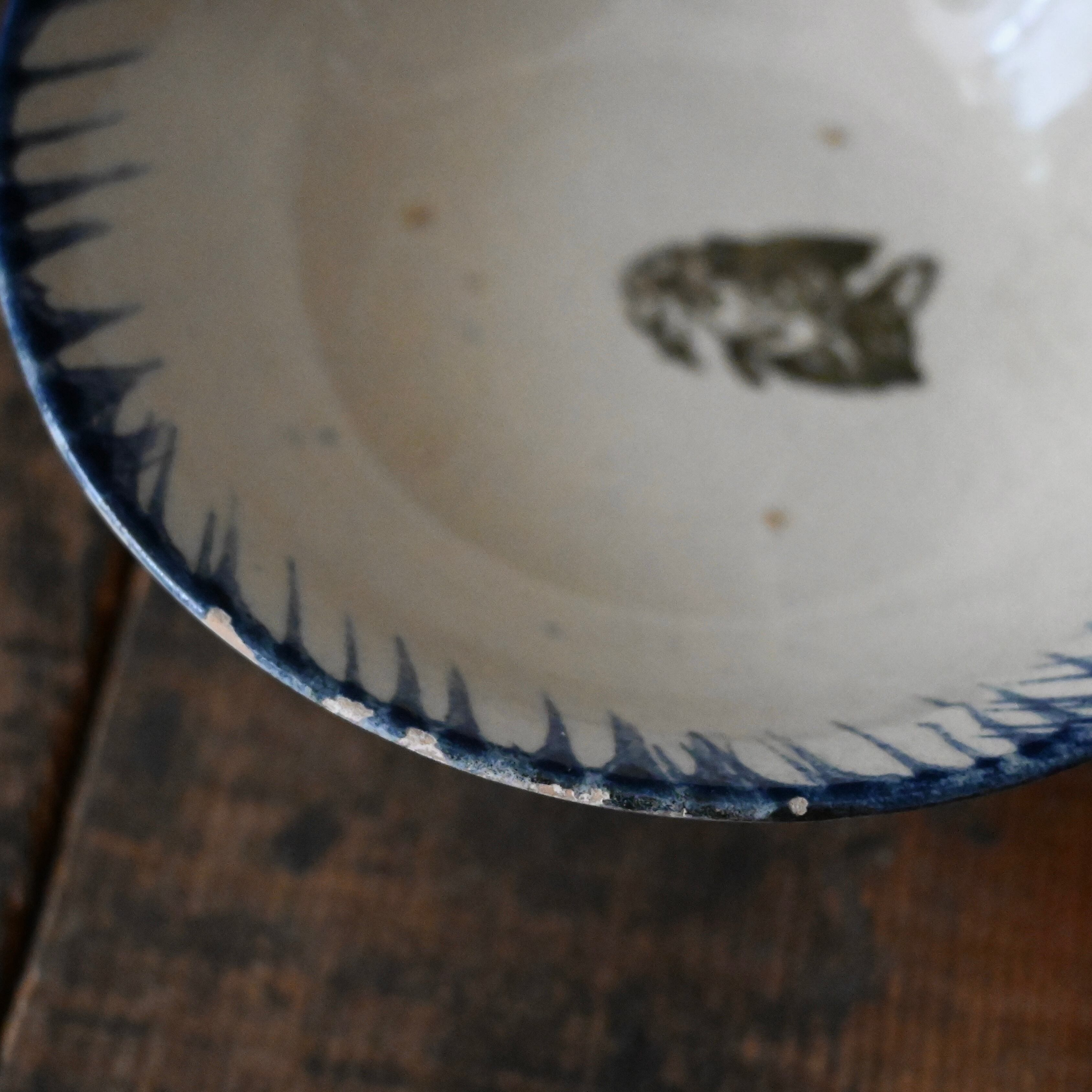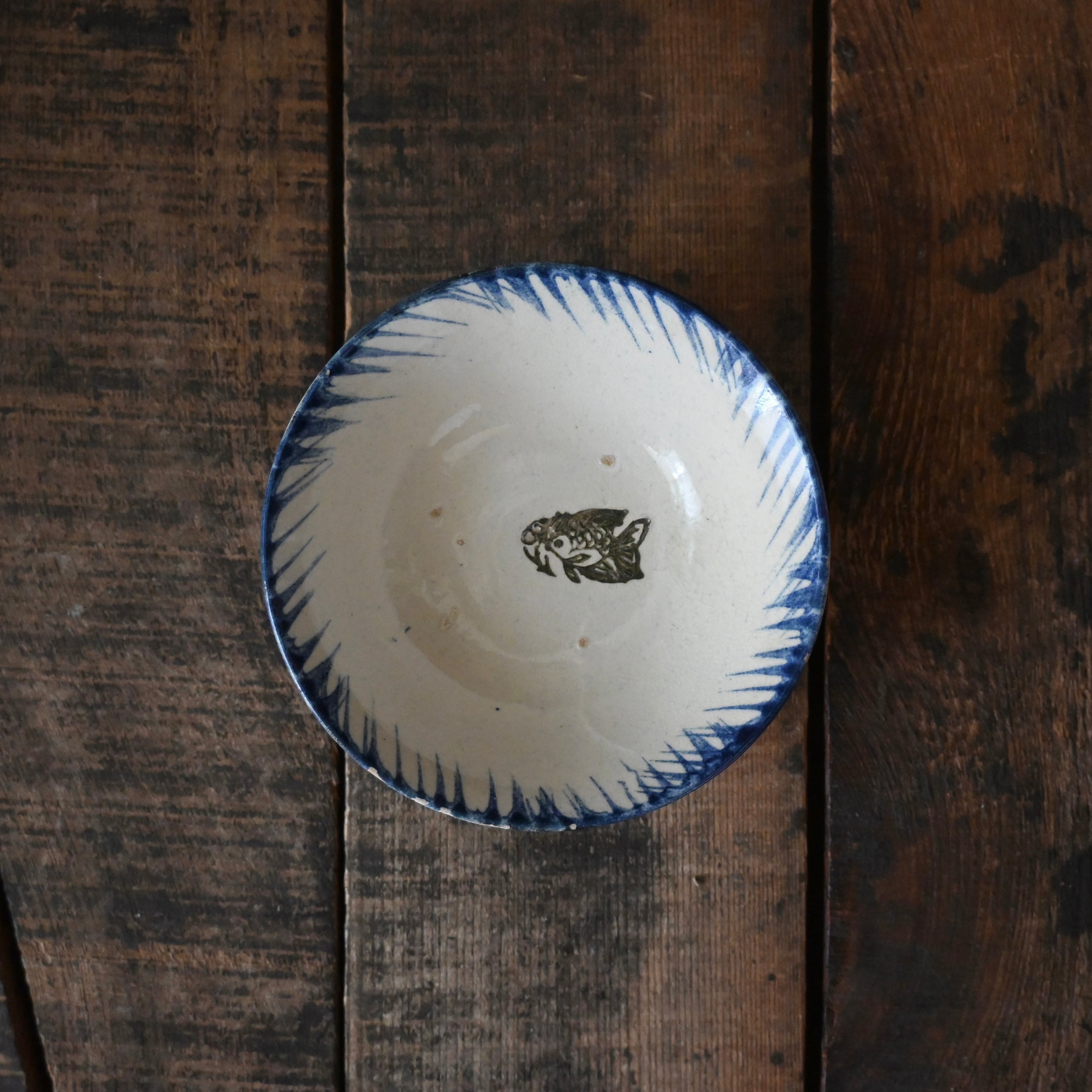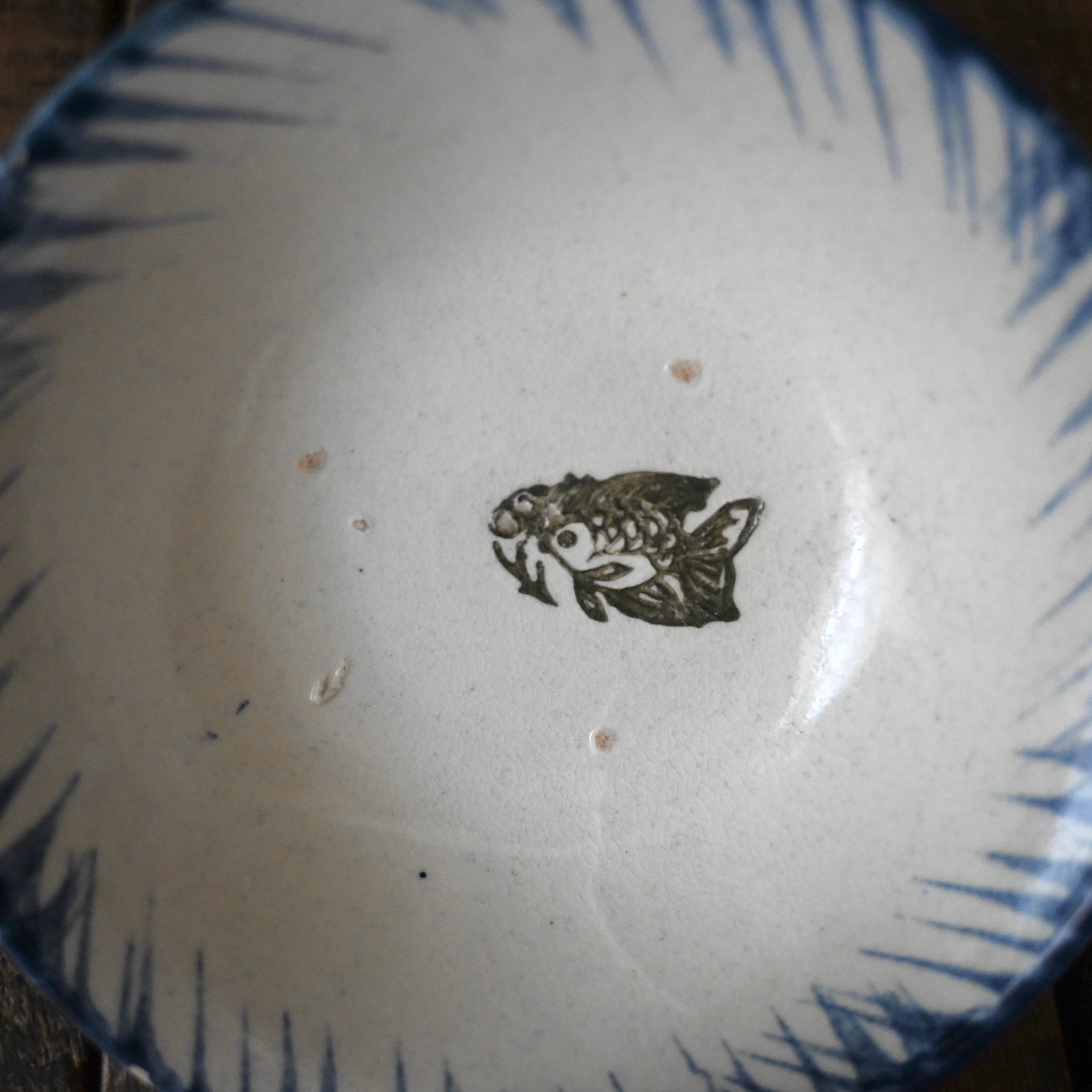 焼成時に器を重ねて焼くため、高台(底の部分)や縁に、小さな突起や釉薬の剥がれた跡が残ることがあります。これは当時の製法ならではの特徴であり、ひとつひとつ異なる個性を持つ証ともいえます。