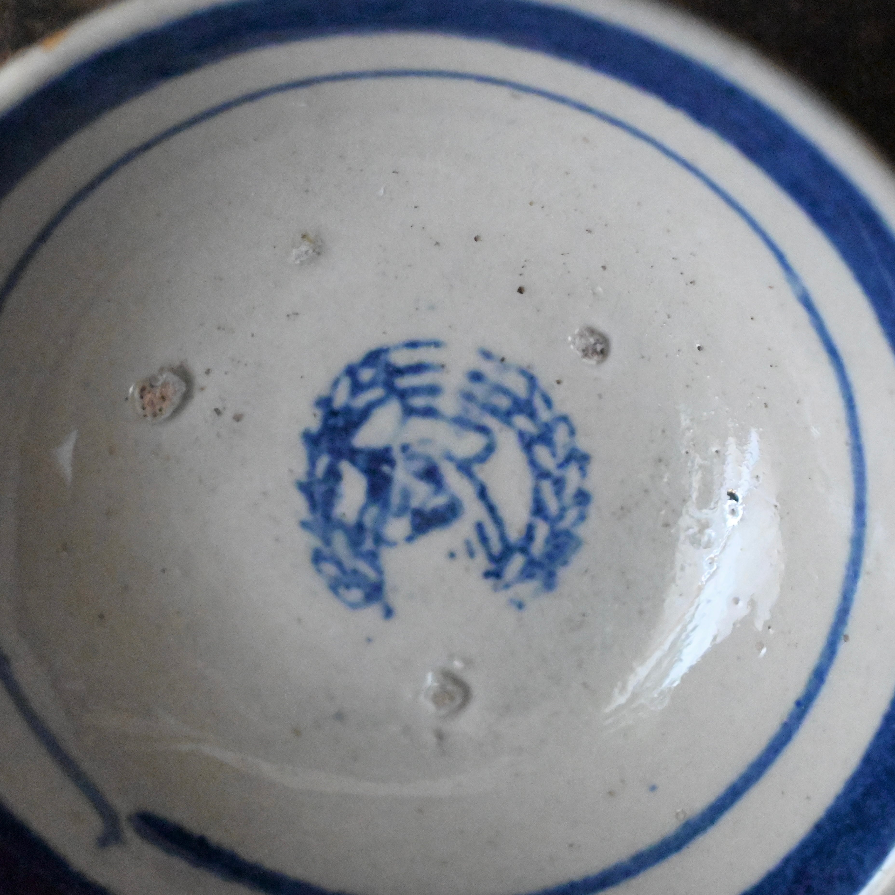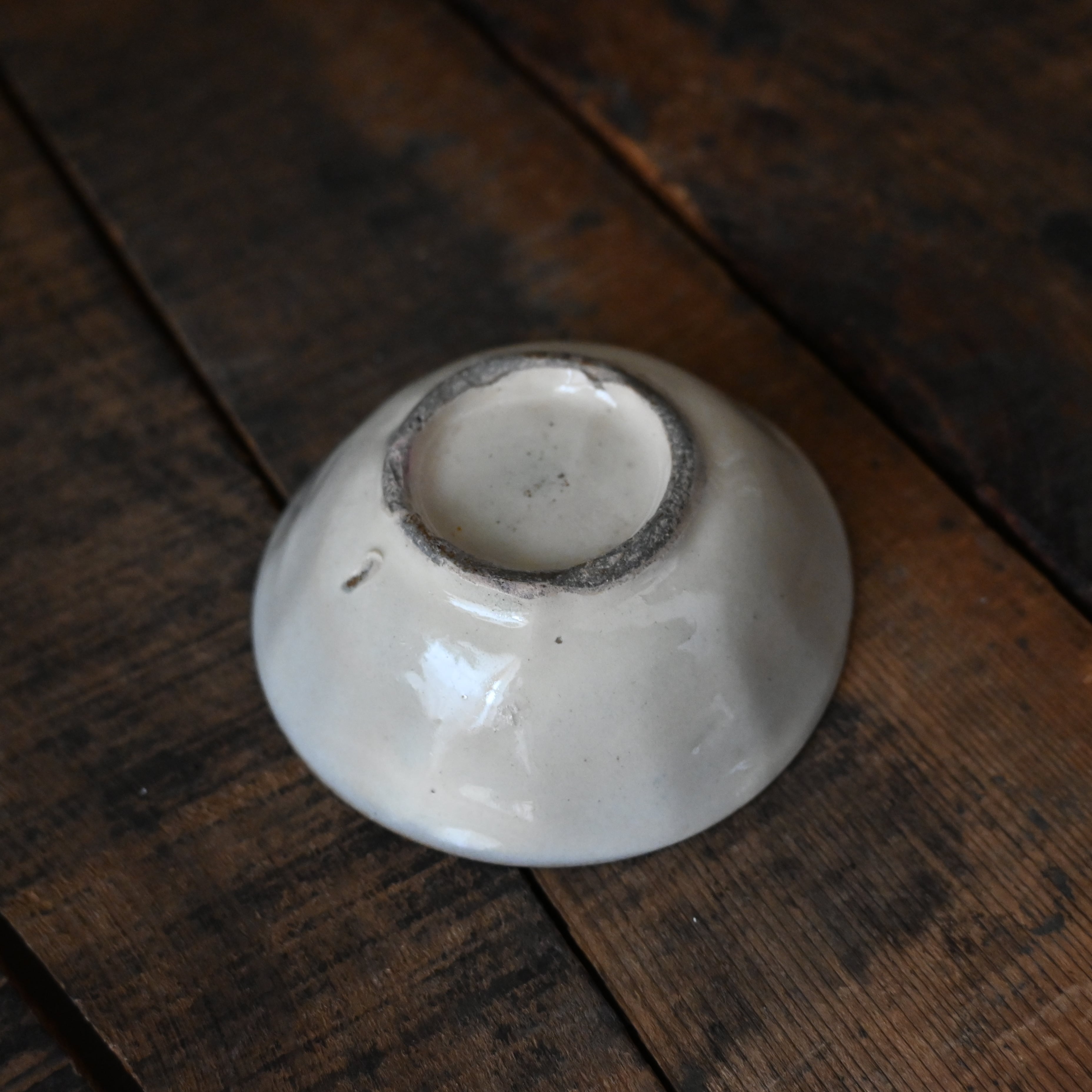 焼成時に器を重ねて焼くため、高台(底の部分)や縁に、小さな突起や釉薬の剥がれた跡が残ることがあります。これは当時の製法ならではの特徴であり、ひとつひとつ異なる個性を持つ証ともいえます。