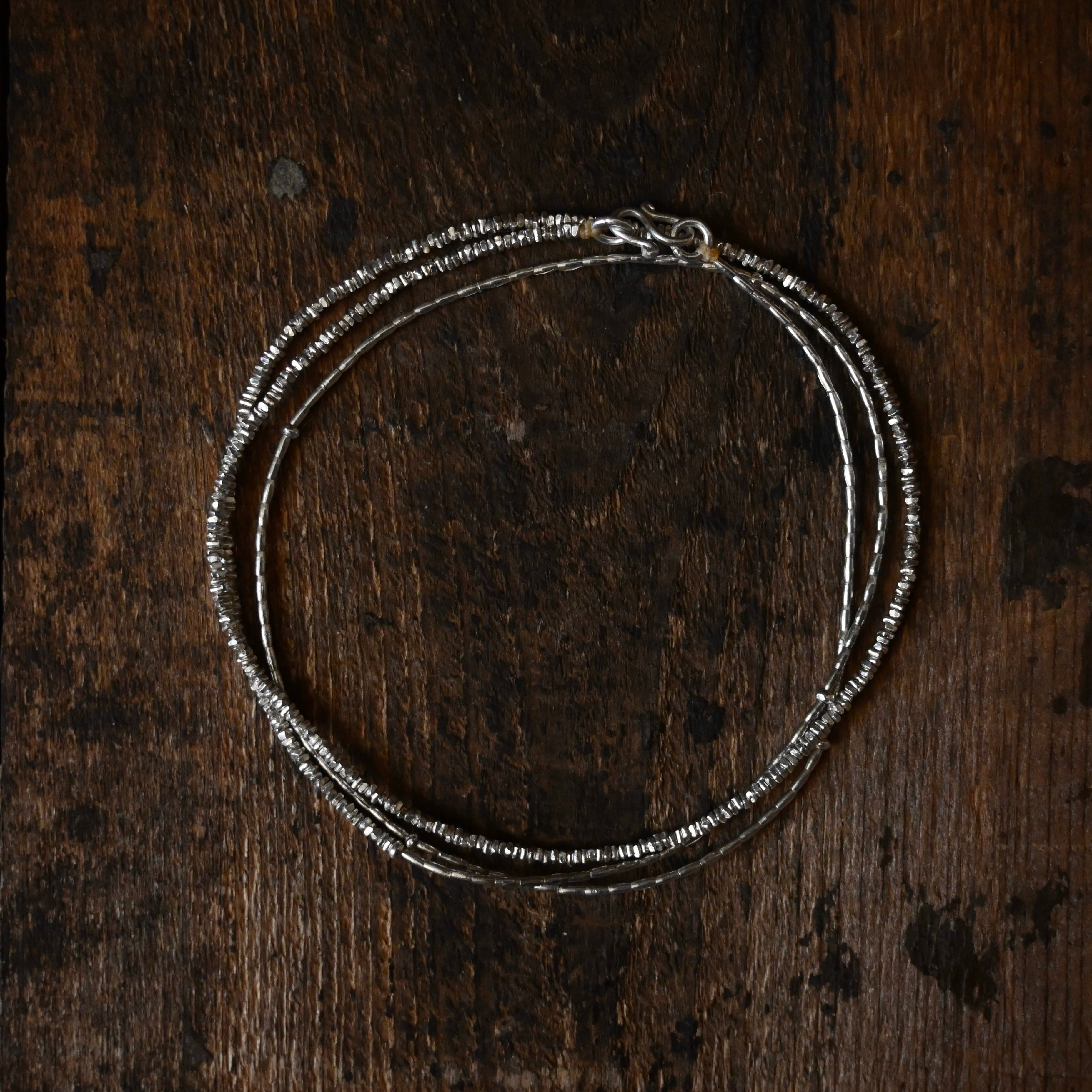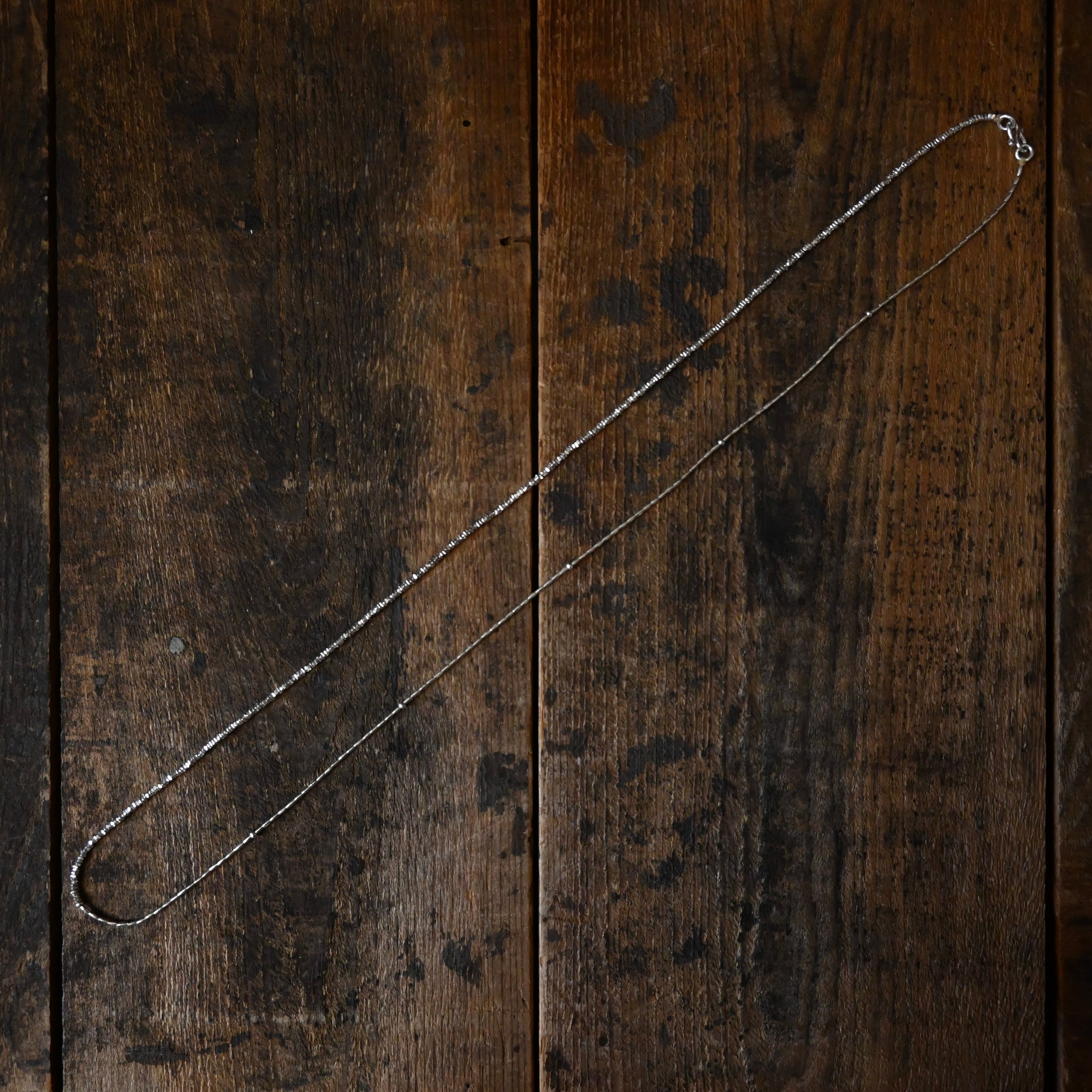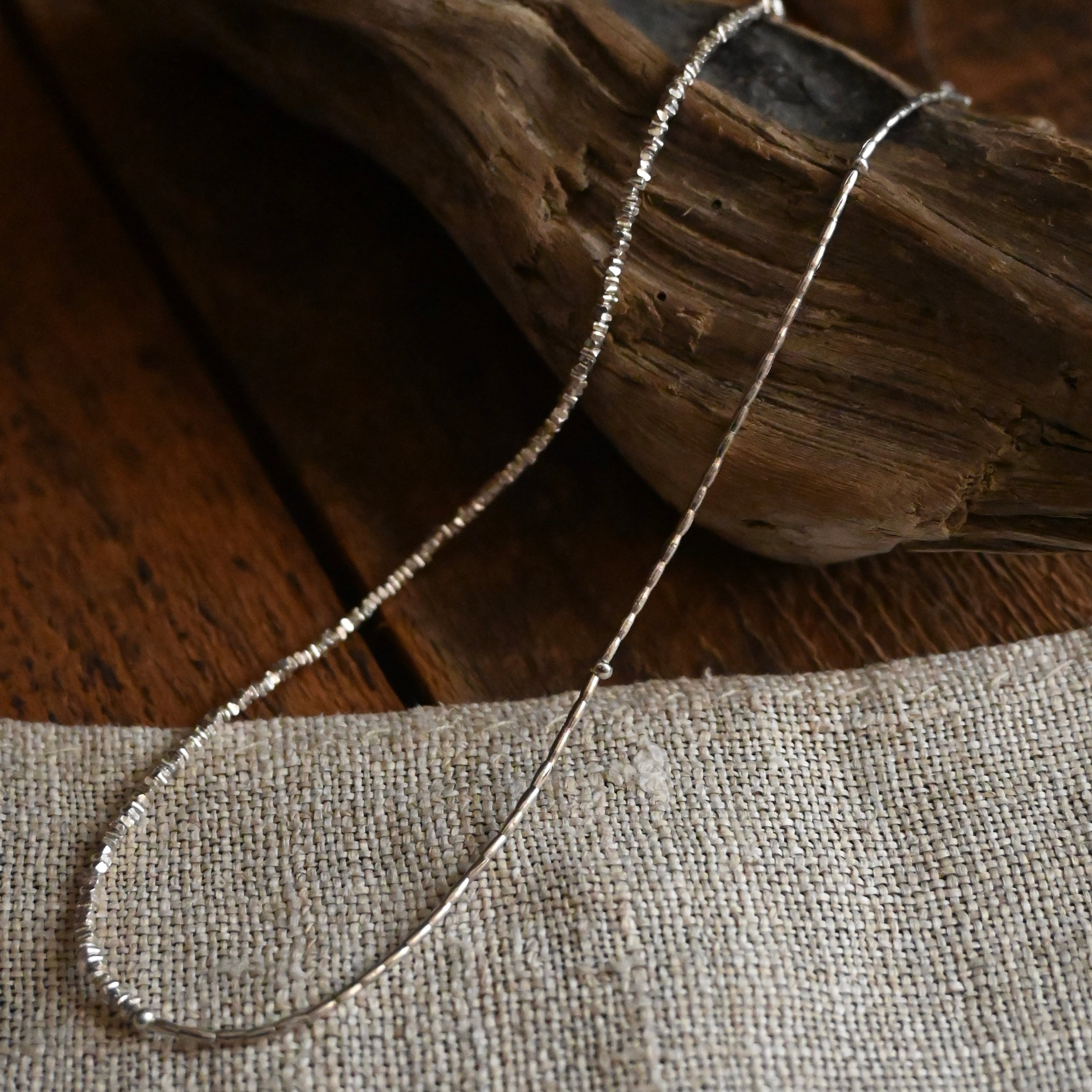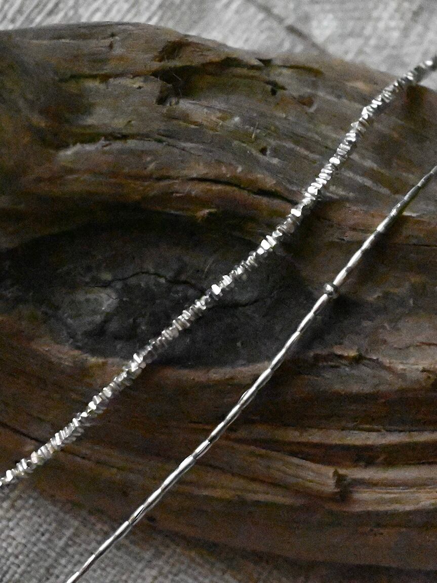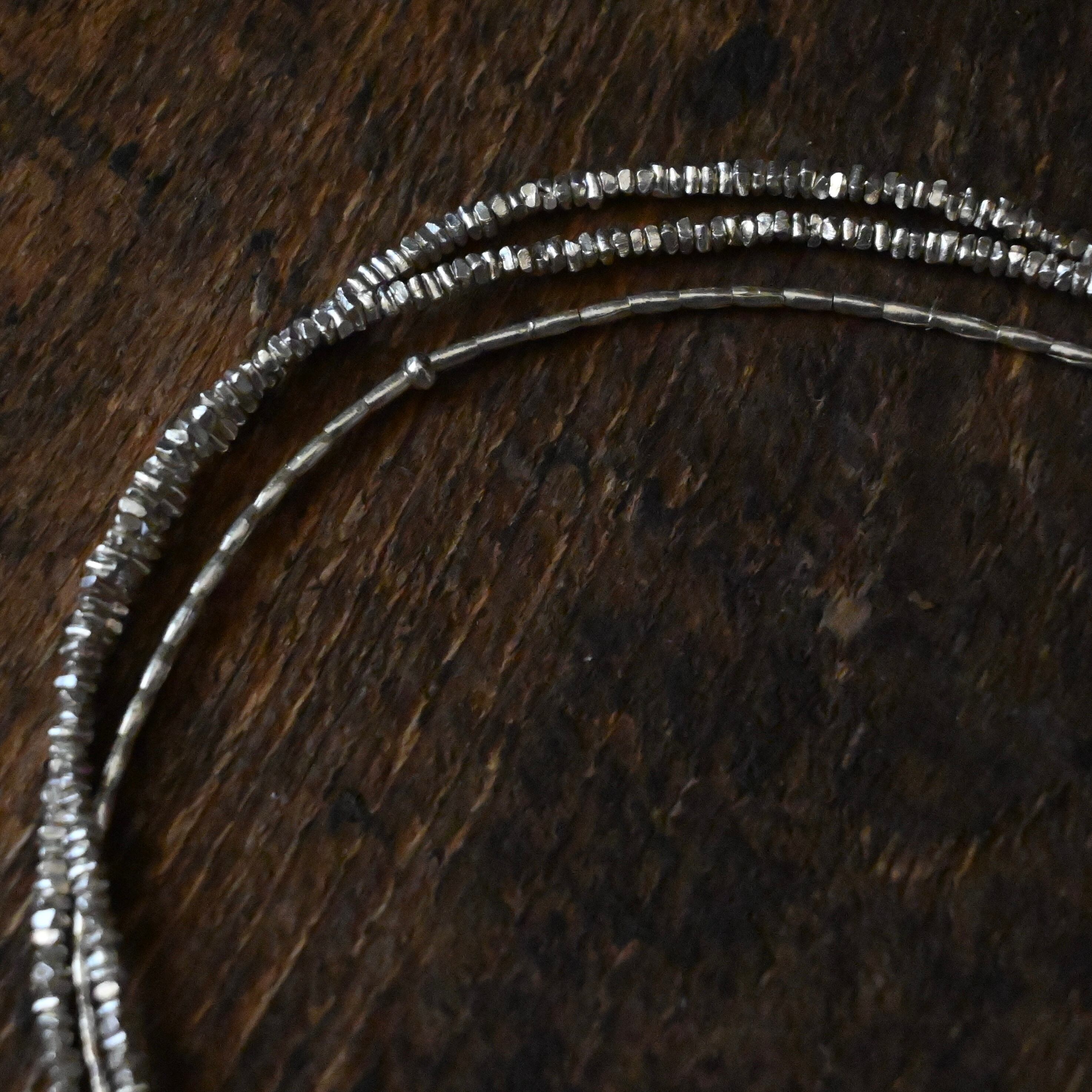 とても小さなシルバービーズを3種類組み合わせた、きらりと光る姿が美しいネックレスです。