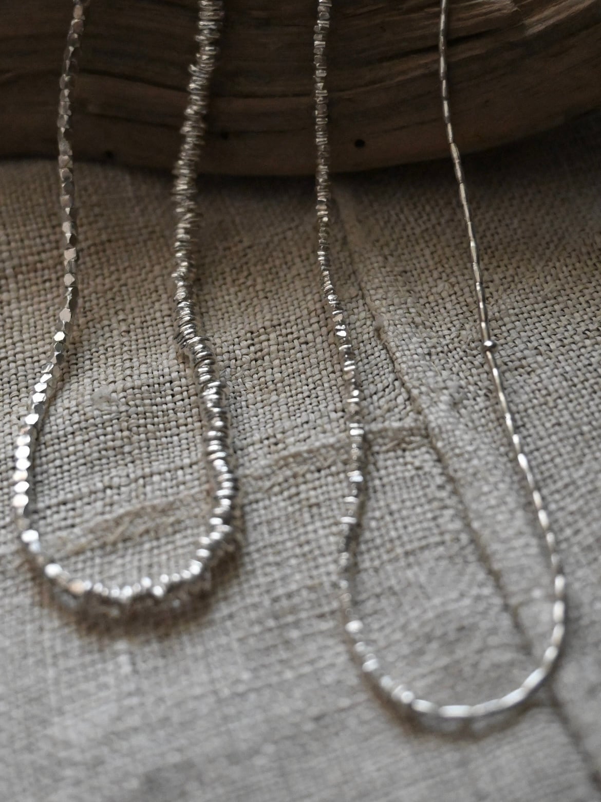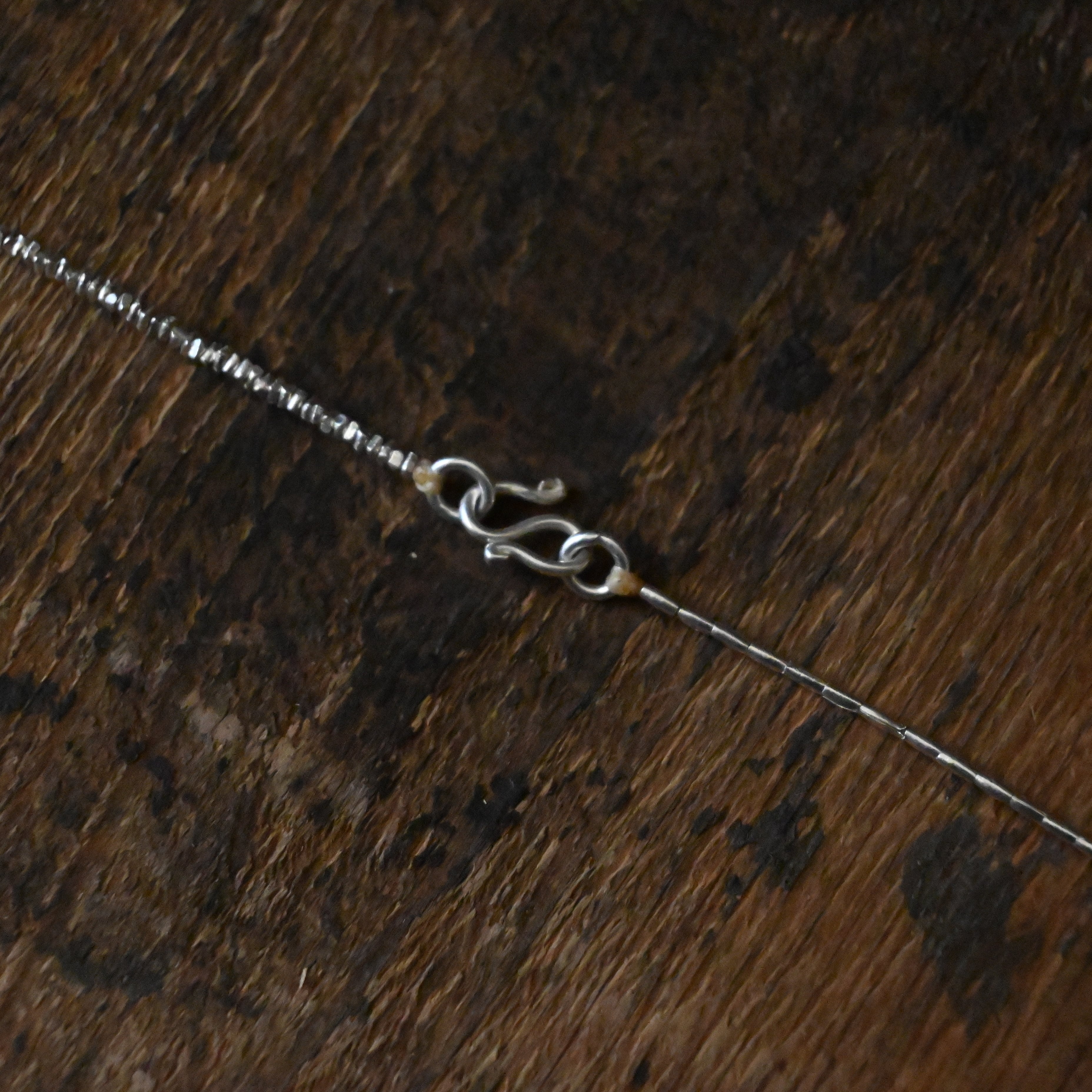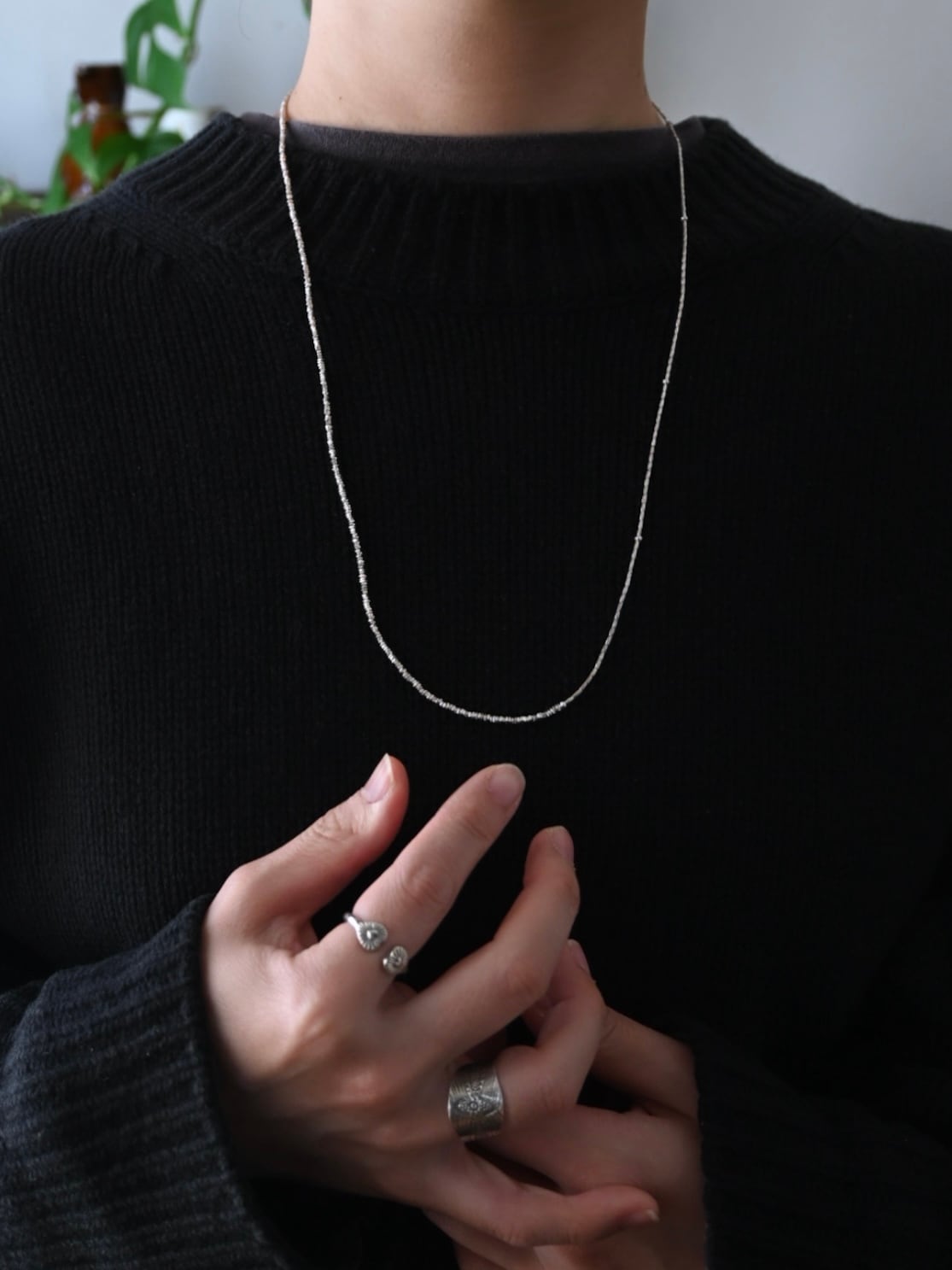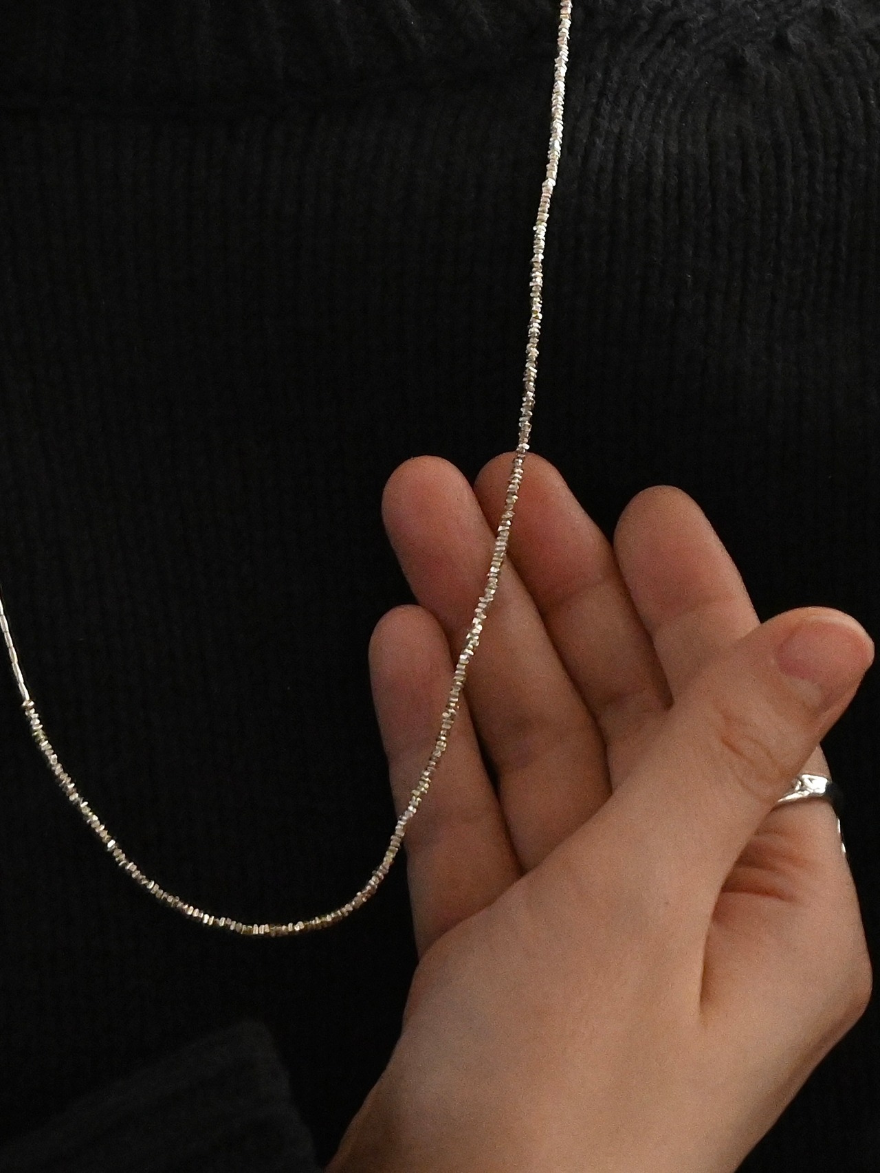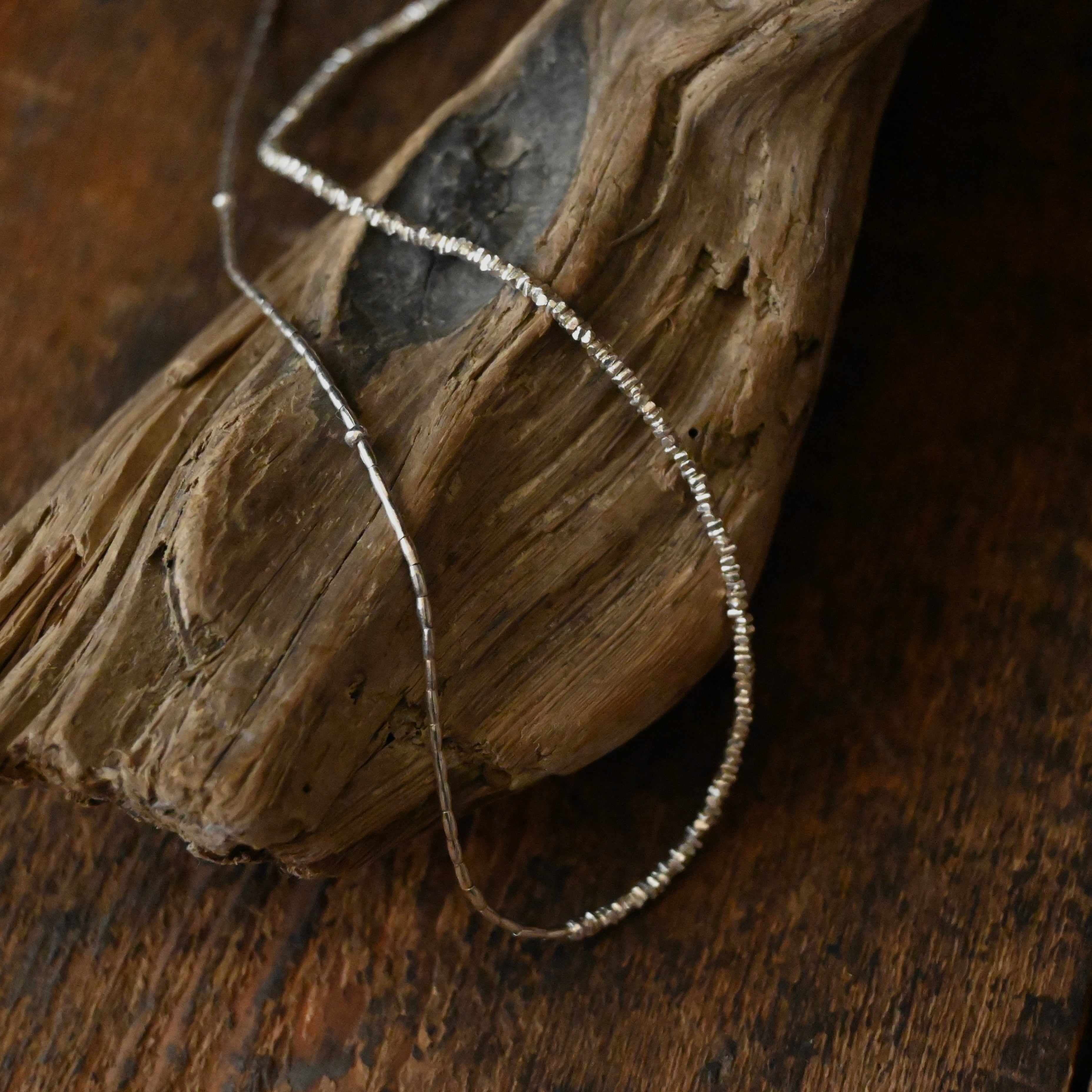 とても小さなシルバービーズを3種類組み合わせた、きらりと光る姿が美しいネックレスです。