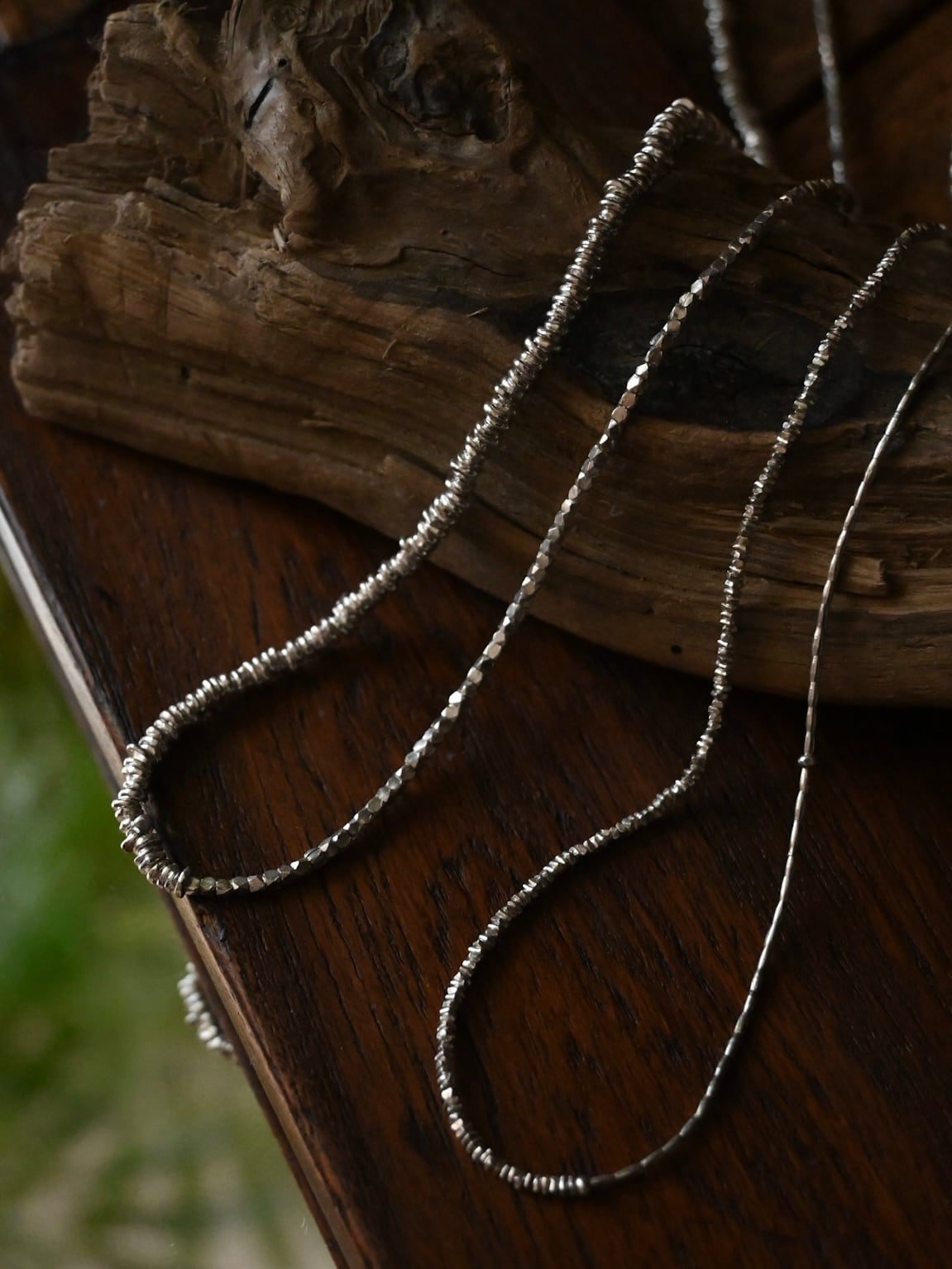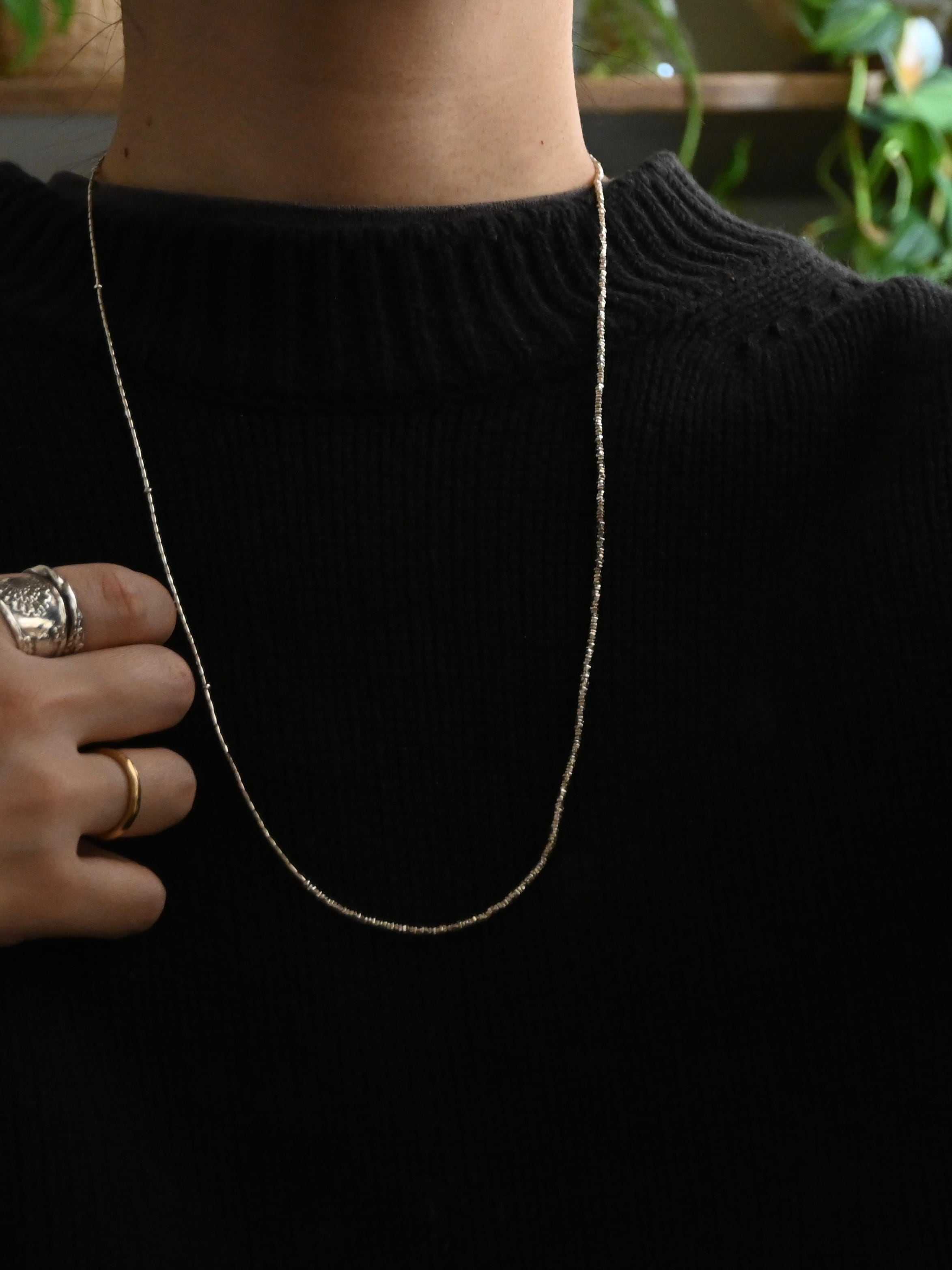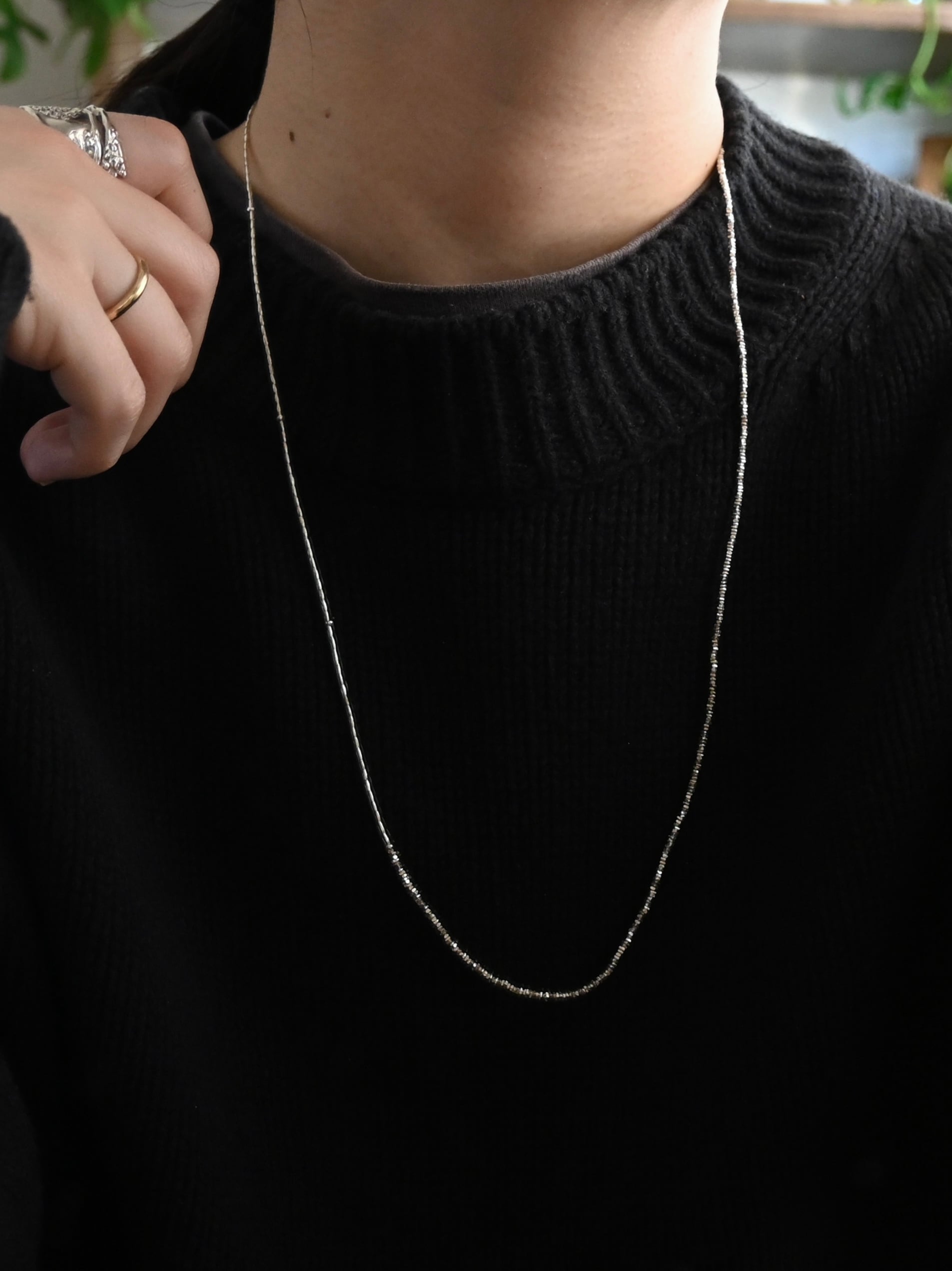 そんな手間暇かけて作られたビーズを繊細な印象のネックレスに仕立てました。