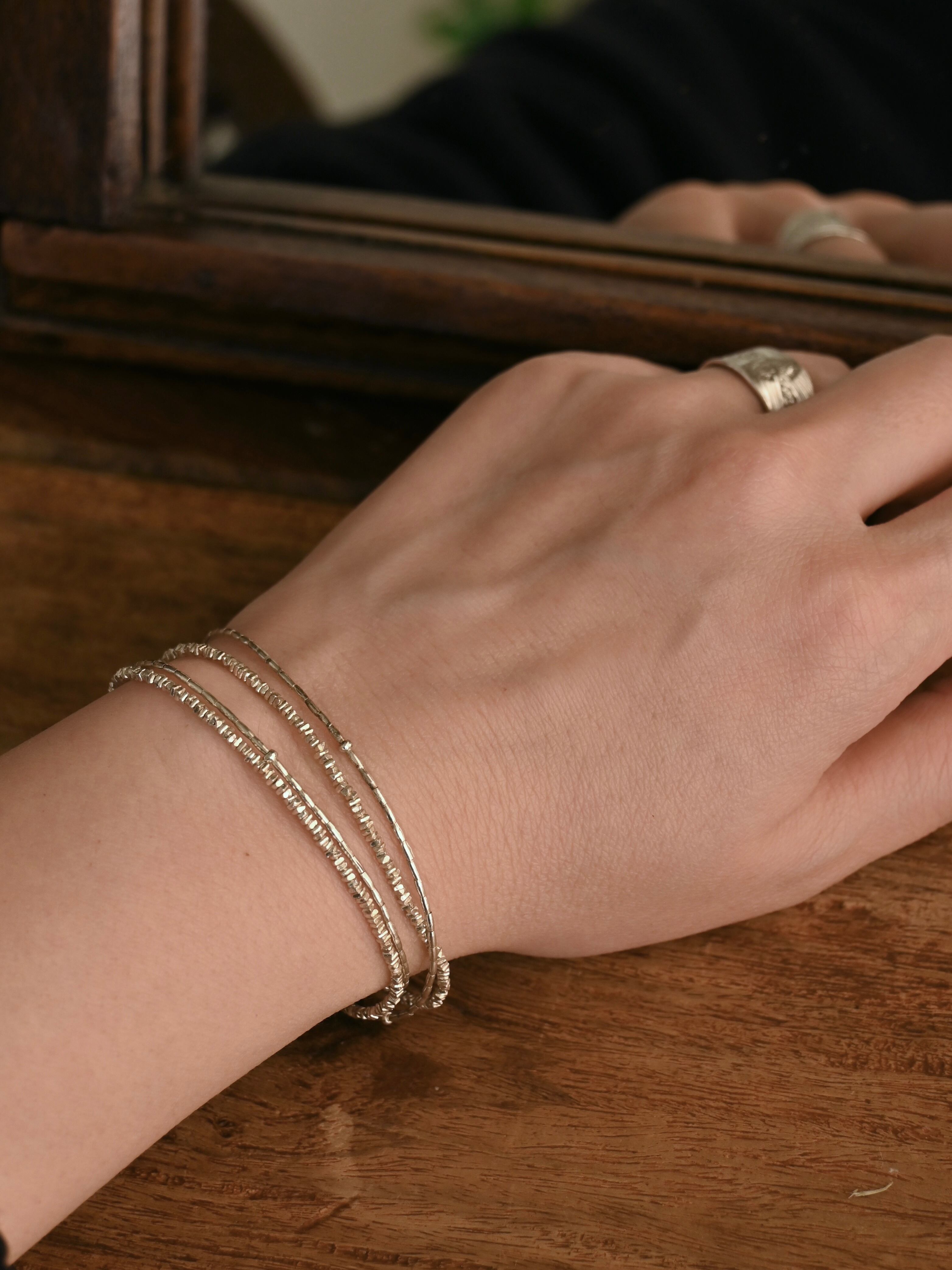 華奢な印象なので、手首にぐるりと巻き付けてブレスレットとしても。