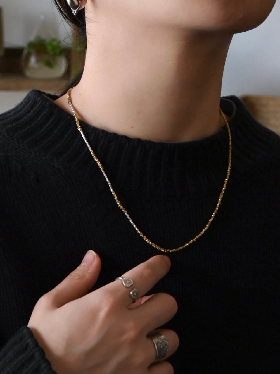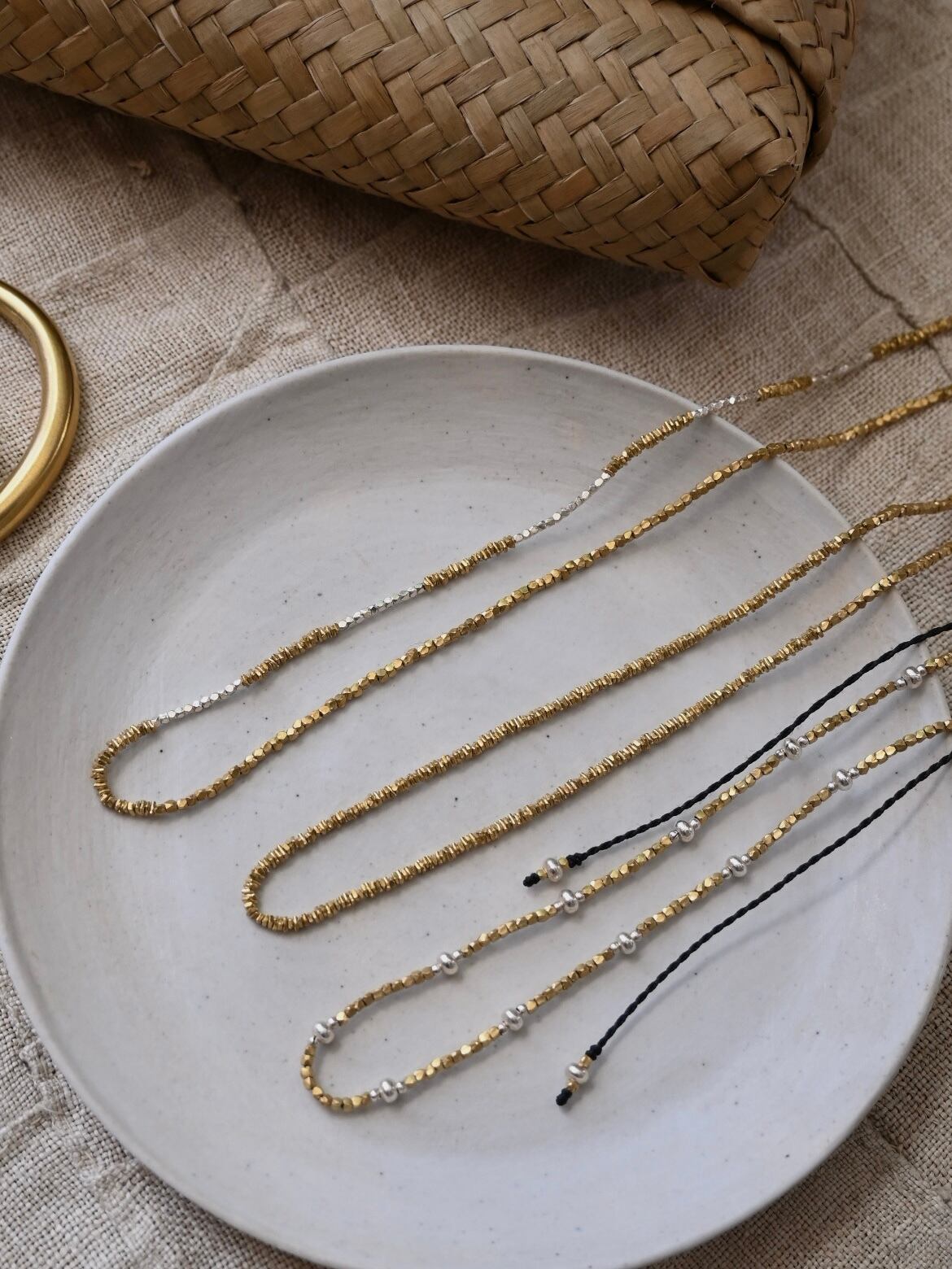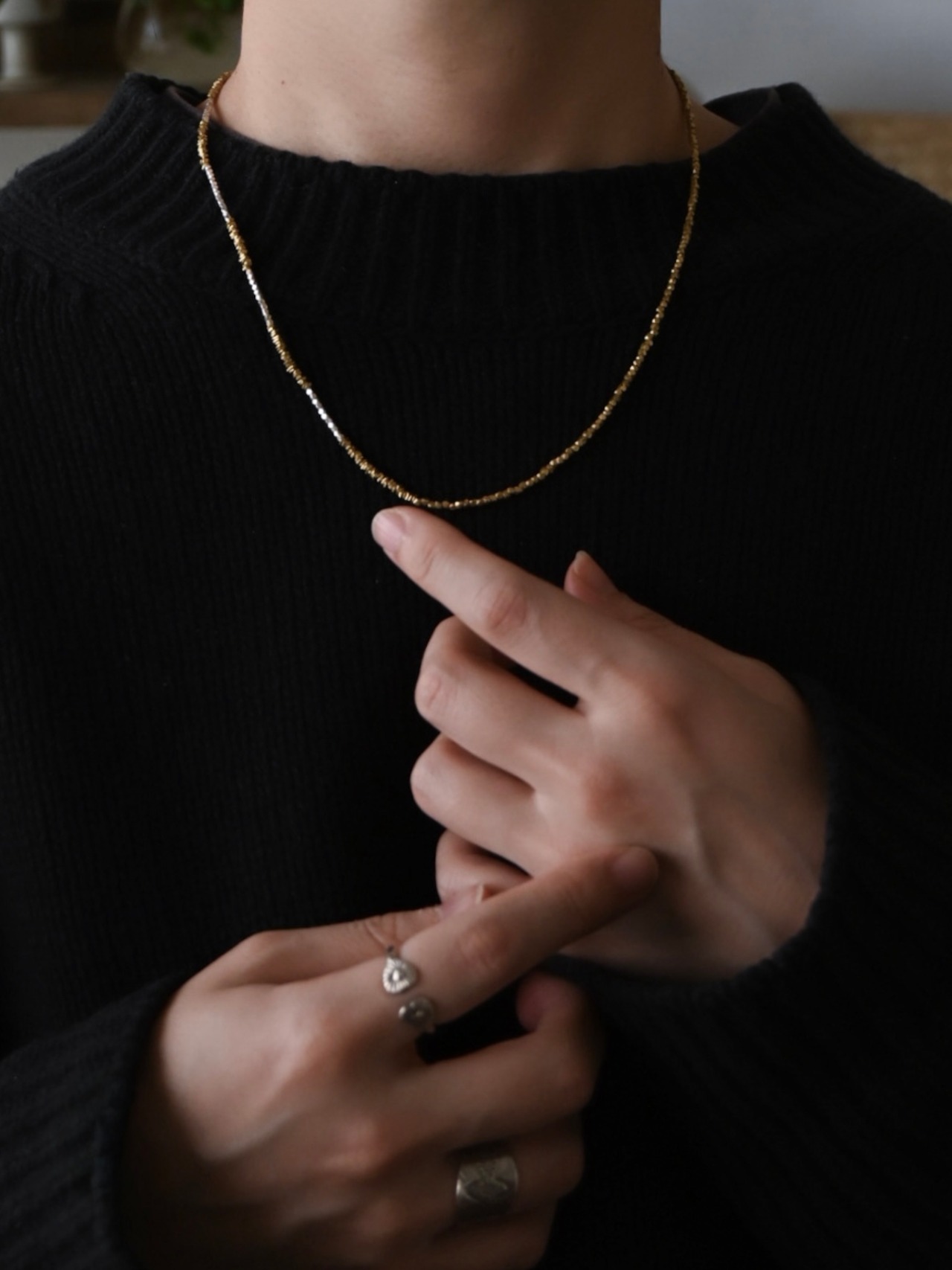 そんな手間暇かけて作られた小さなビーズをシンプルなネックレスに。