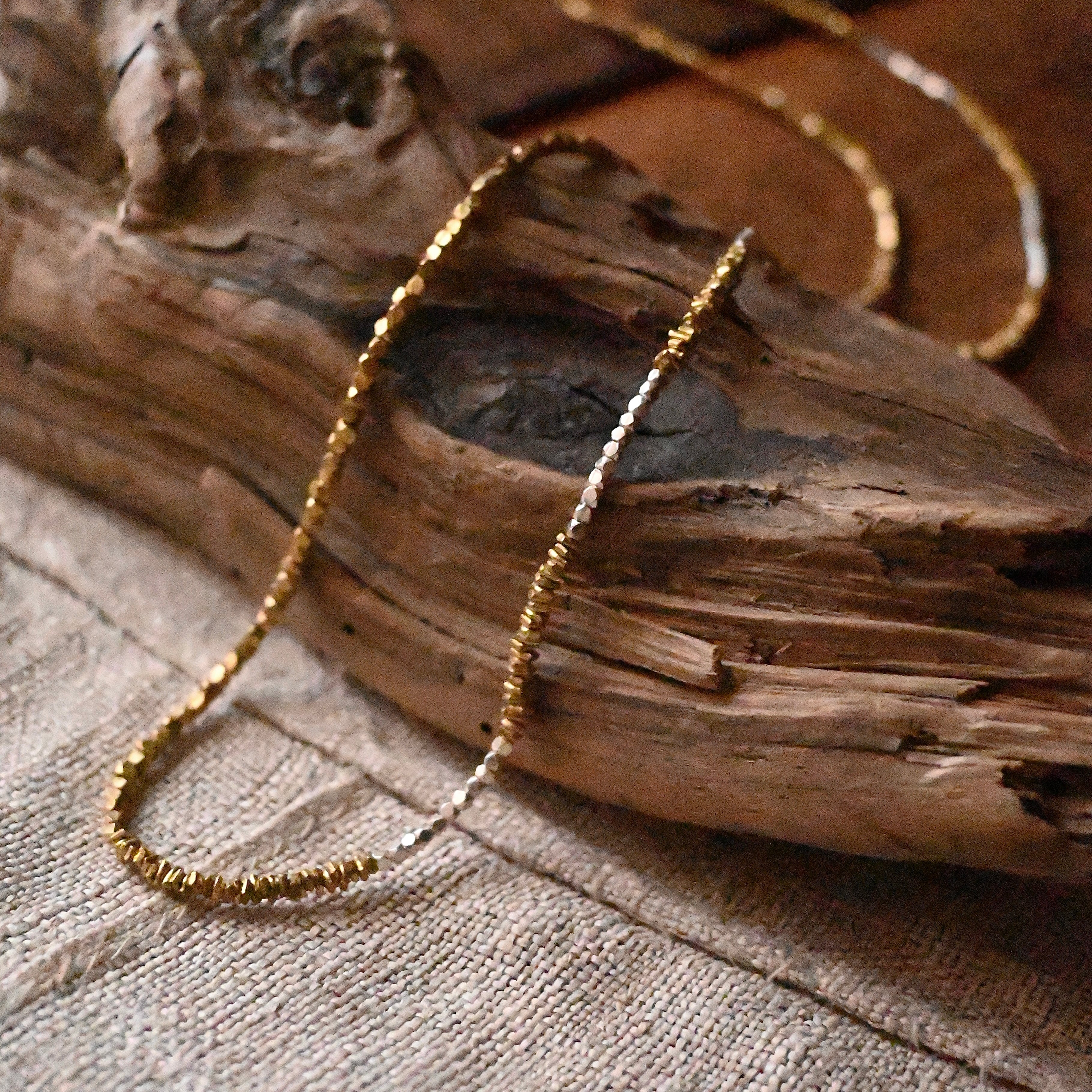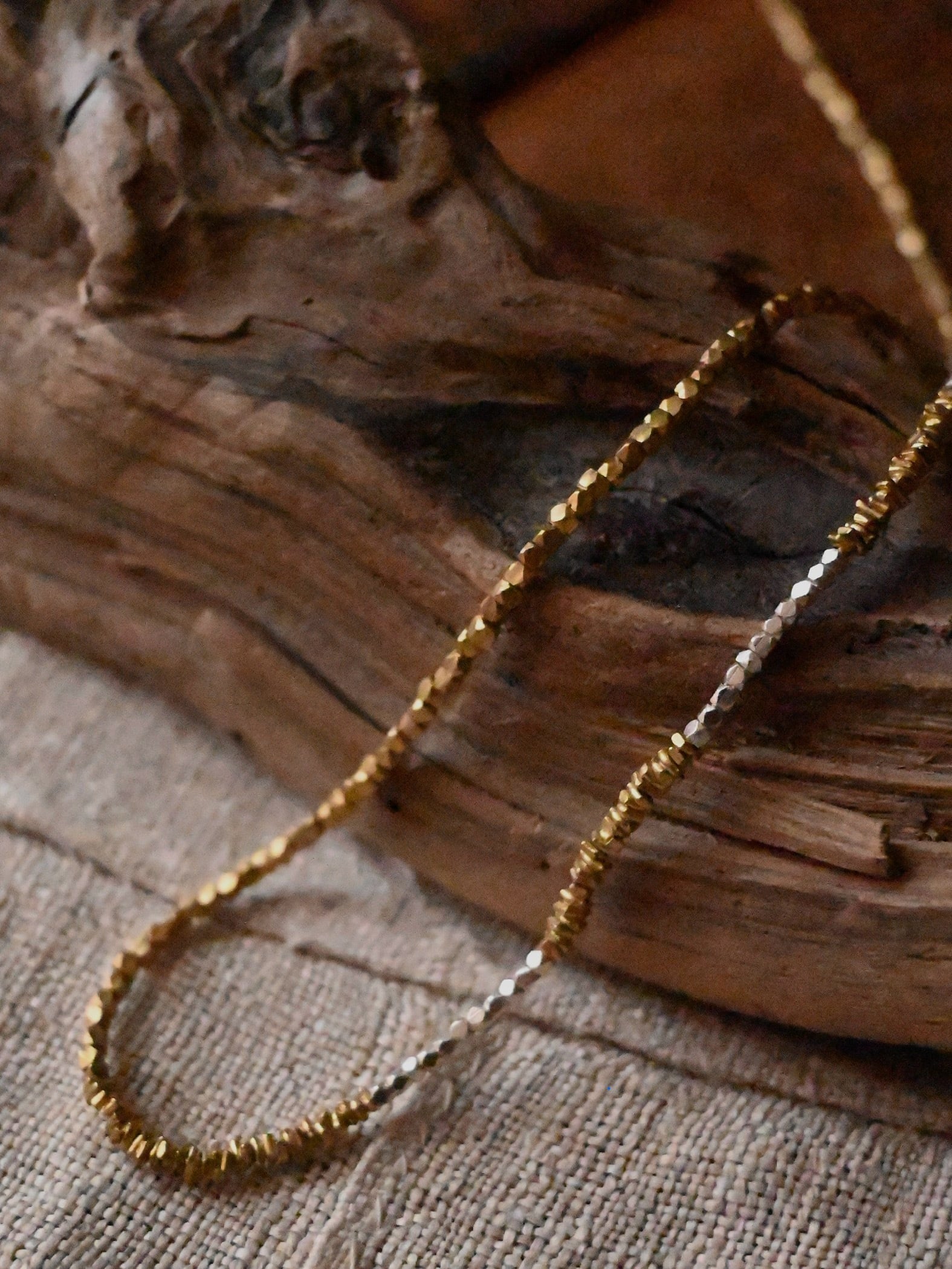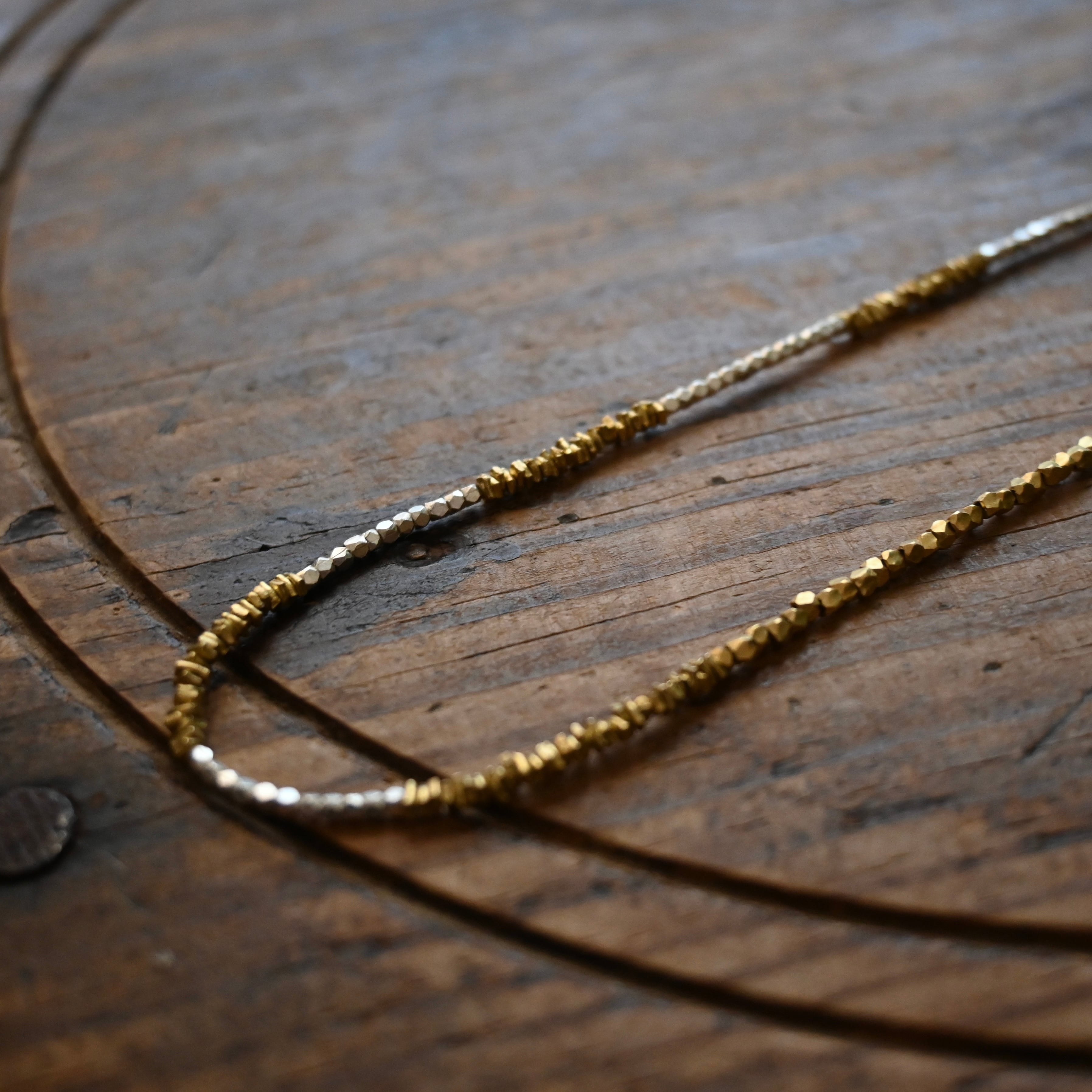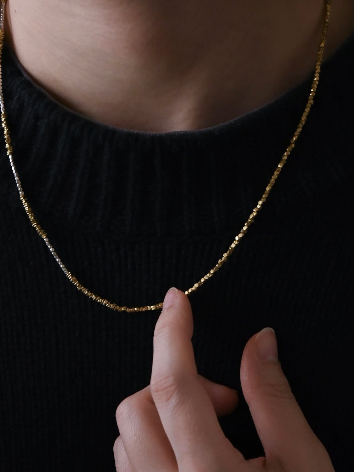 そんな手間暇かけて作られた小さなビーズをシンプルなネックレスに。