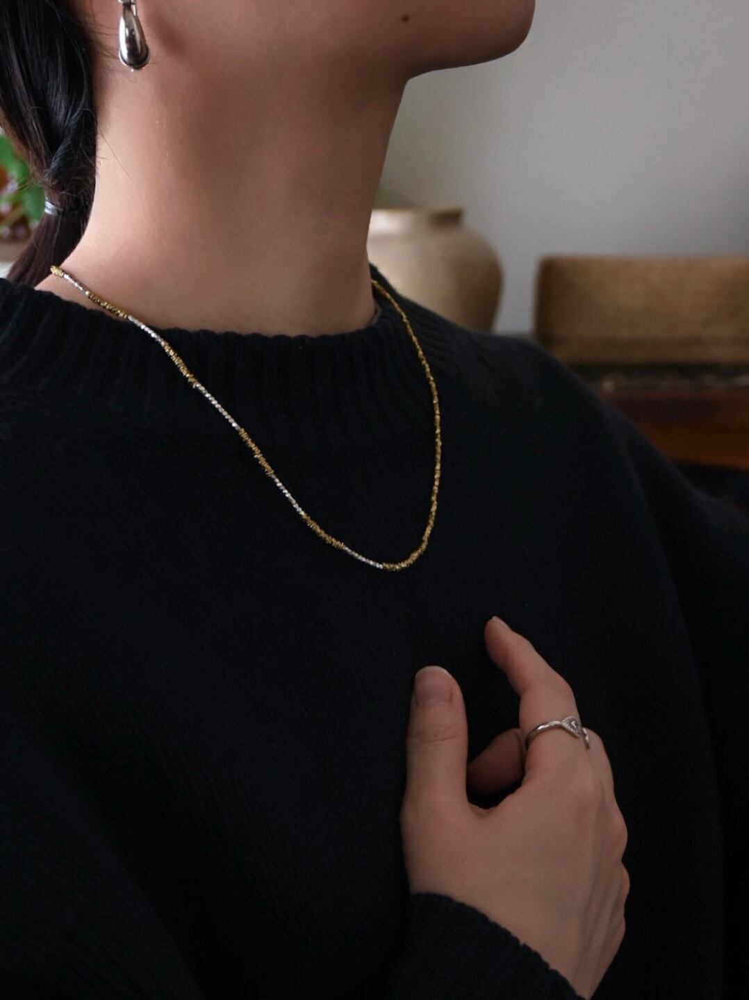 とても華奢なビーズを使用しているので、日々のコーディネイトの邪魔をせず、品よく煌めきを添えてくれます。上品な印象なので日常使いにもぴったりの一品です。