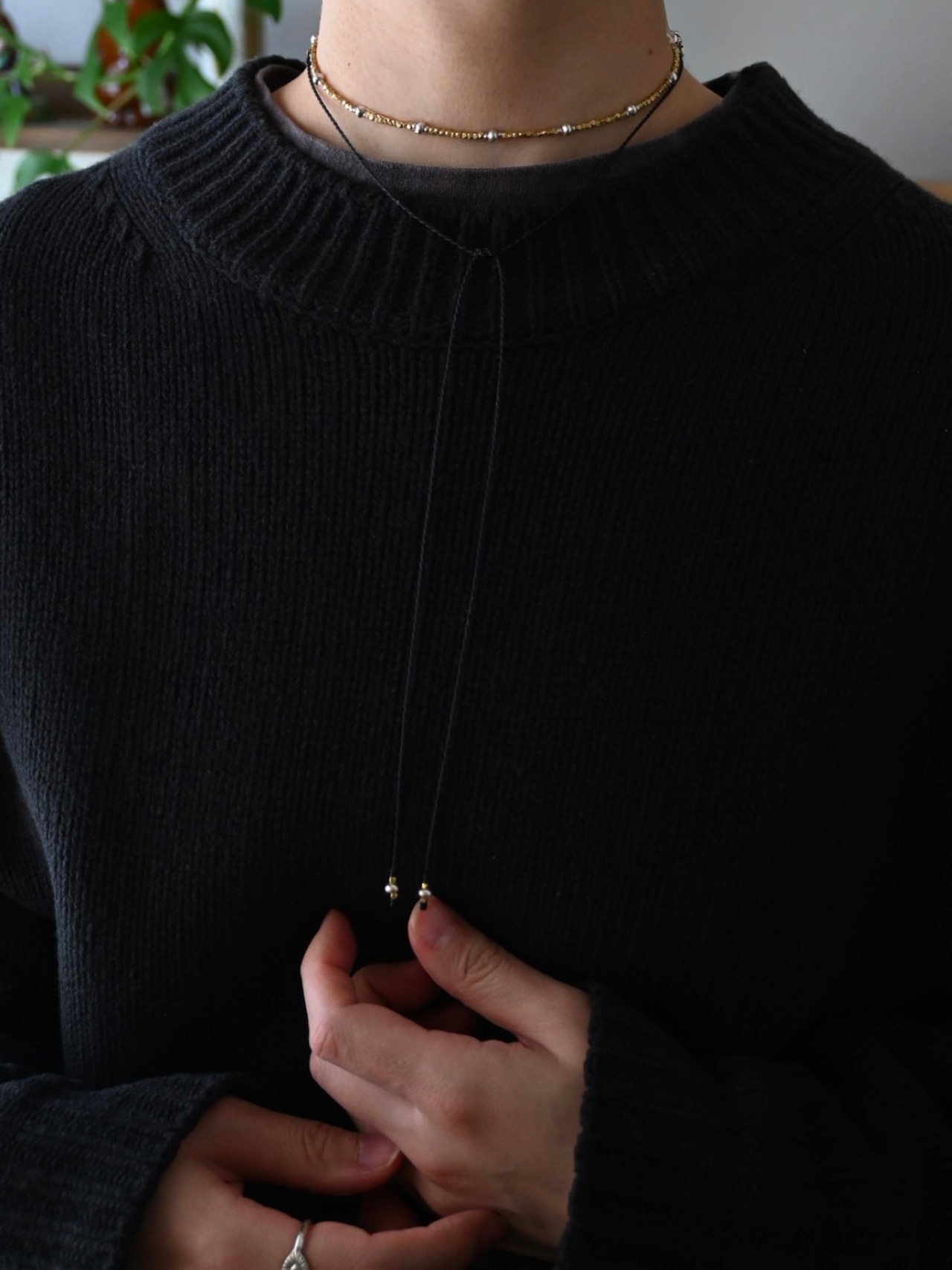 *コードの糸の素材はワックスコードを使用しています。糸の折れ癖などは着用いただくうちに徐々に馴染んでいきます。