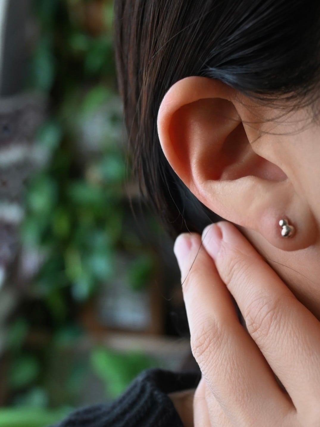 純度の高いシルバーを溶かし、雫のような丸みを帯びたピアスは、小ぶりなサイズ感なので普段使いにもおすすめです。