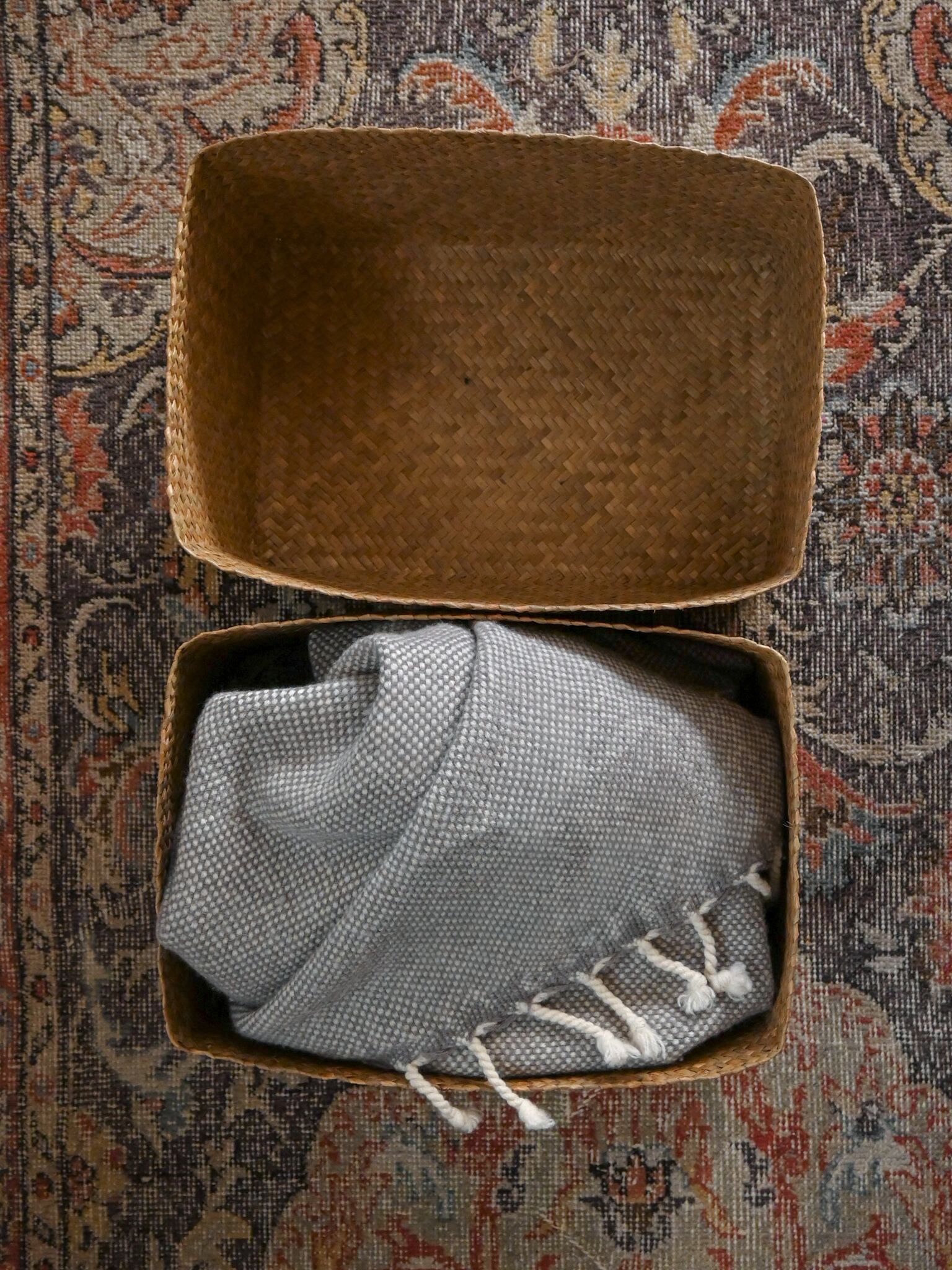 また、本体と蓋を別々に使用して、ハンドタオル、靴下・肌着などの整理にもおすすめです。リビングや玄関先、デスク周りの整頓など棚やラックの上にもすっきり収まりやすいサイズ感です。