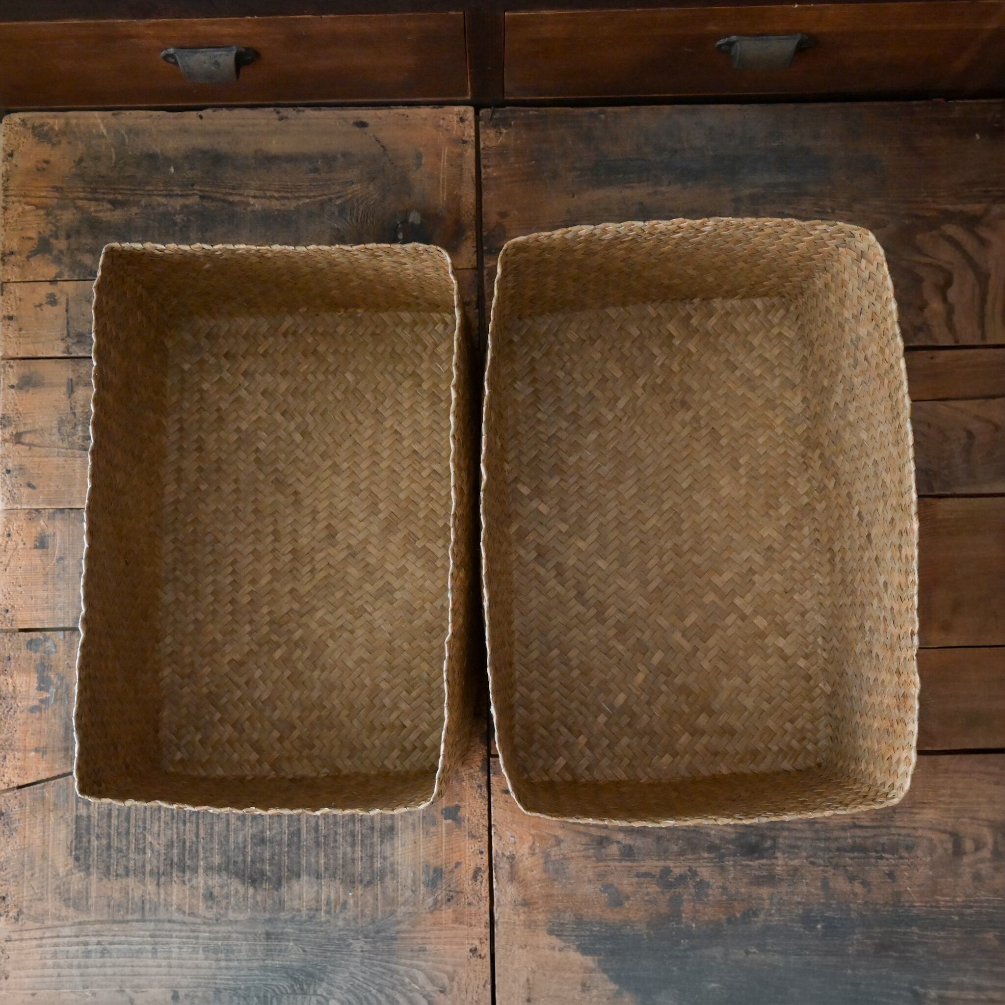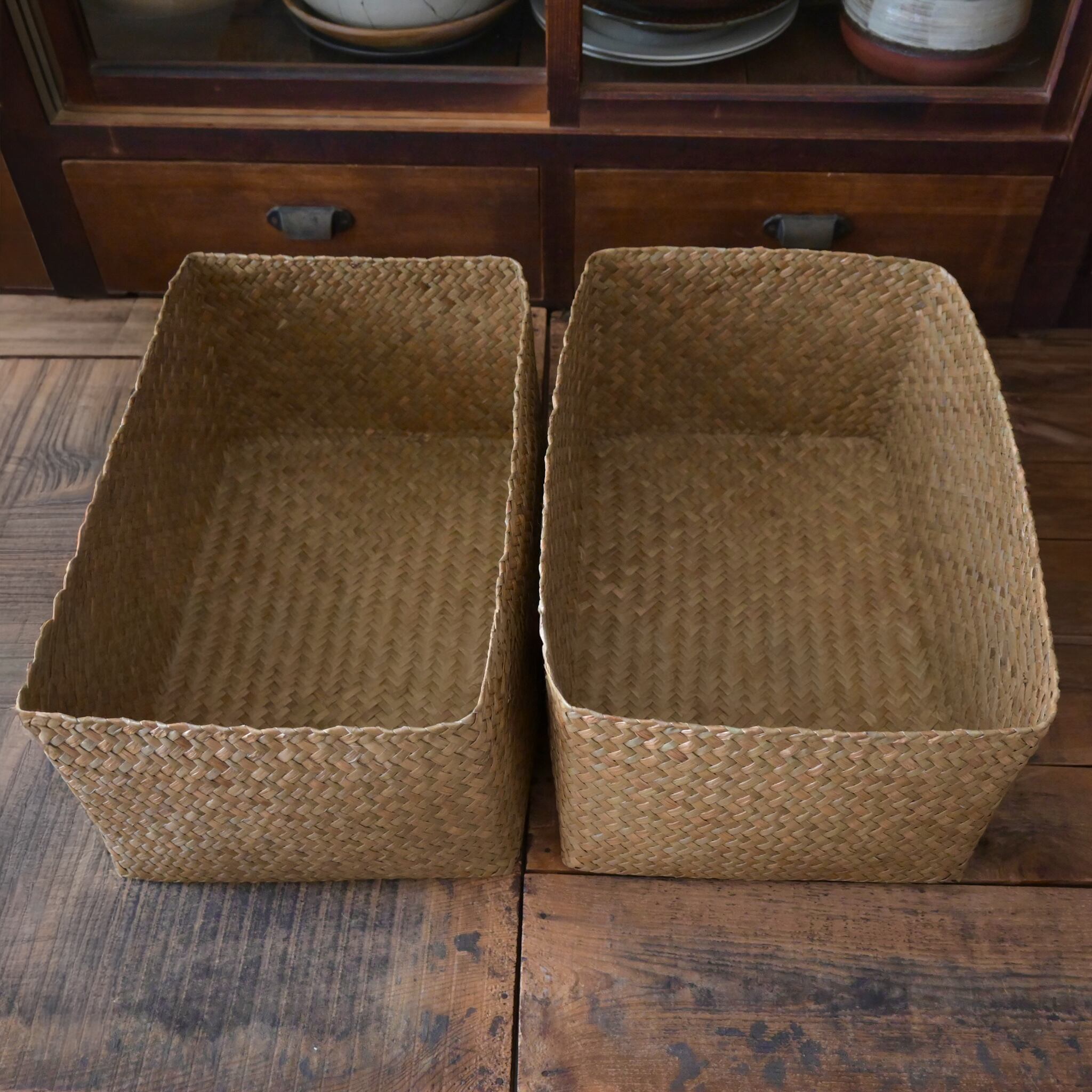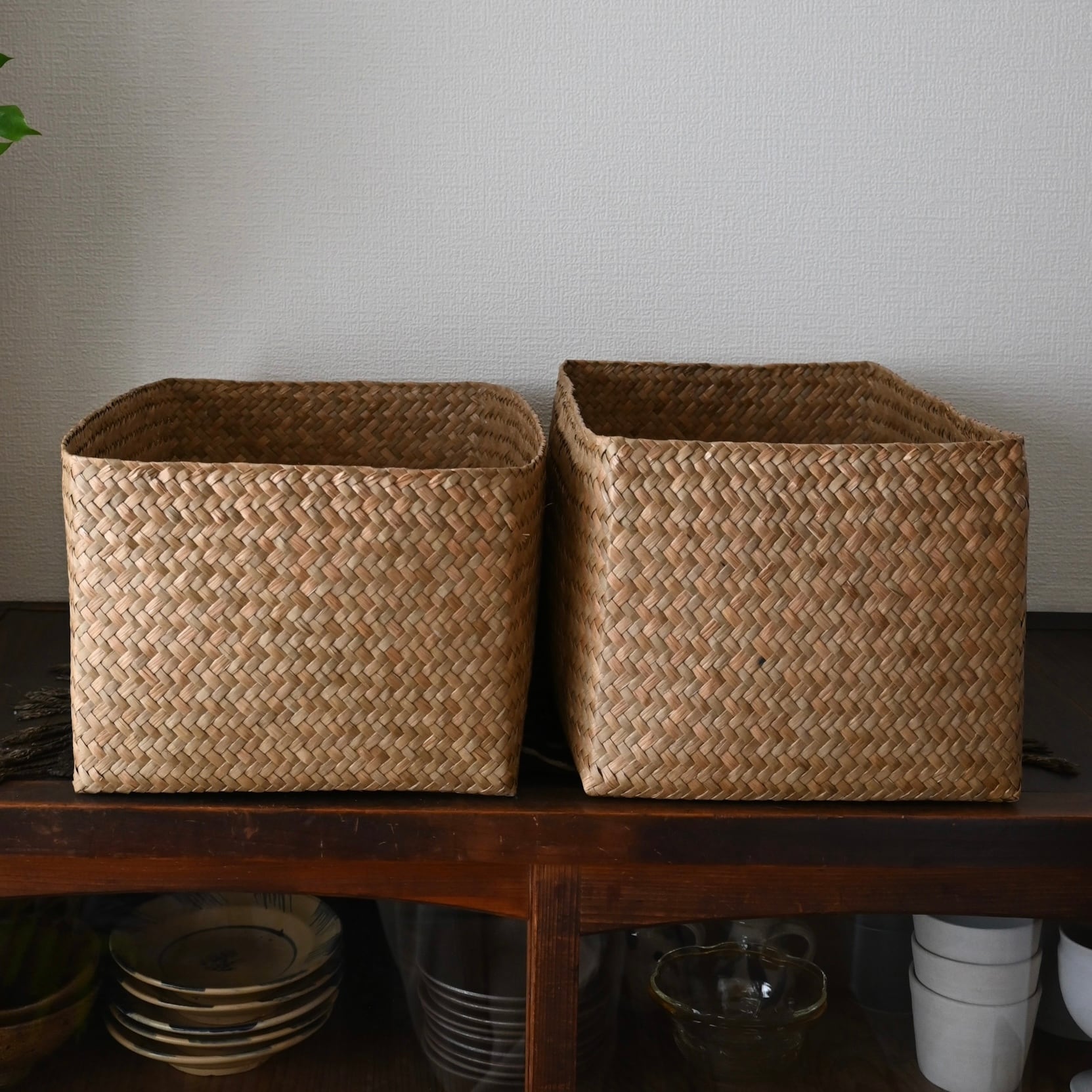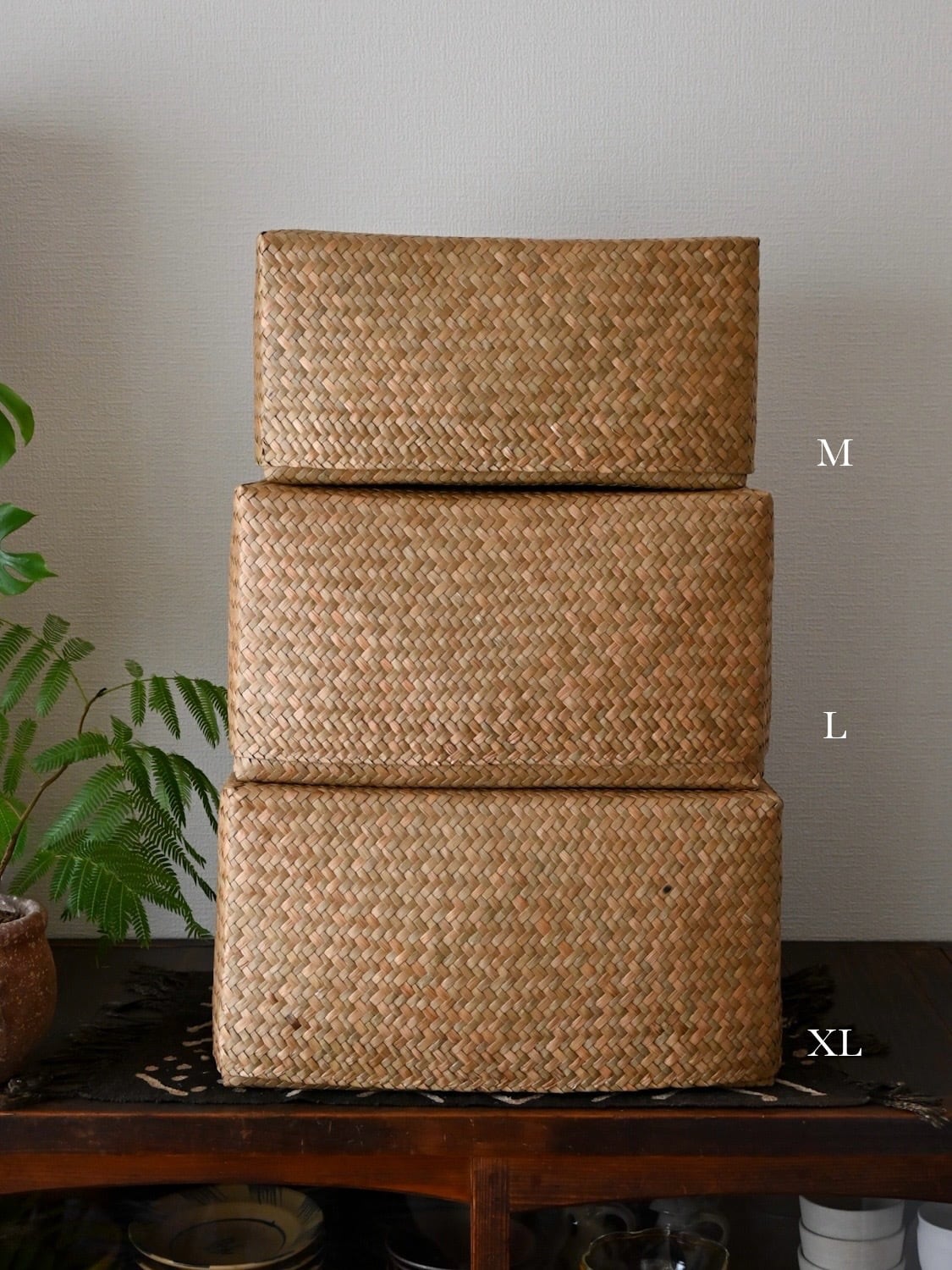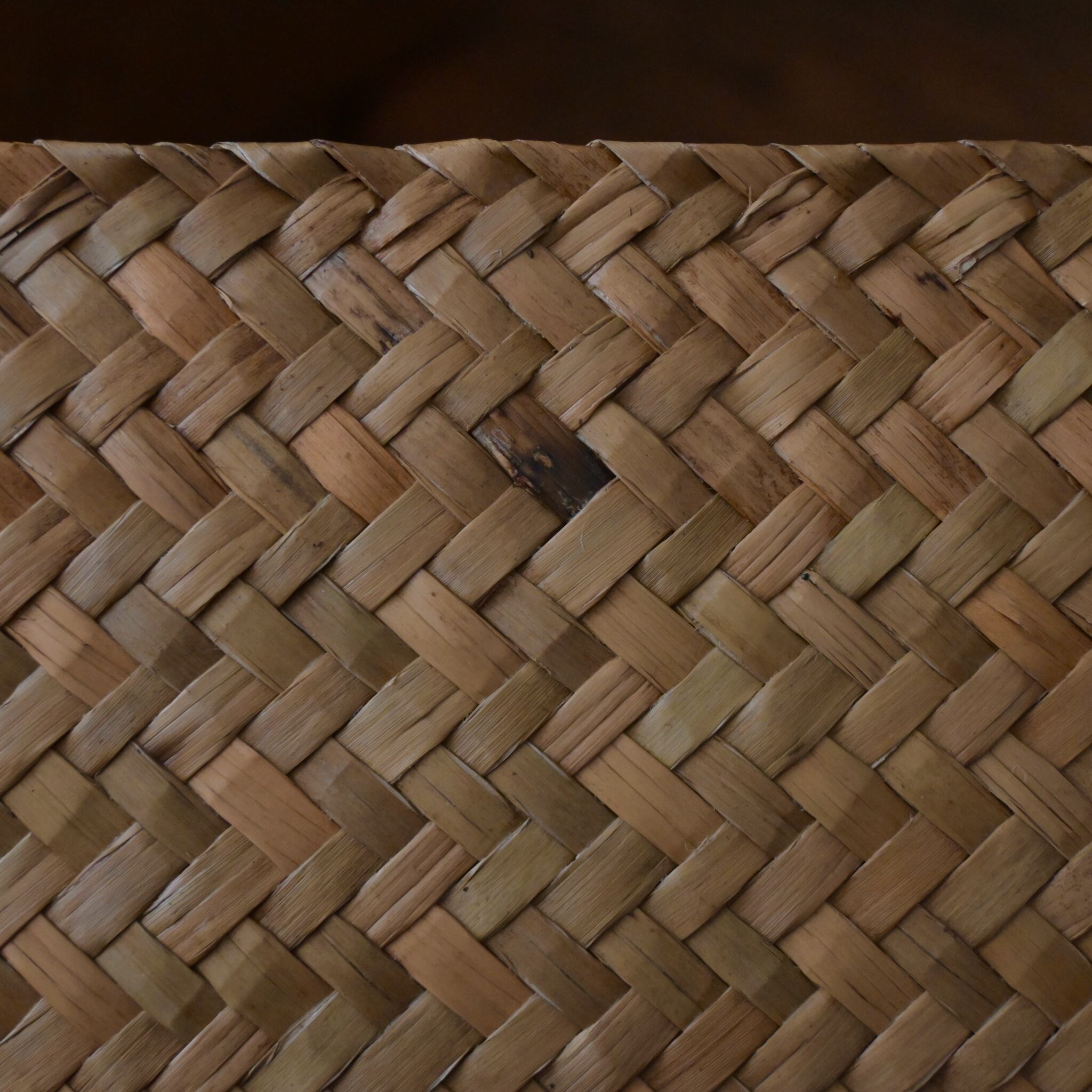 水草で作られるバスケットたちは、作られて間もないものは水分を多く含み、やや緑がかった色合い。そこから使っていくうちに水分が抜けると色が明るく黄味がかった色に変化し、しなやかさが増します。日々変化する風合いをお楽しみください。