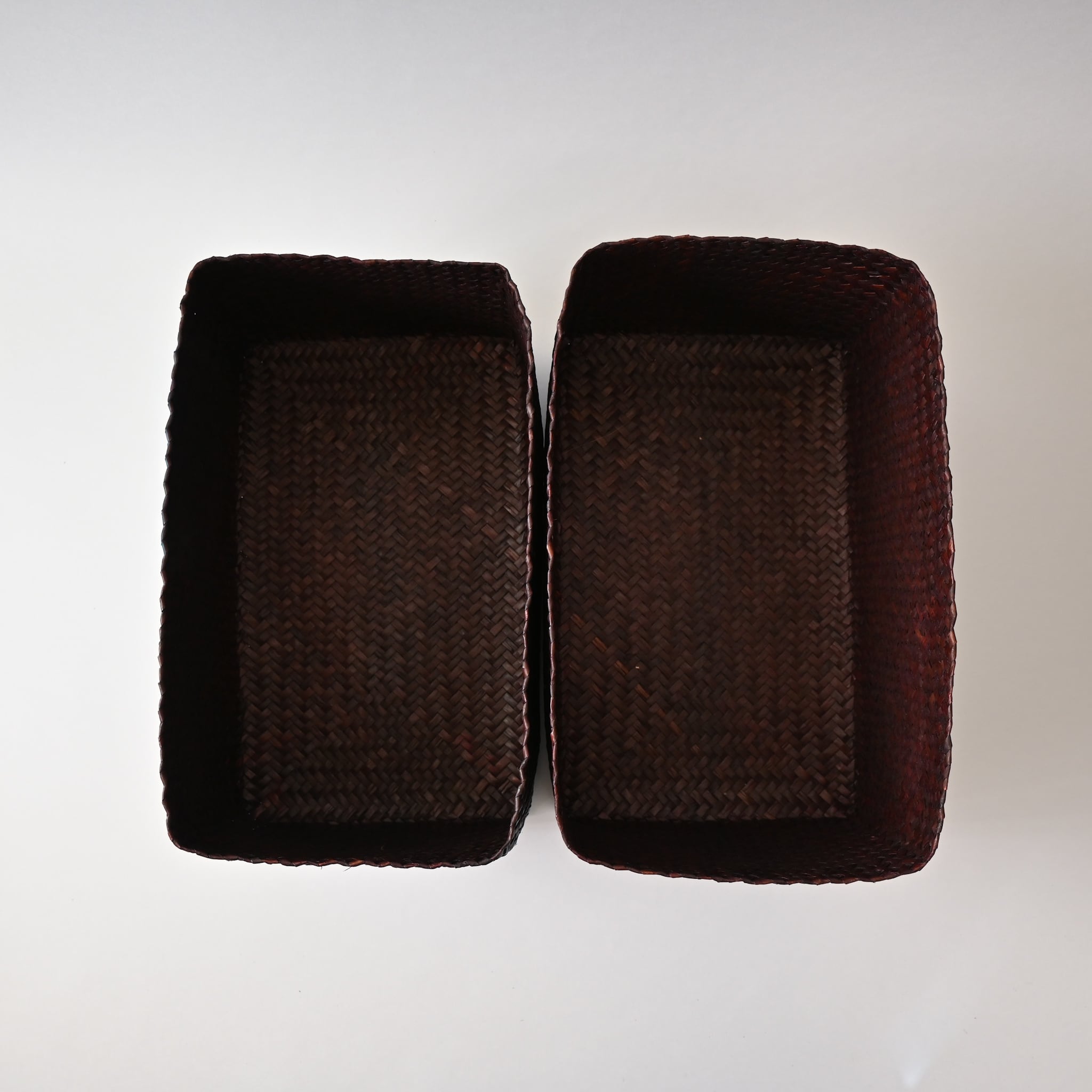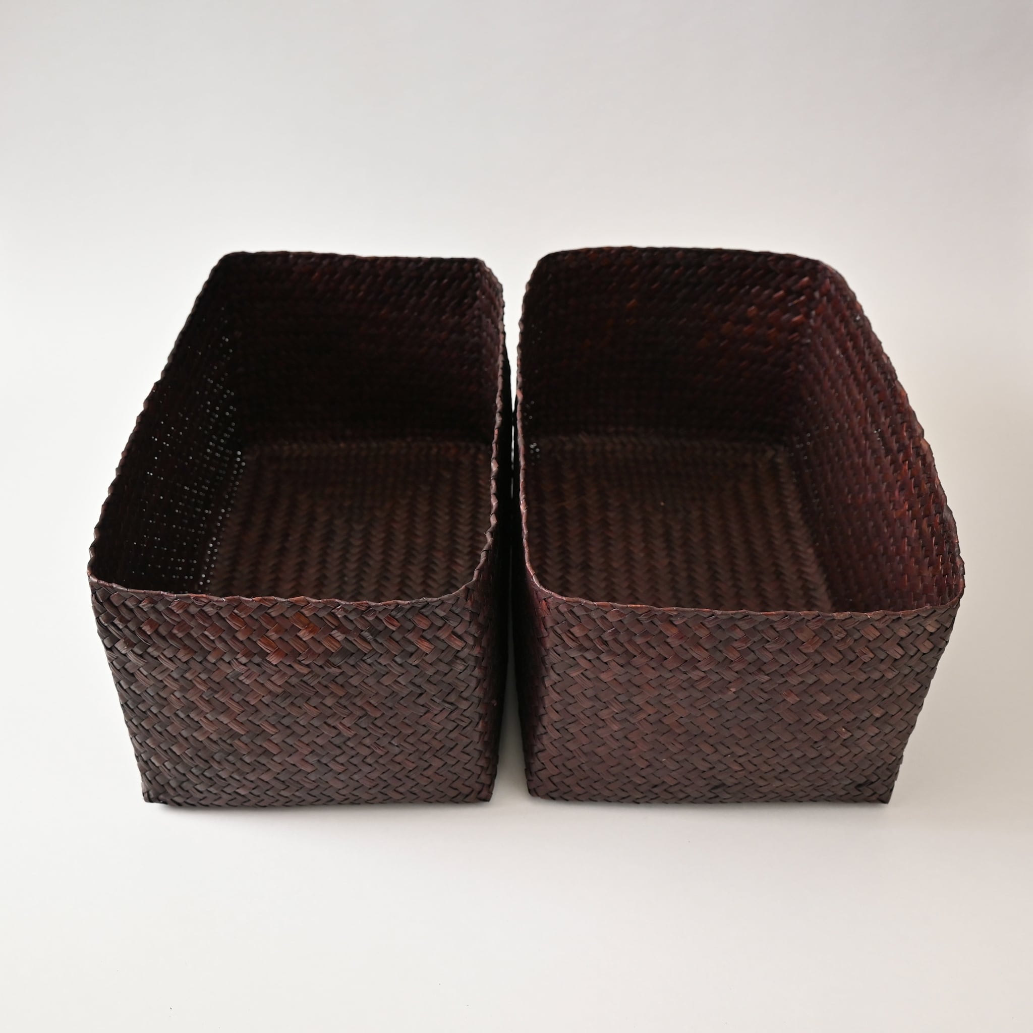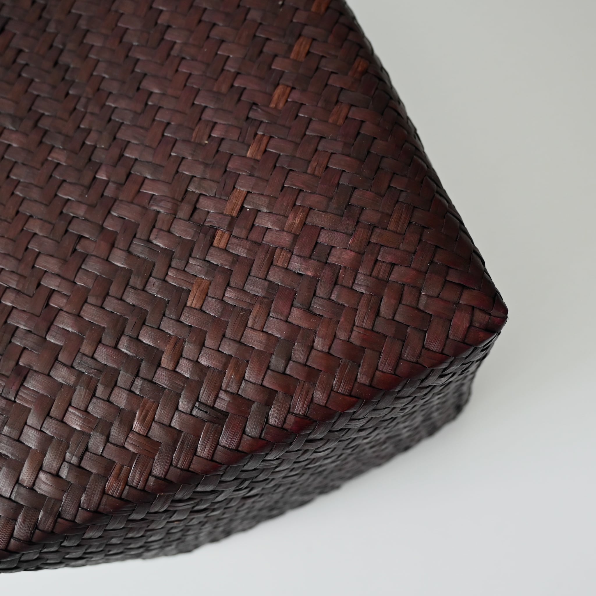 水草で作られるバスケットたちは、作られて間もないものは水分を多く含み、やや緑がかった色合い。そこから使っていくうちに水分が抜けると色が明るく黄味がかった色に変化し、しなやかさが増します。日々変化する風合いをお楽しみください。