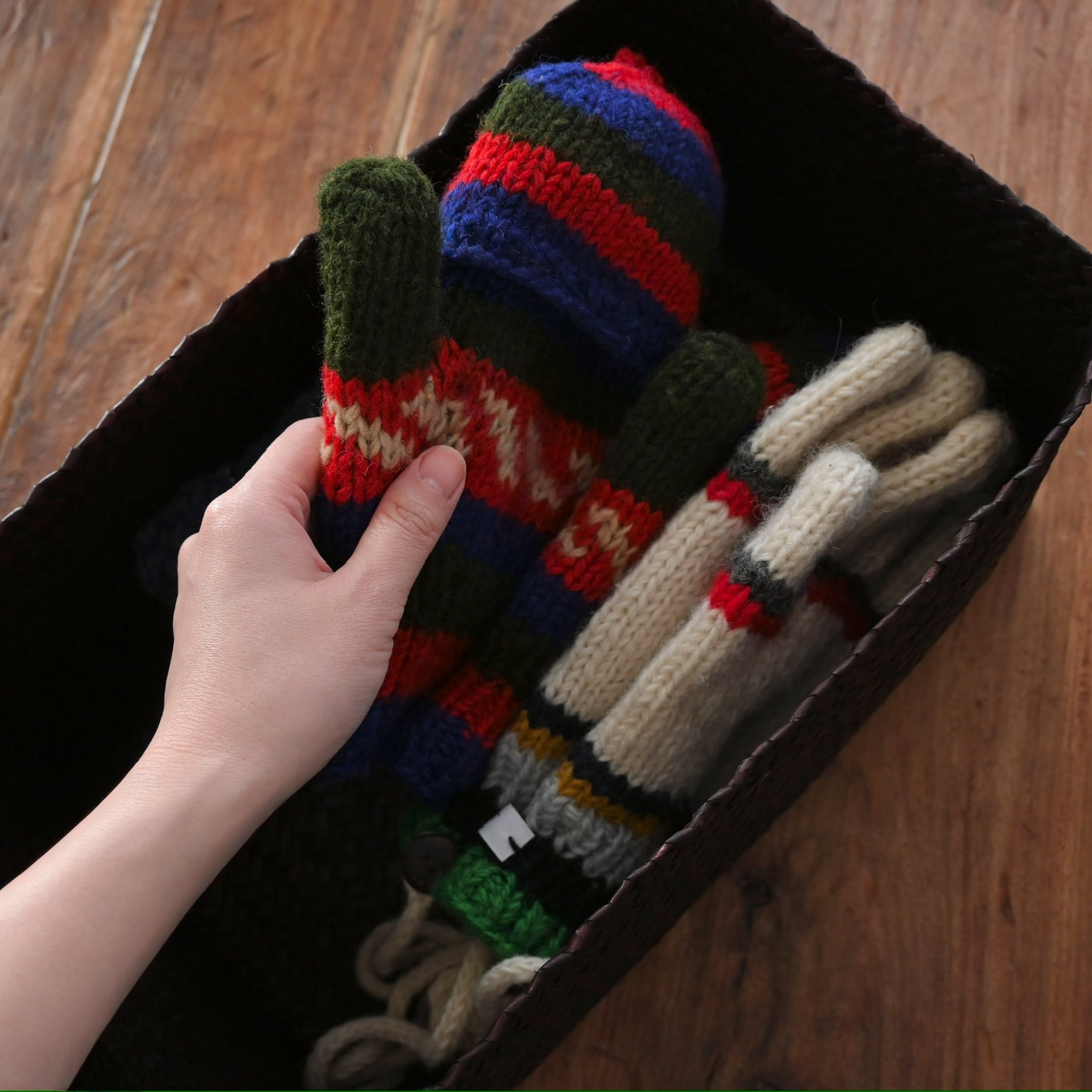 また、本体と蓋を別々に使用して、ハンドタオル、靴下・肌着などの整理にもおすすめです。リビングや玄関先、デスク周りの整頓など棚やラックの上にもすっきり収まりやすいサイズ感です。