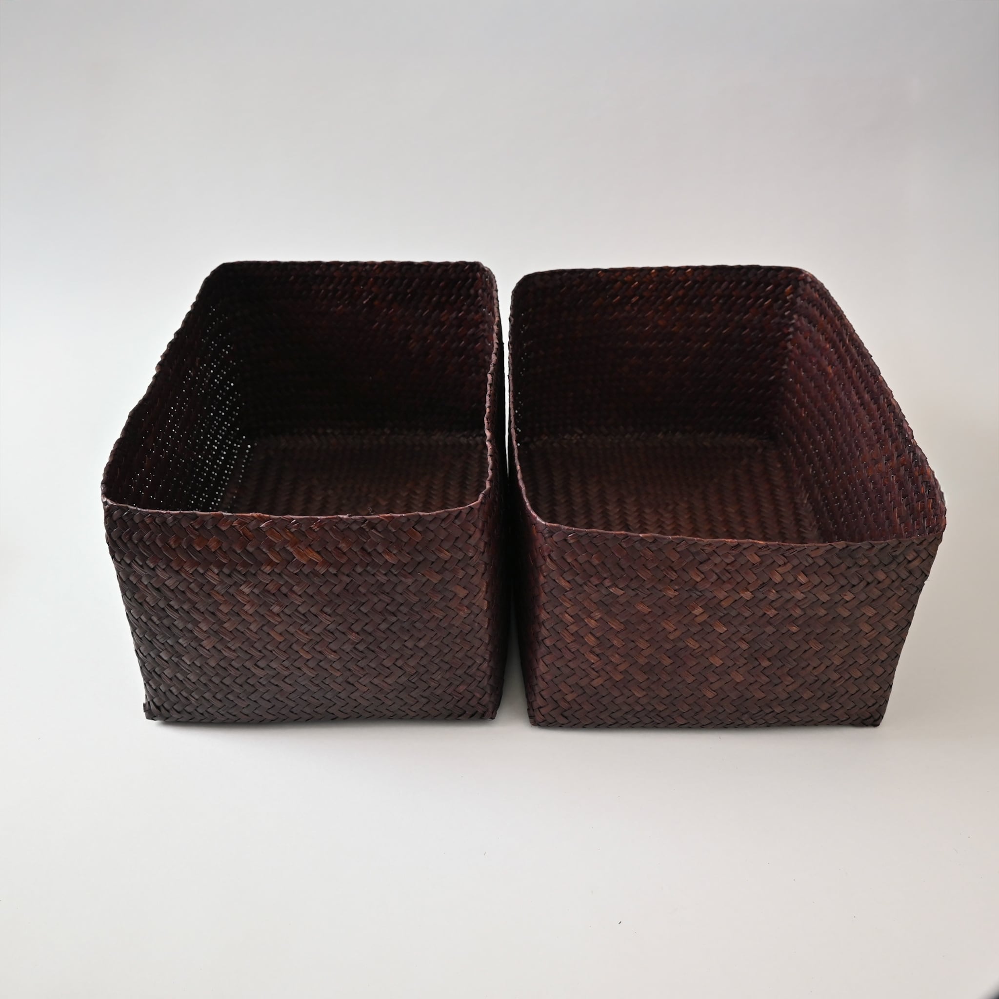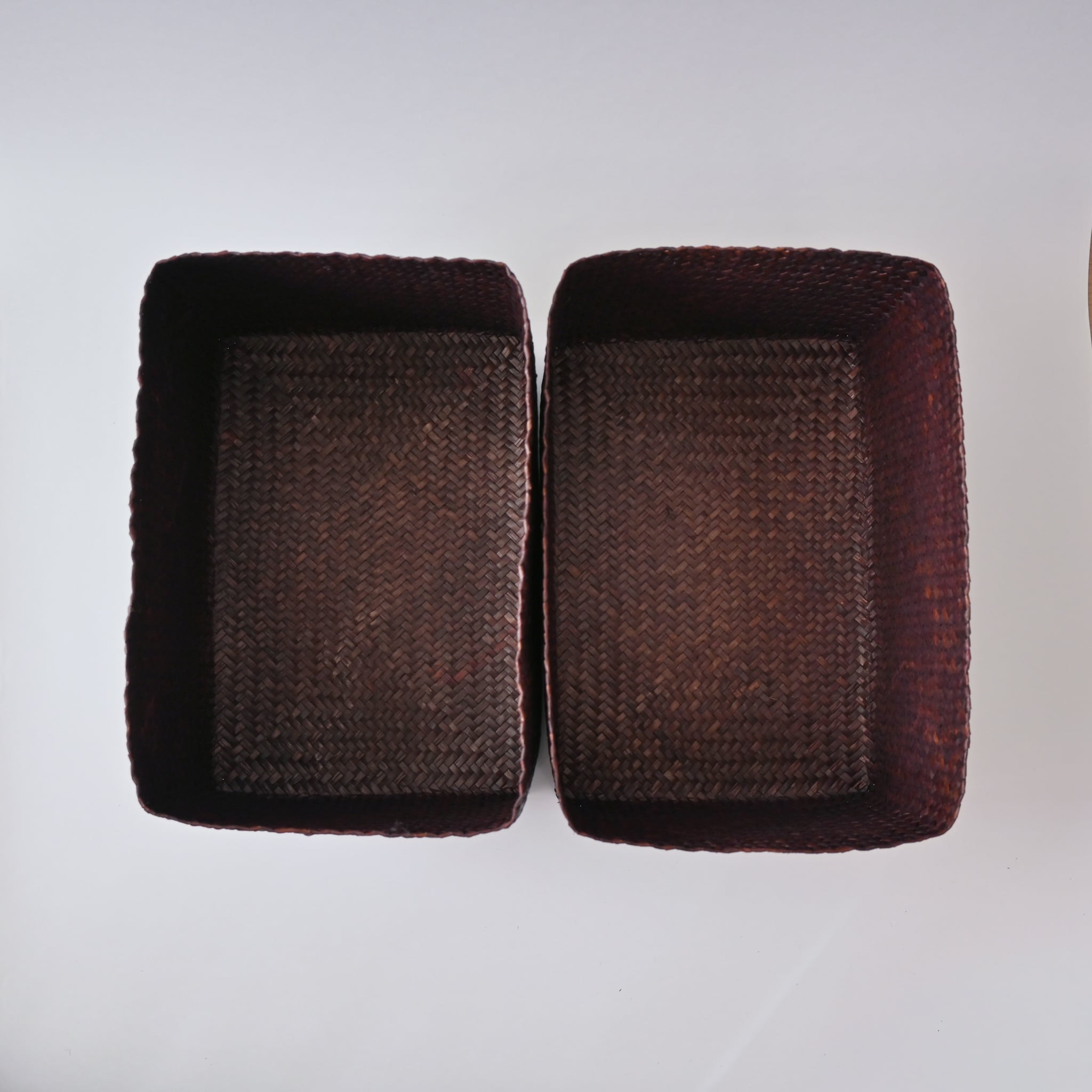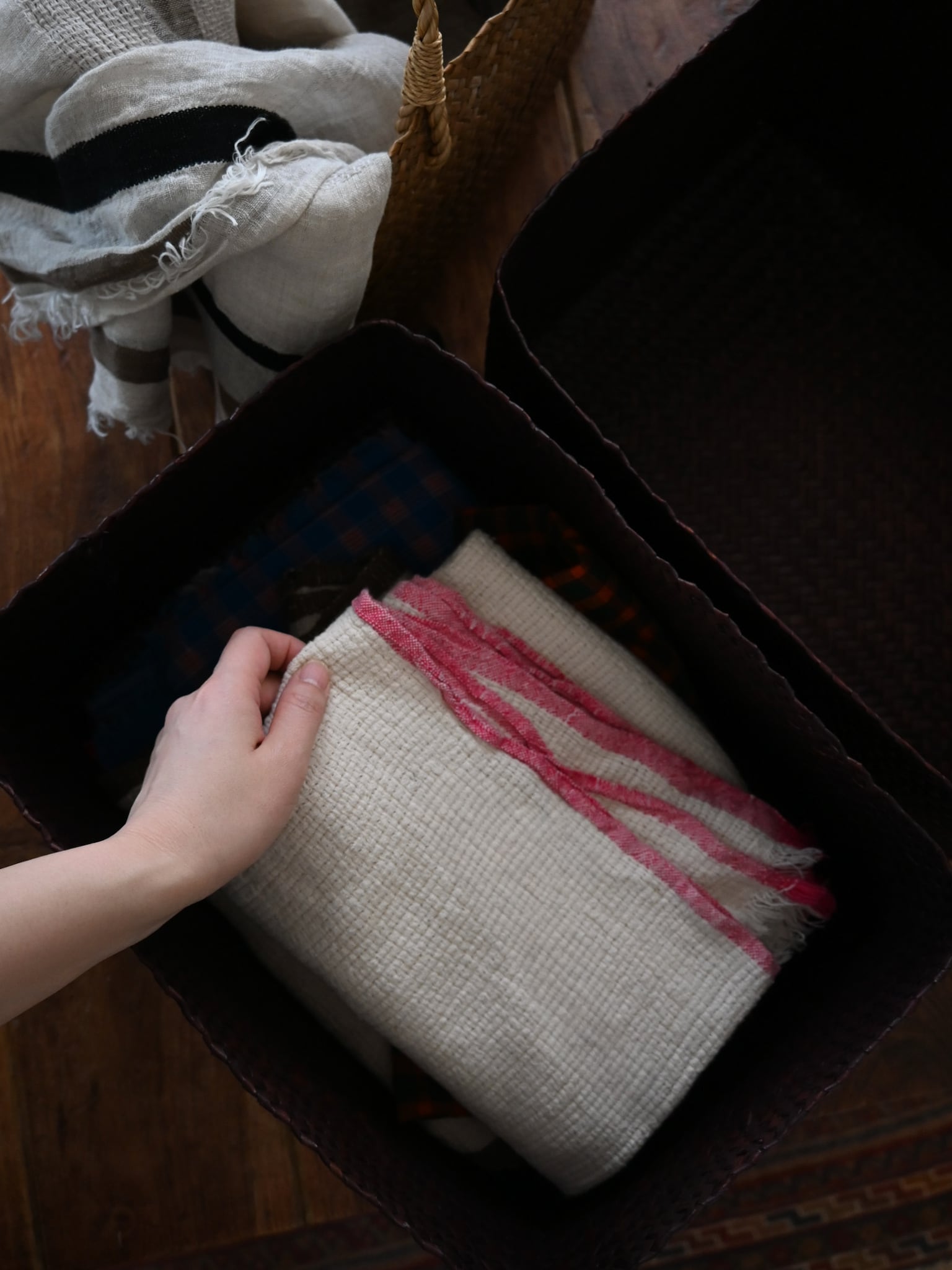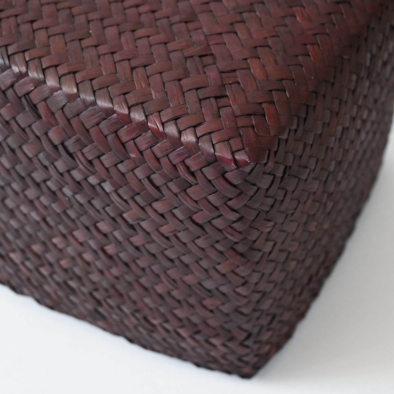 水草で作られるバスケットたちは、作られて間もないものは水分を多く含み、やや緑がかった色合い。そこから使っていくうちに水分が抜けると色が明るく黄味がかった色に変化し、しなやかさが増します。日々変化する風合いをお楽しみください。