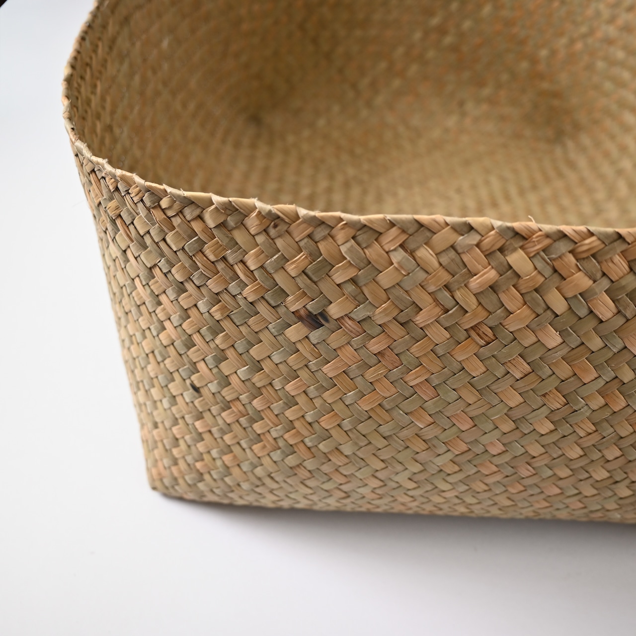 水草で作られるバスケットたちは、作られて間もないものは水分を多く含み、やや緑がかった色合い。そこから使っていくうちに水分が抜けると色が明るく黄味がかった色に変化し、しなやかさが増します。日々変化する風合いをお楽しみください。