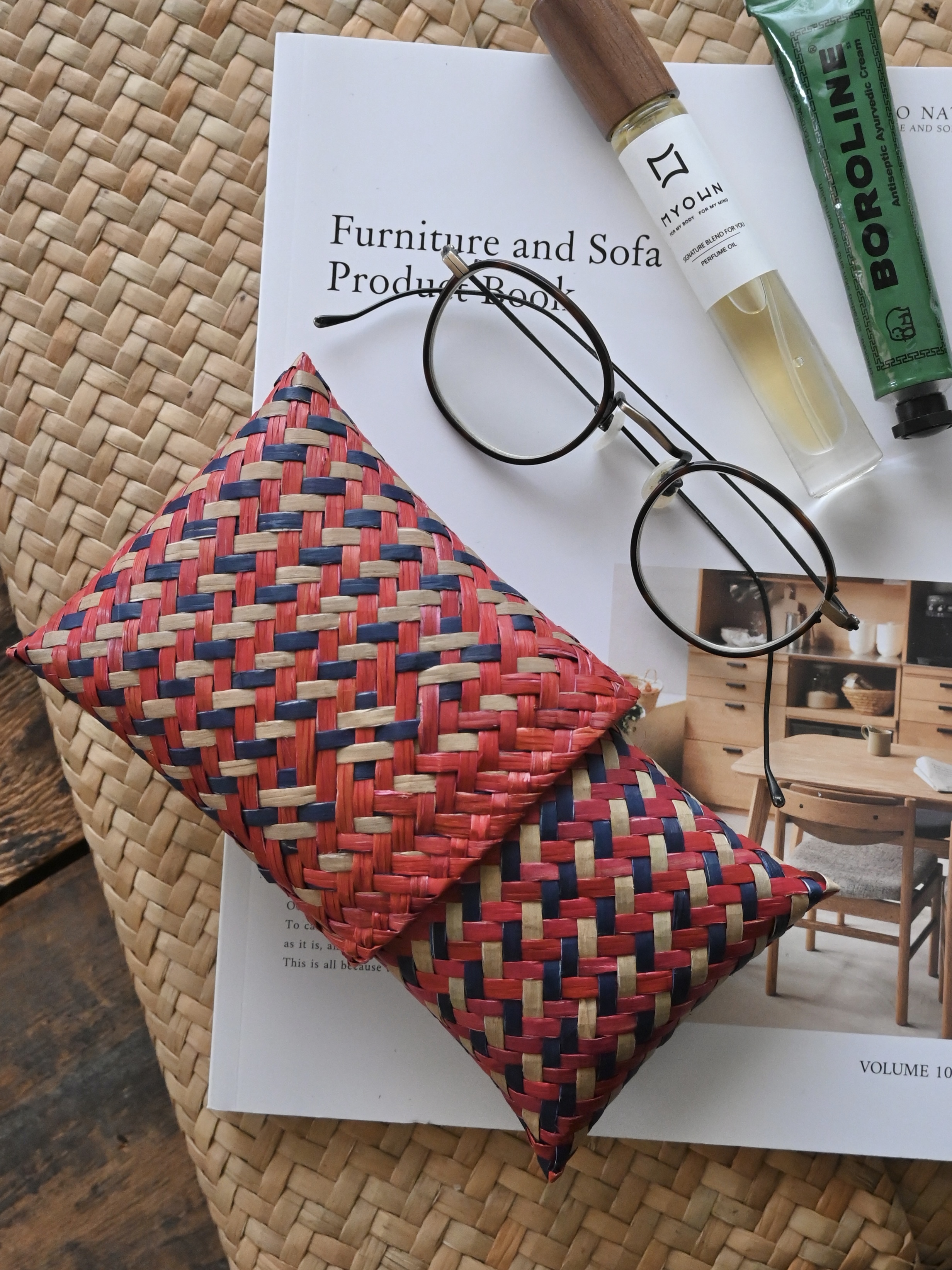 タイの手仕事、カチュー(水草)のミニポーチ。