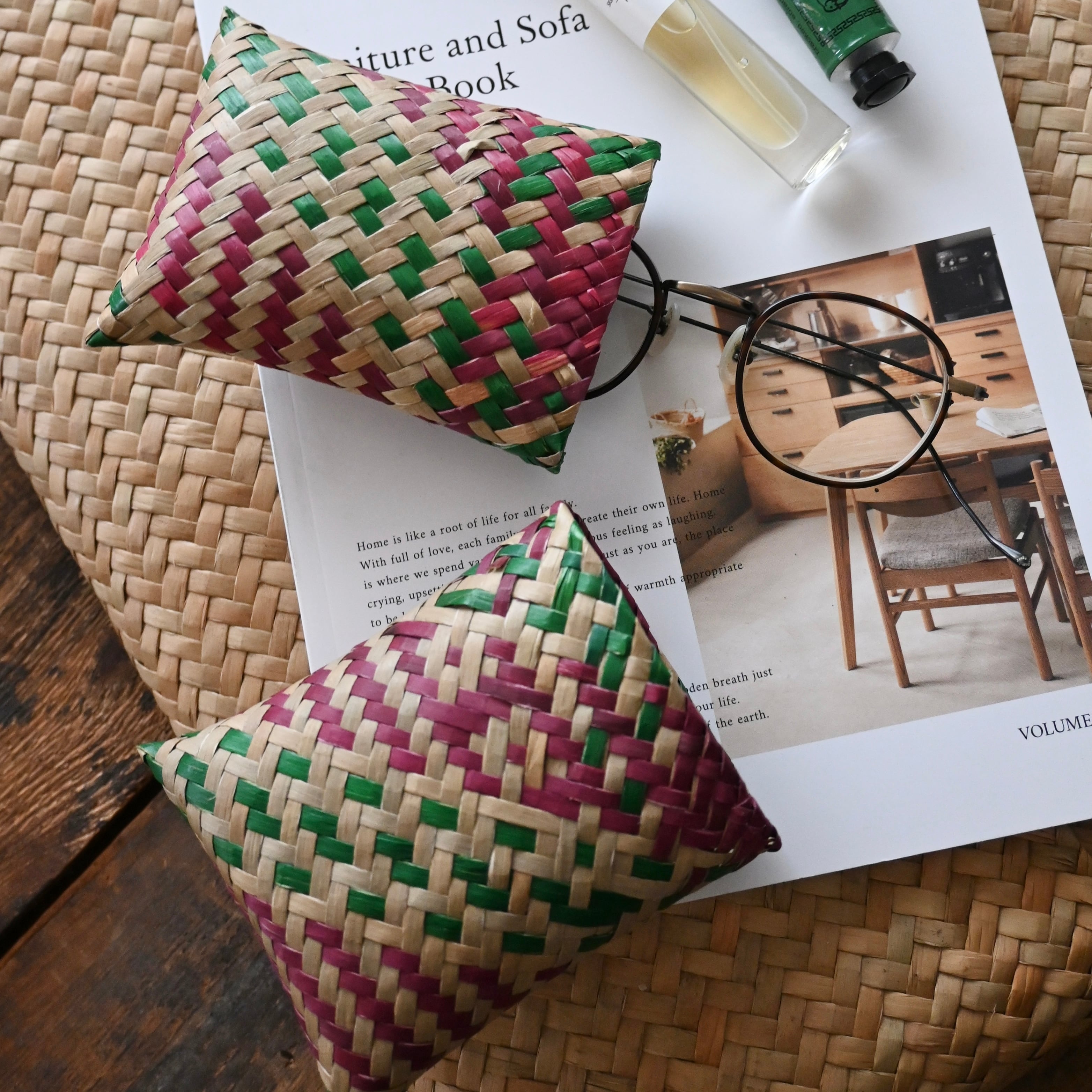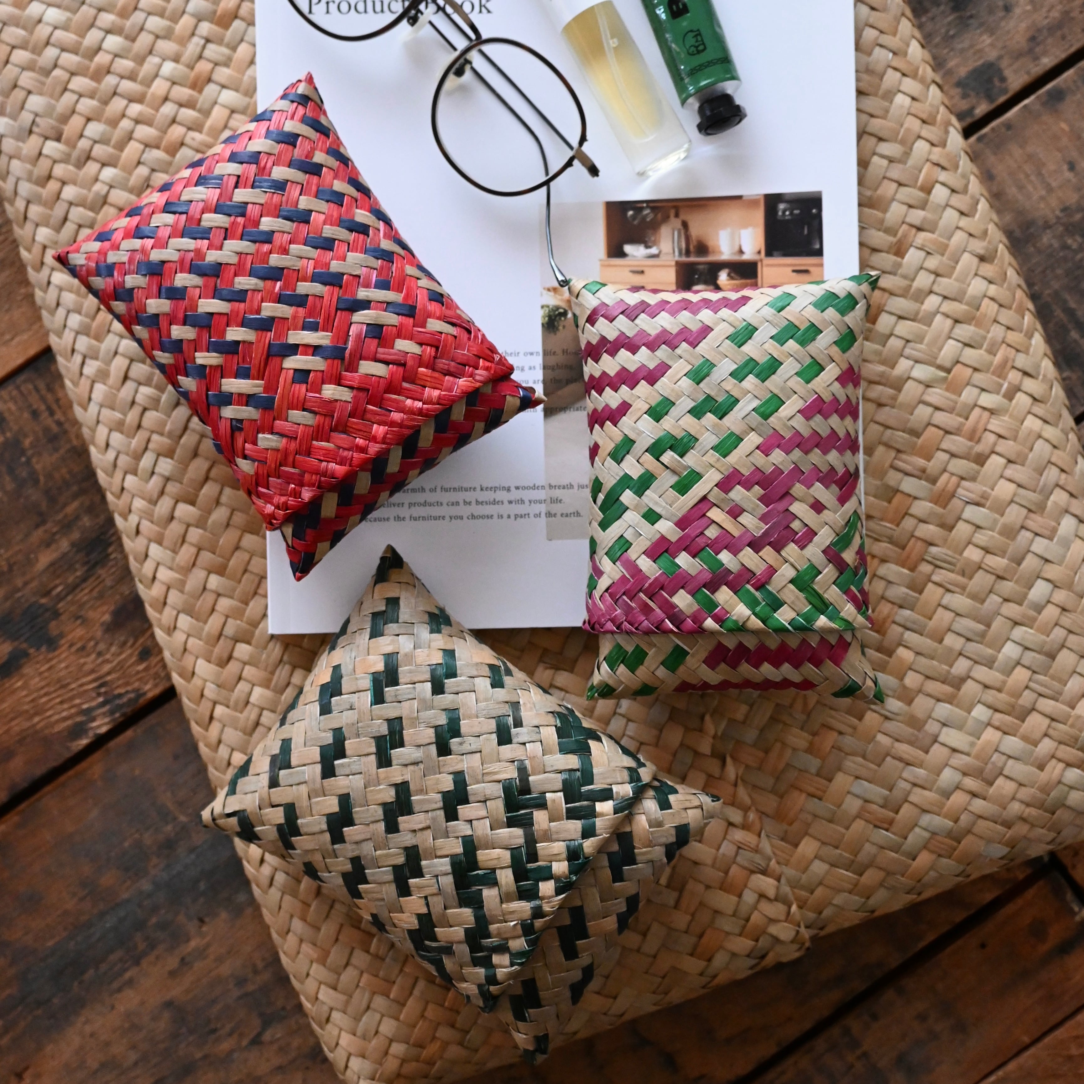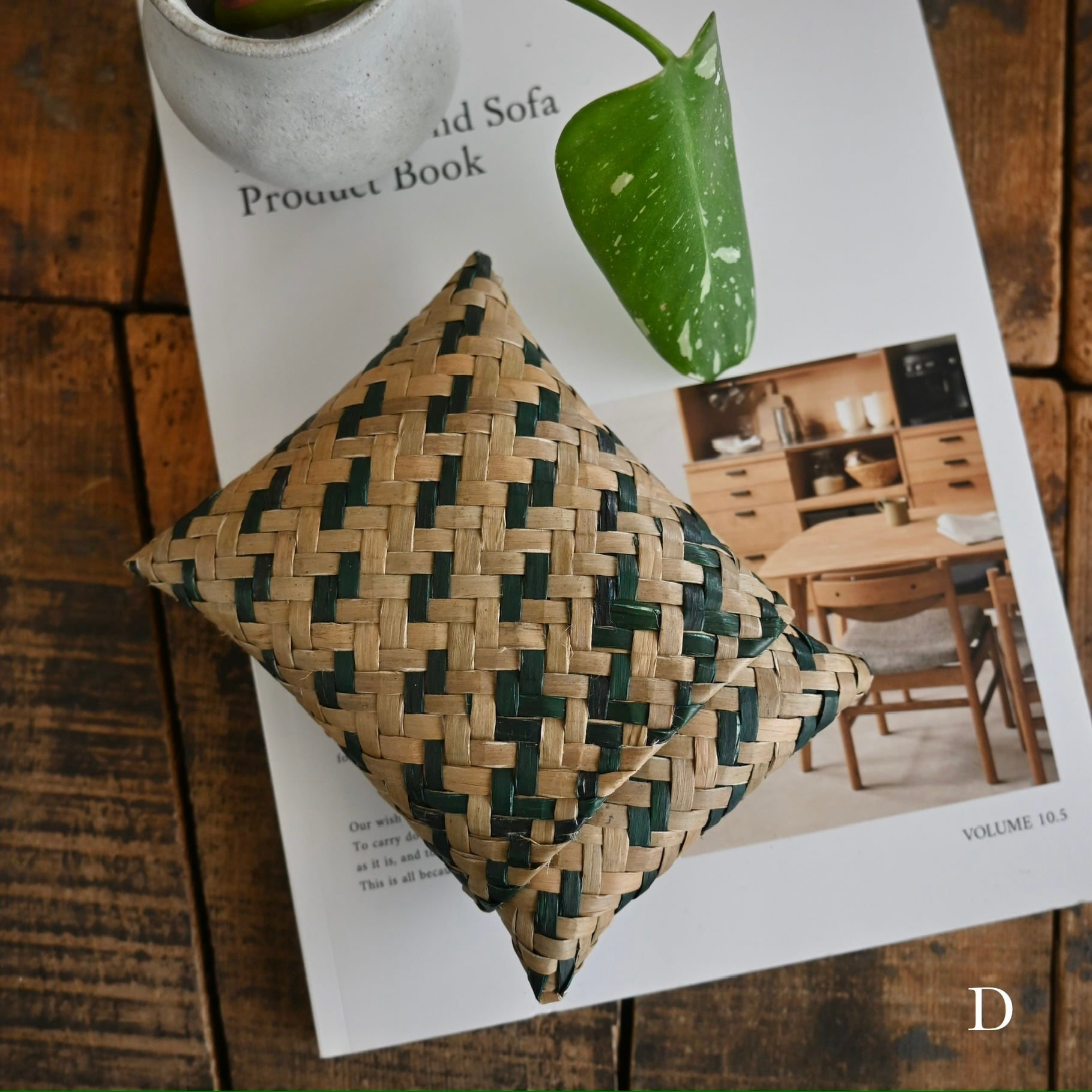 水草の茎の部分を乾燥させ、時間をかけて丁寧に編まれています。
