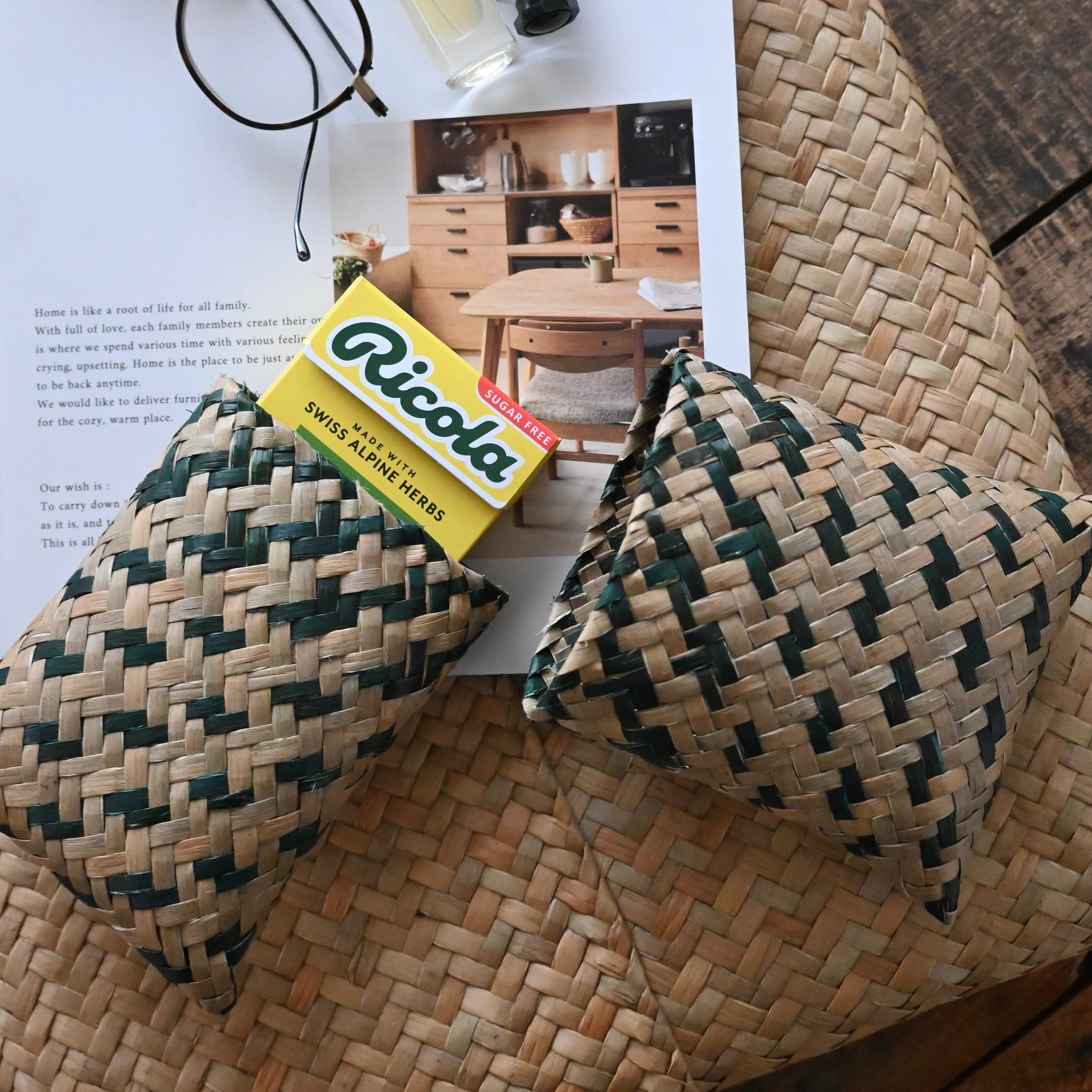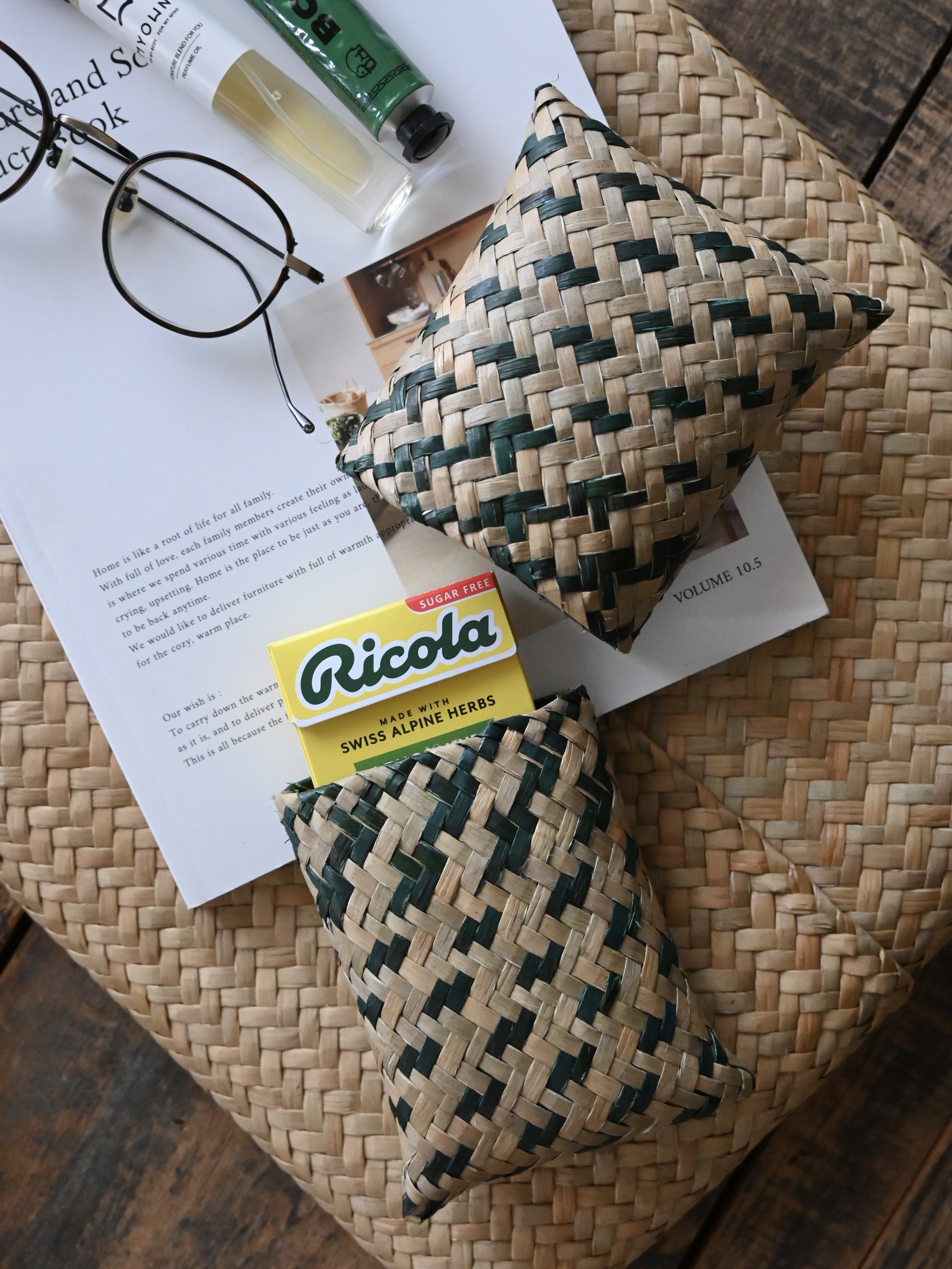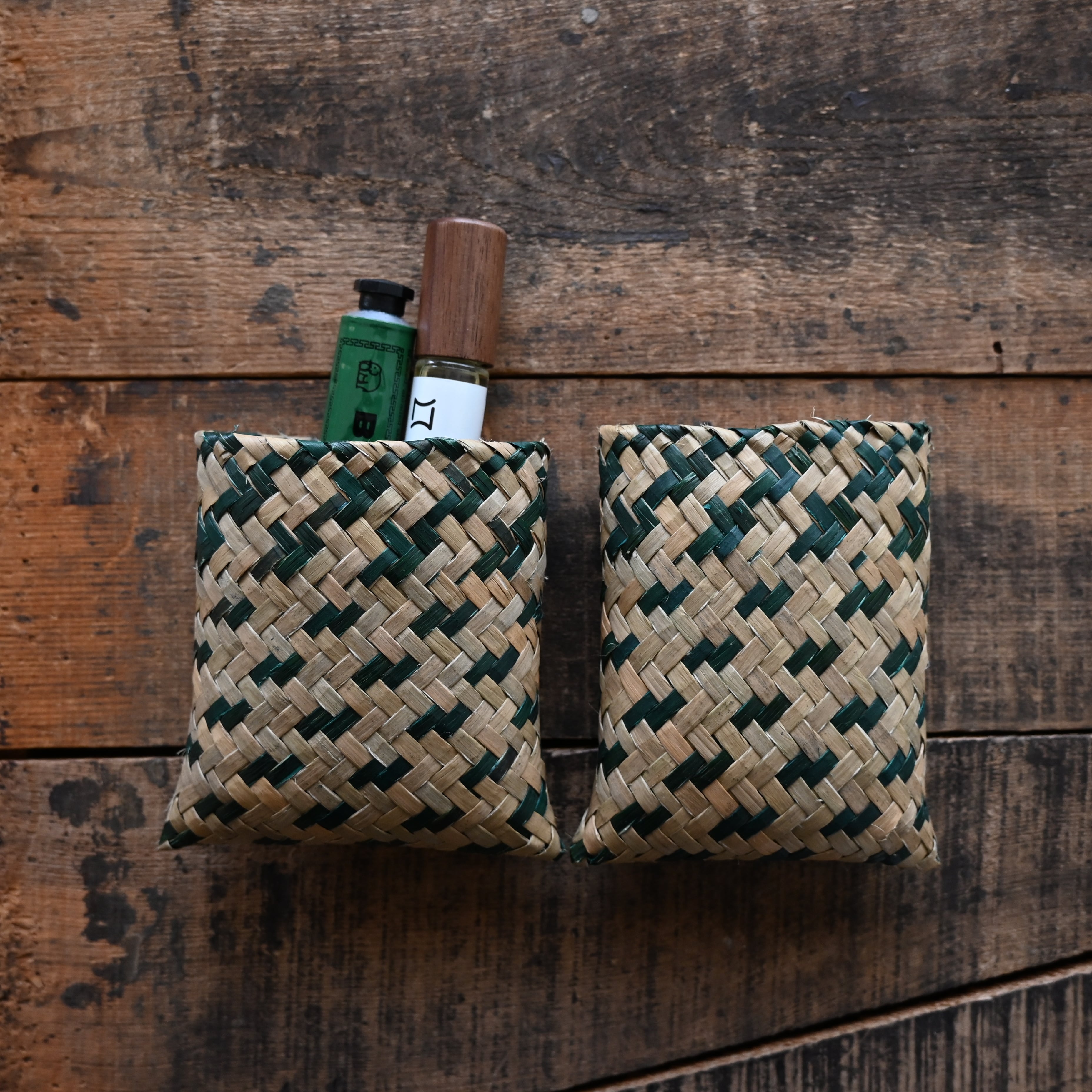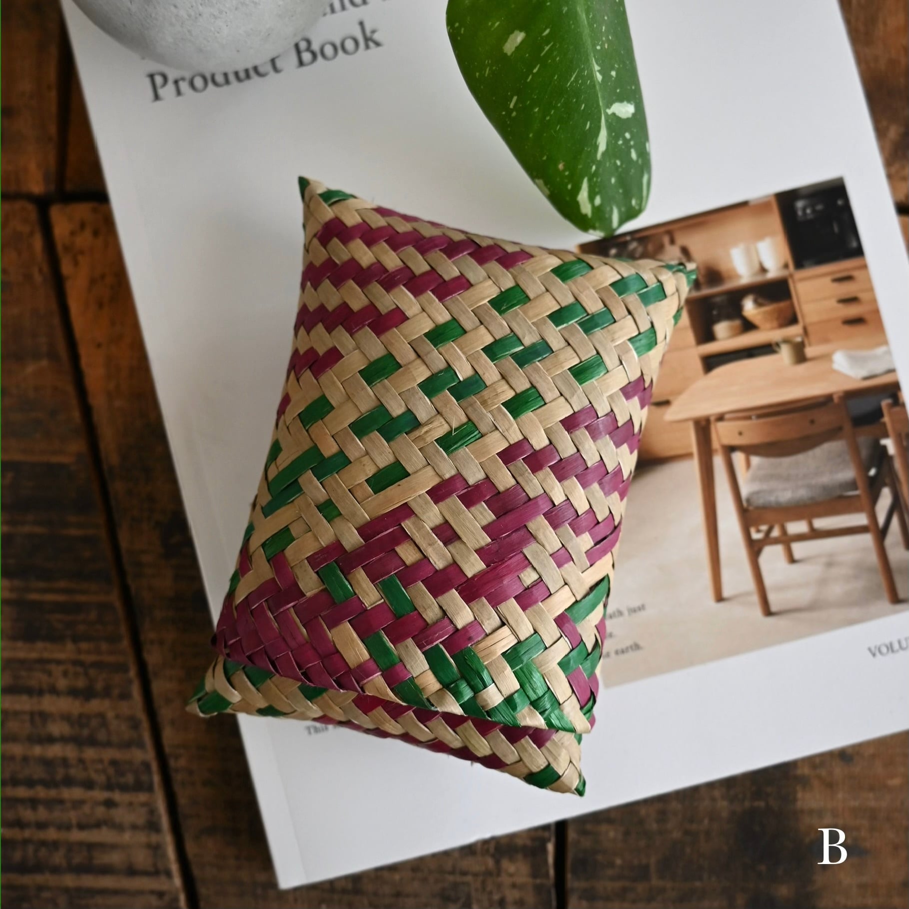 水草の茎の部分を乾燥させ、時間をかけて丁寧に編まれています。