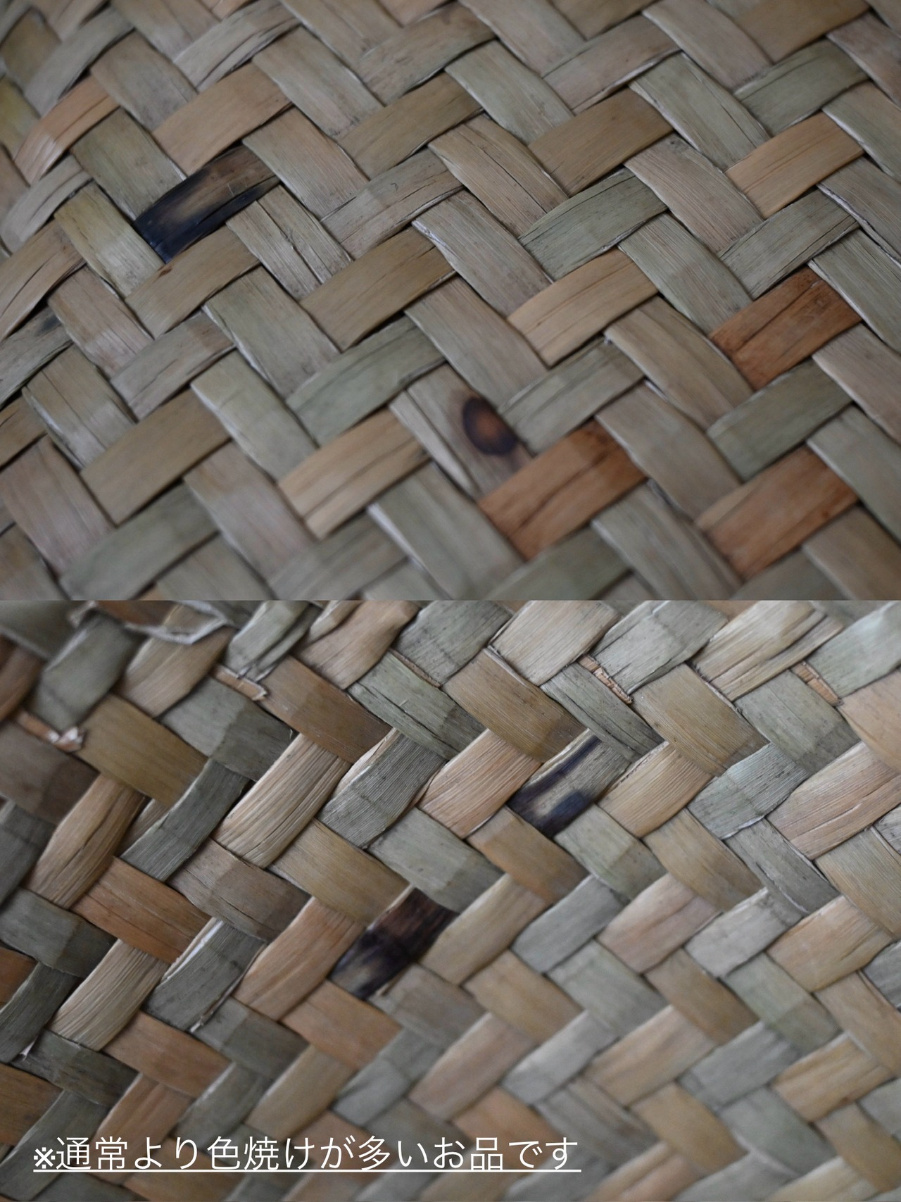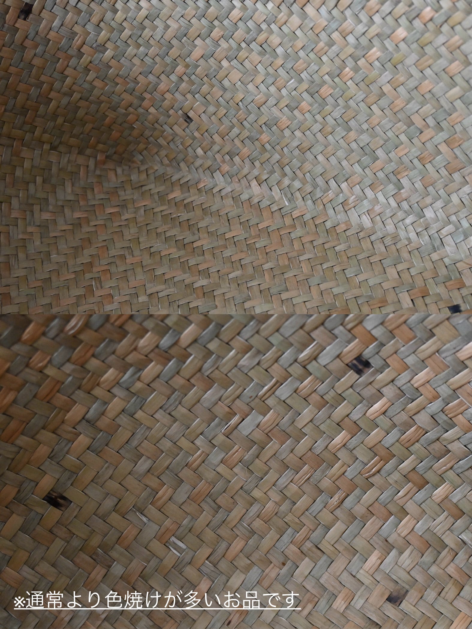 ・天然素材の特性上、複数箇所 黒い日焼けの斑点や部分的な変色、網目にささくれやほつれ等が含まれます