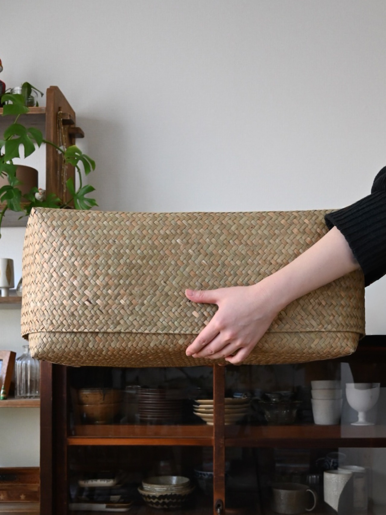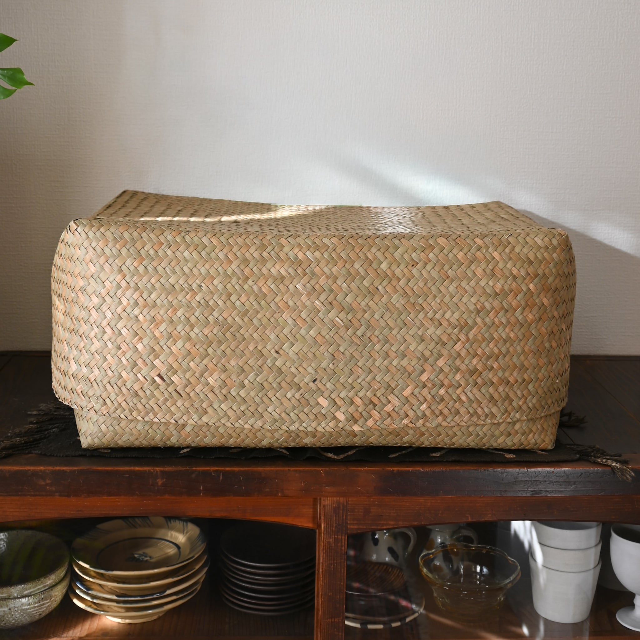 存在感のあるたっぷり容量の水草BOXは、季節ごとのお洋服の整理や寝具のカバー、キッチンで目隠ししたい道具類やプレートなどを収納しても◉
