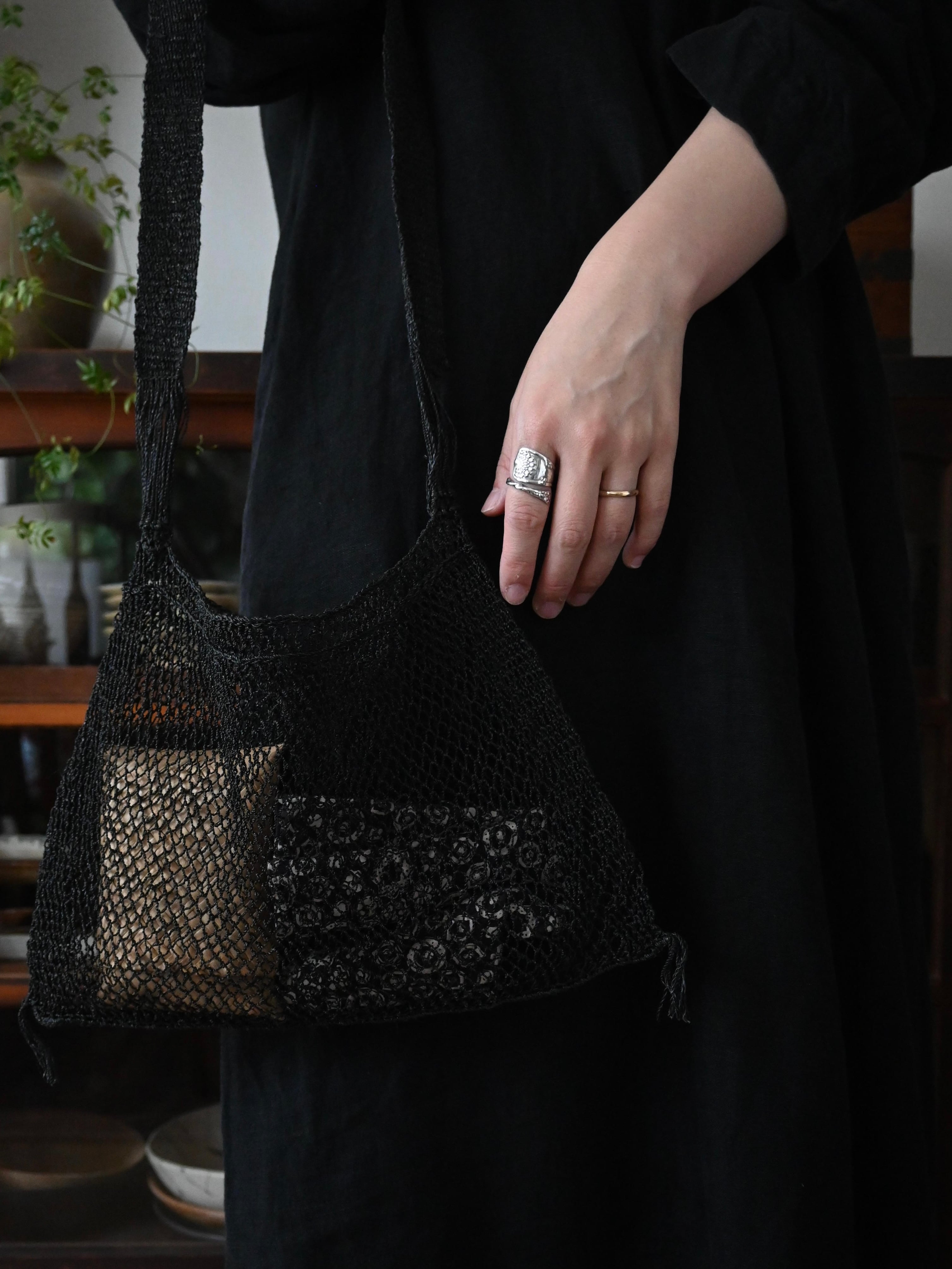 ラオス 葛の手編みショルダーバッグ - black S~Msize-