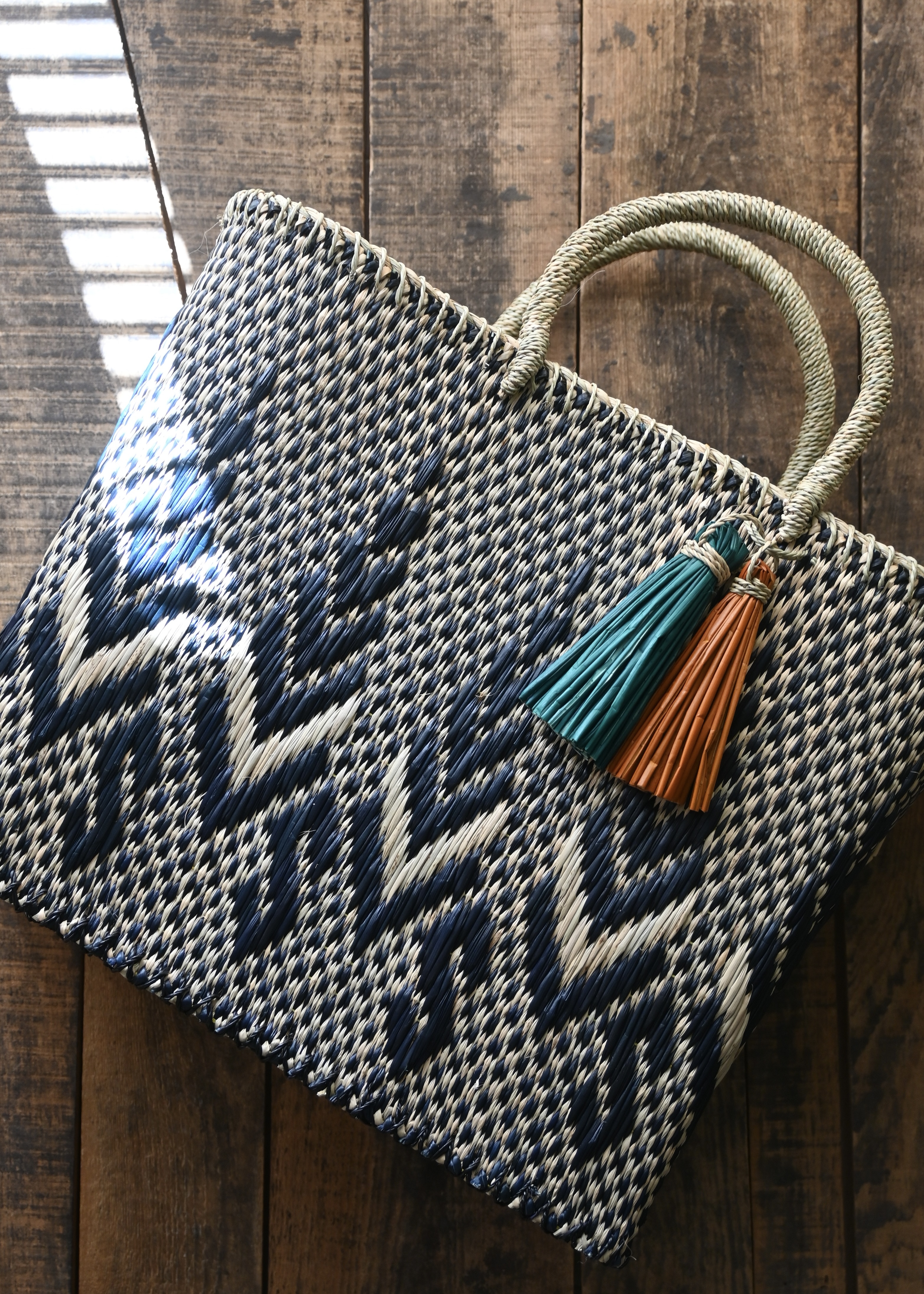 コックの水草かごバッグ - patten - blue×natural color (Lsize) -