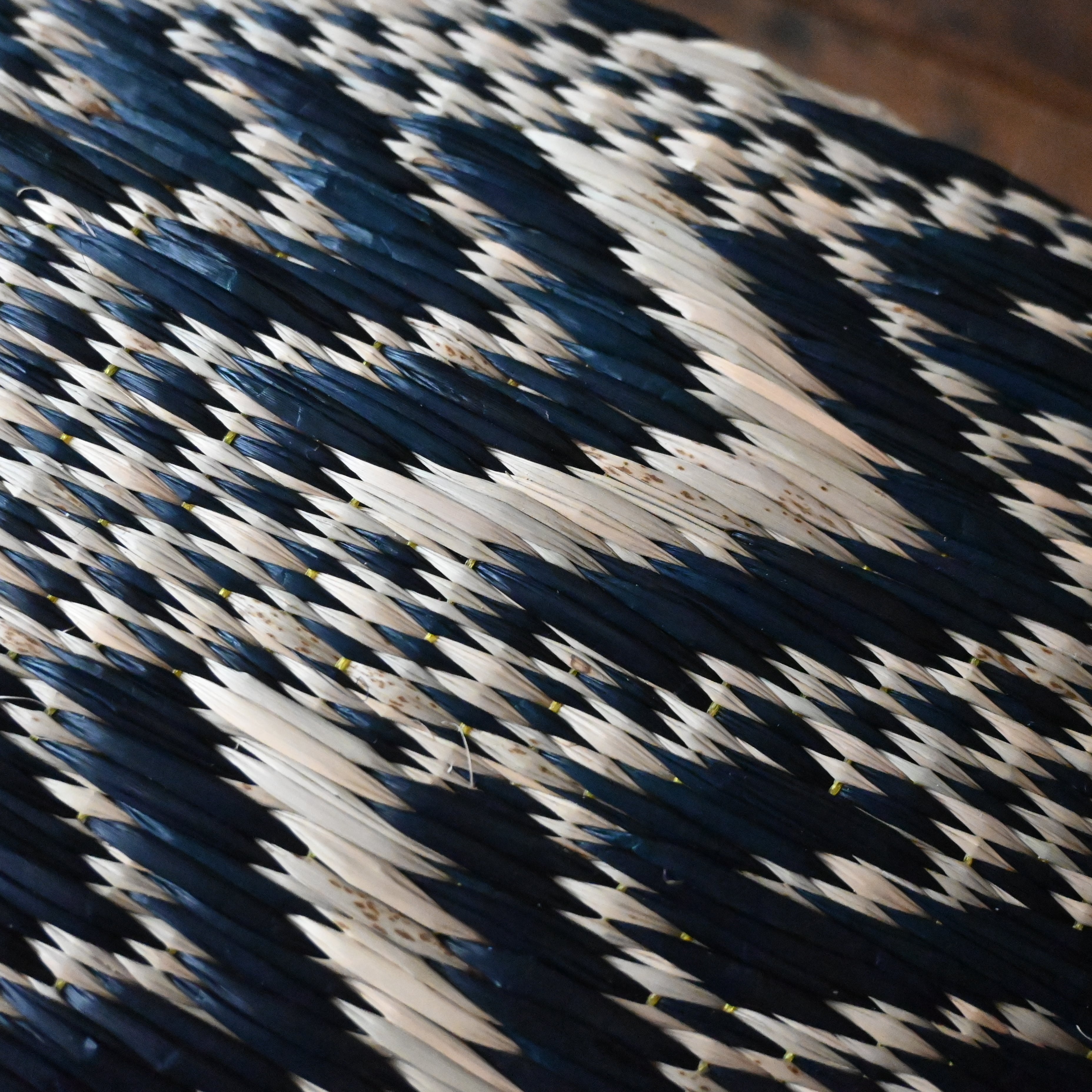 水辺に育つコックという水草を使った編み細工で、日本のスゲやイグサに近い植物を使用しています。