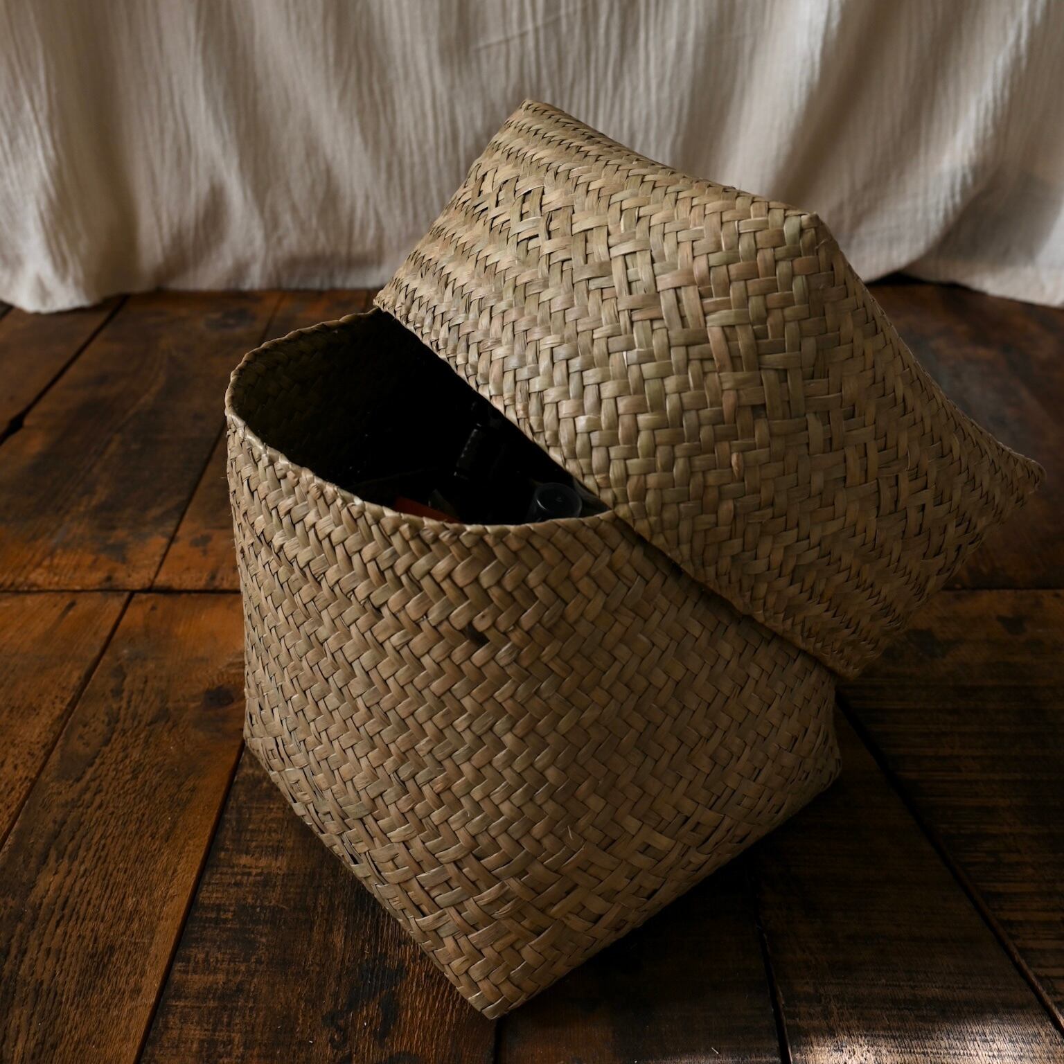 規則的でありながらもどこか有機的な編み模様が、静かな存在感を放つバスケットボックス。ナチュラルな温もりと手仕事の魅力を、暮らしに取り入れてみませんか?